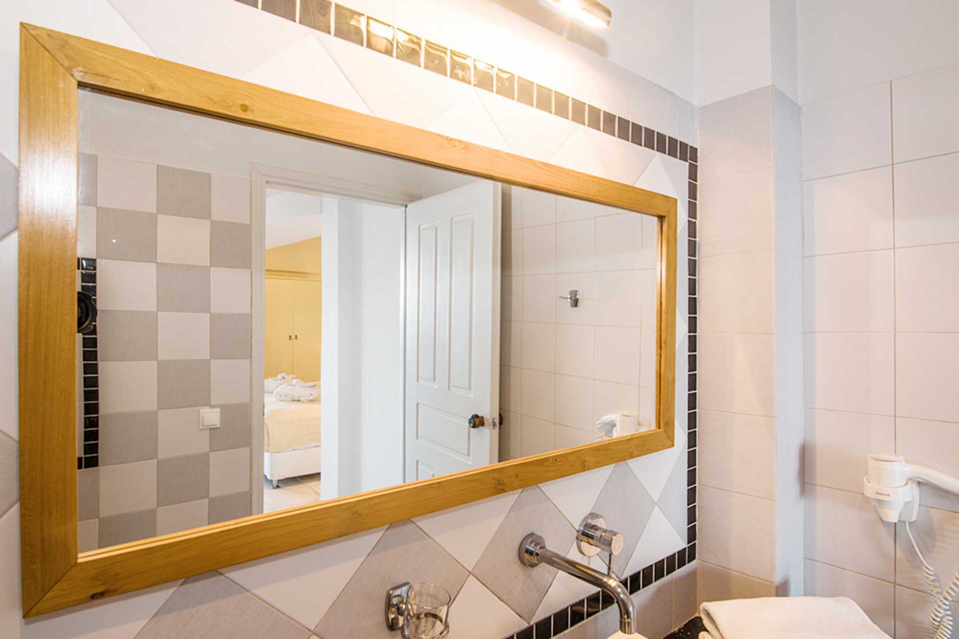 Juniorsuite med balkong eller terrasse. En dobbeltseng eller to enkeltsenger. Mulig med ekstraseng i sovesofa. Wifi, luftkondisjonering og safe inkludert. Kjøleskap. TV. Badekåper og tøfler. Hårføner. Dusj og wc. Rengjøring 7 ggr/uke. Barn under 2 år regnes inn i maksantallet i rommet.