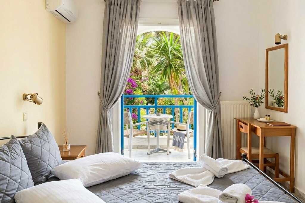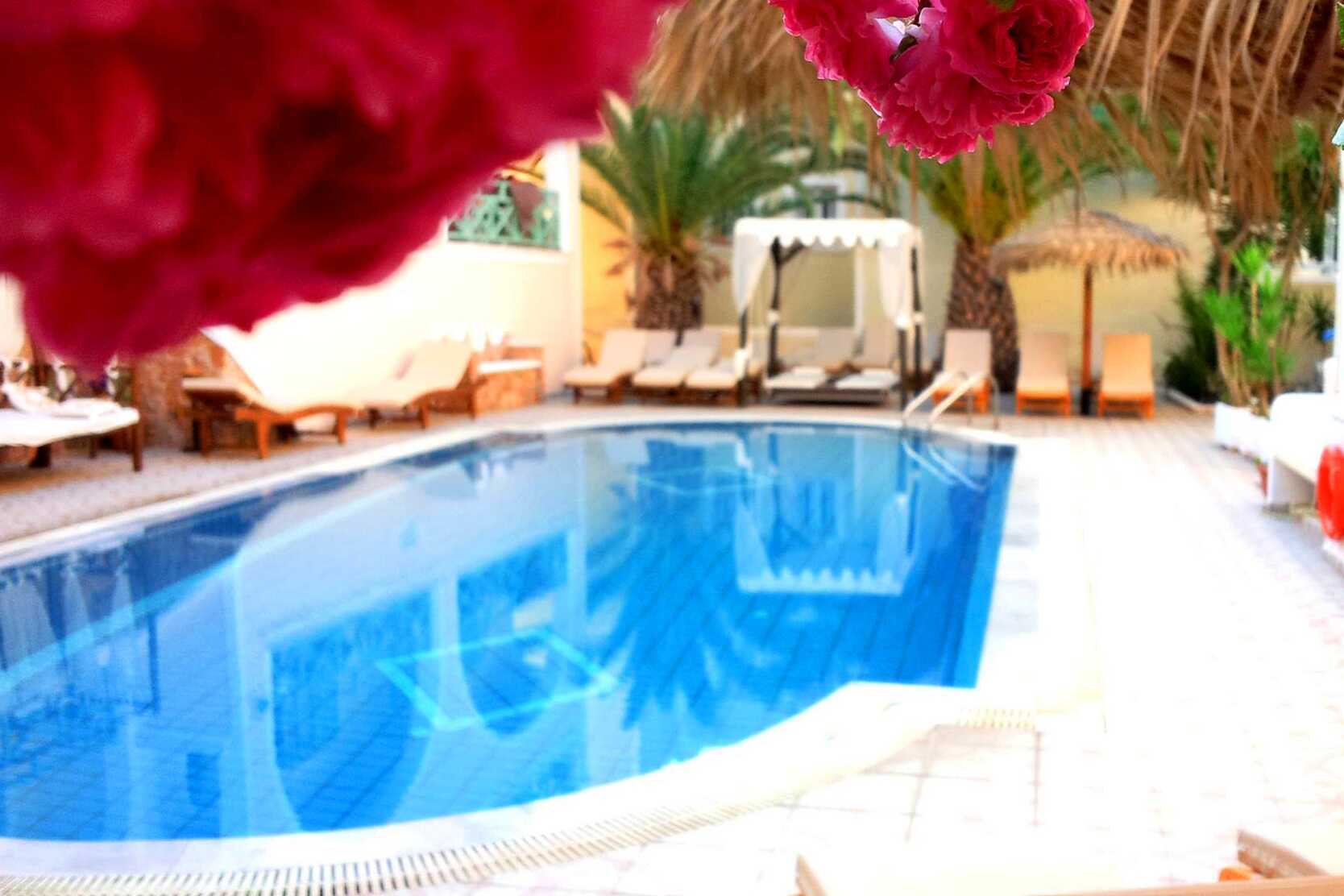 Hotel Zeus har en fin hage med palmer, bougainvillea og et bassengområde med et basseng, solsenger og parasoller samt en poolbar. Bassenghåndklær til låns. Frokostservering på hotellet.