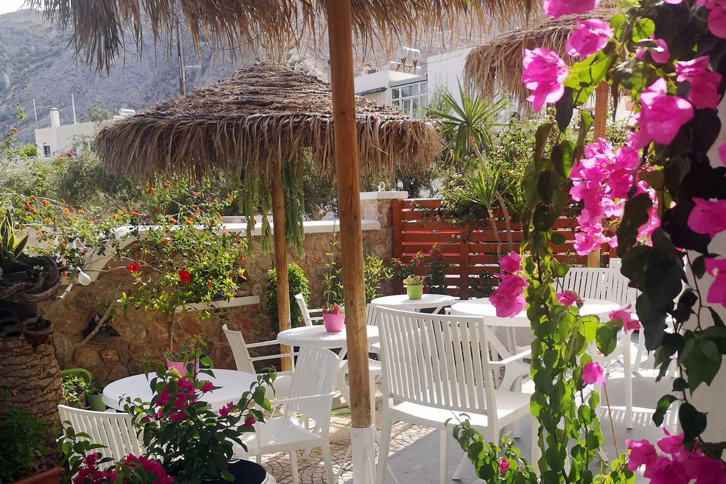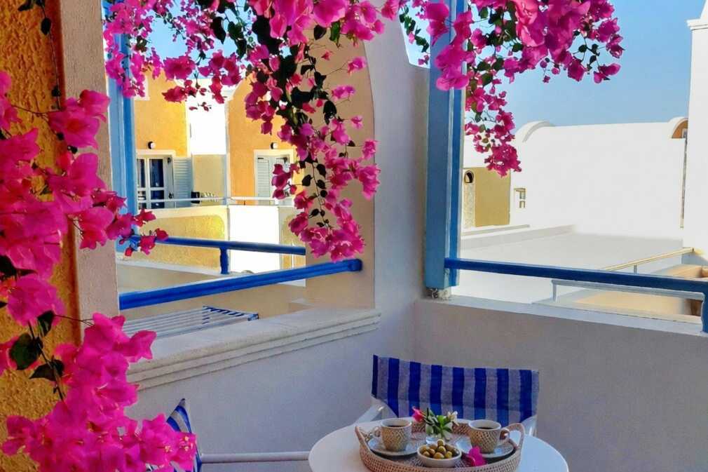 Restauranter, barer, butikker og fornøyelser venter rett rundt hjørnet. Vil du se mer og oppdage den vakre øya ligger bussholdeplassen rett utenfor hotellet. Det er cirka 8 kilometer til Thira. Kort transport fra flyplassen til hotellet. Begrenset lokaltrafikk. Nærheten til flyplassen gjør at flytrafikken kan oppfattes som forstyrrende.