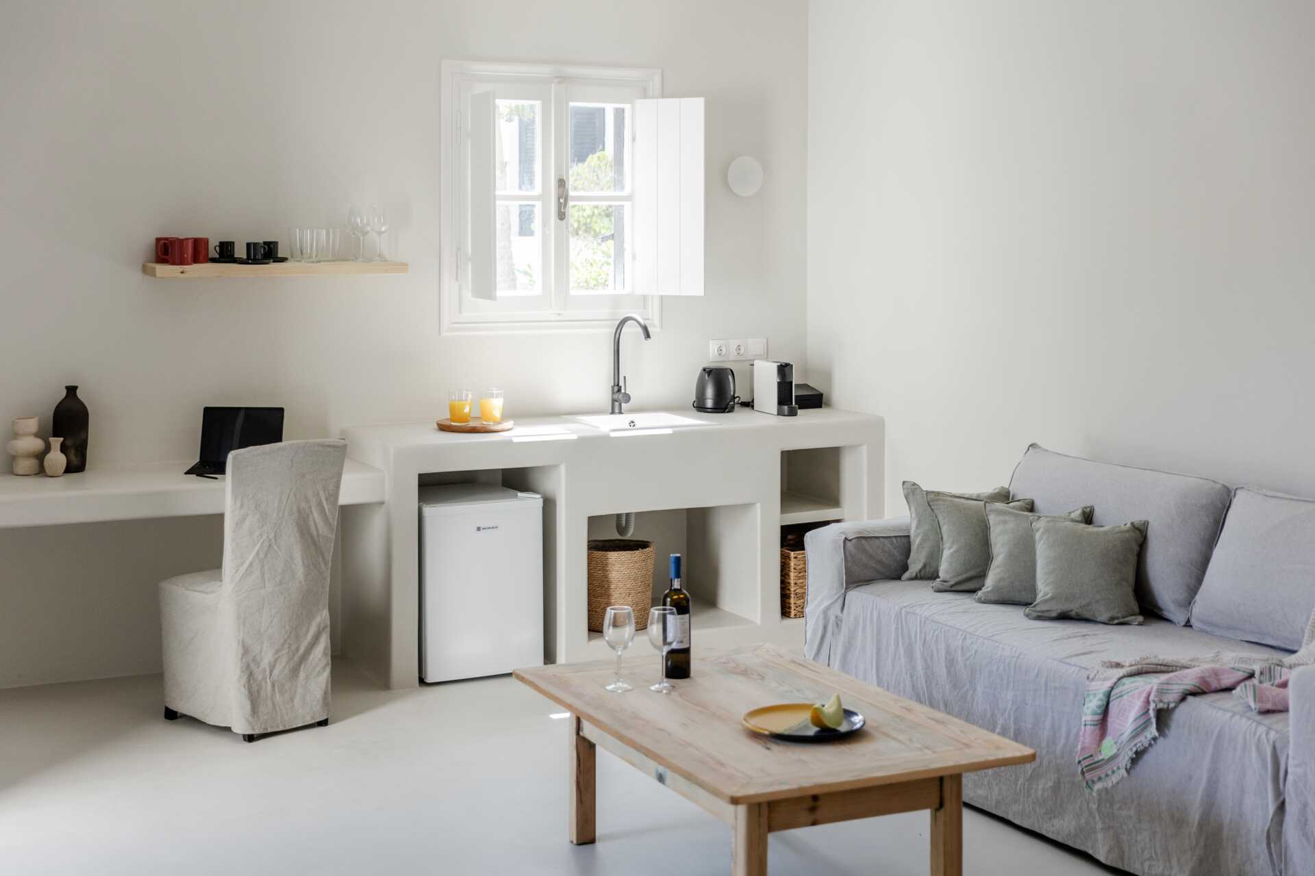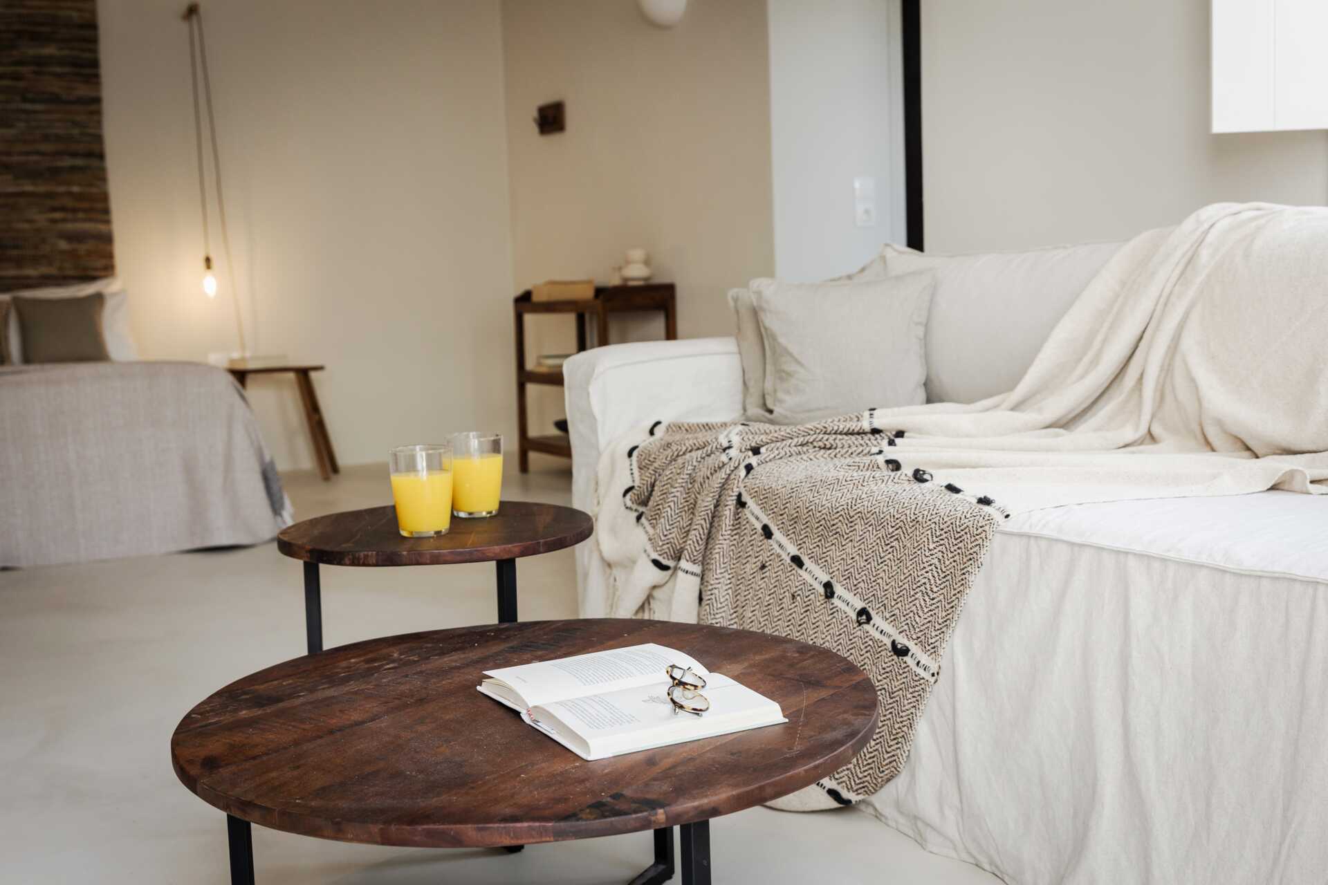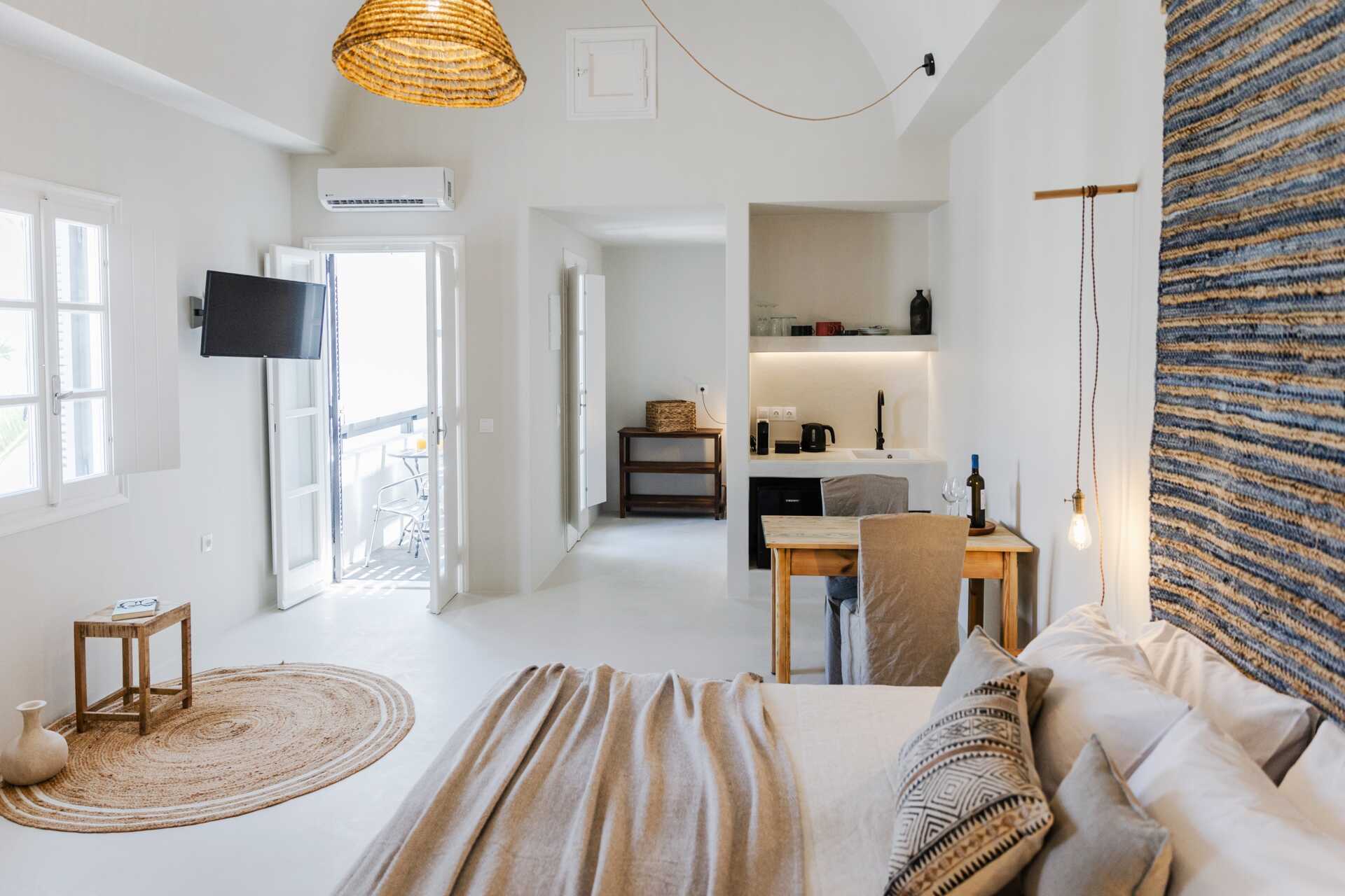 Suite med balkong eller terrasse i på bakkeplan eller med balkong i 2. etasje. En dobbeltseng eller to enkeltsenger. Mulig med en ekstraseng i sovesofa. Wifi, luftkondisjonering og safe inkludert. Kjøleskap. Vannkoker. Nespresso kaffemaskin, kapsler mot avgift. TV. Hårføner. Dusj og wc. Rengjøring 7 ggr/uke.