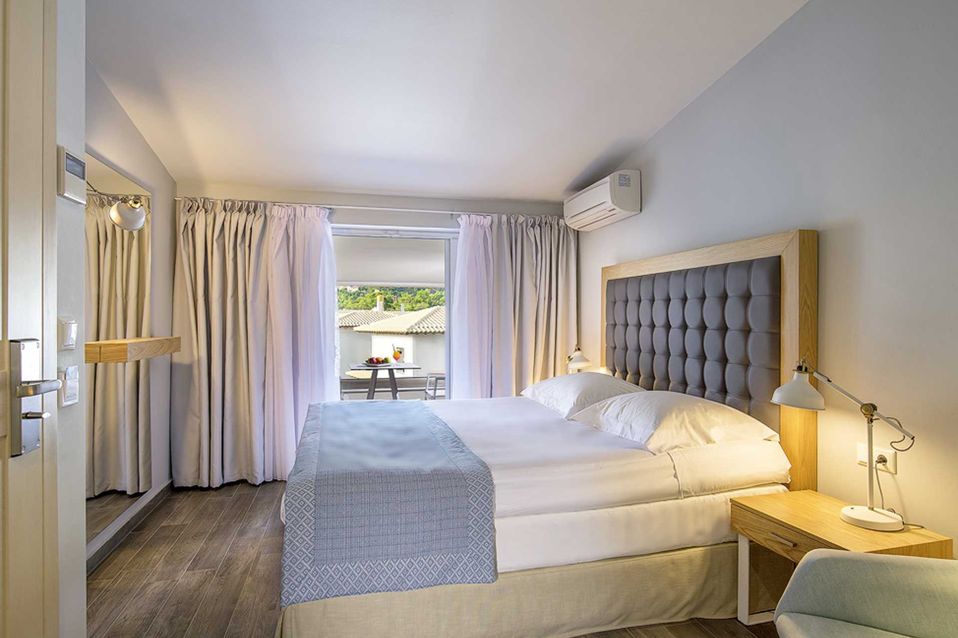 Dobbeltrom med balkong eller markterrasse. En dobbeltseng. Mulig med ekstraseng i enkeltseng. Wifi og safe inkludert. Luftkondisjonering mot avgift. Kjøleskap. TV. Hårføner. Dusj og wc. Rengjøring 7 ggr/uke.