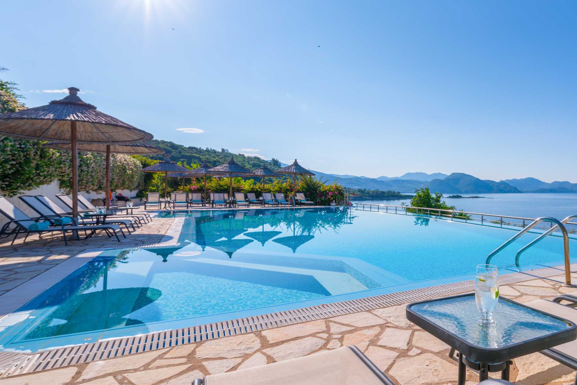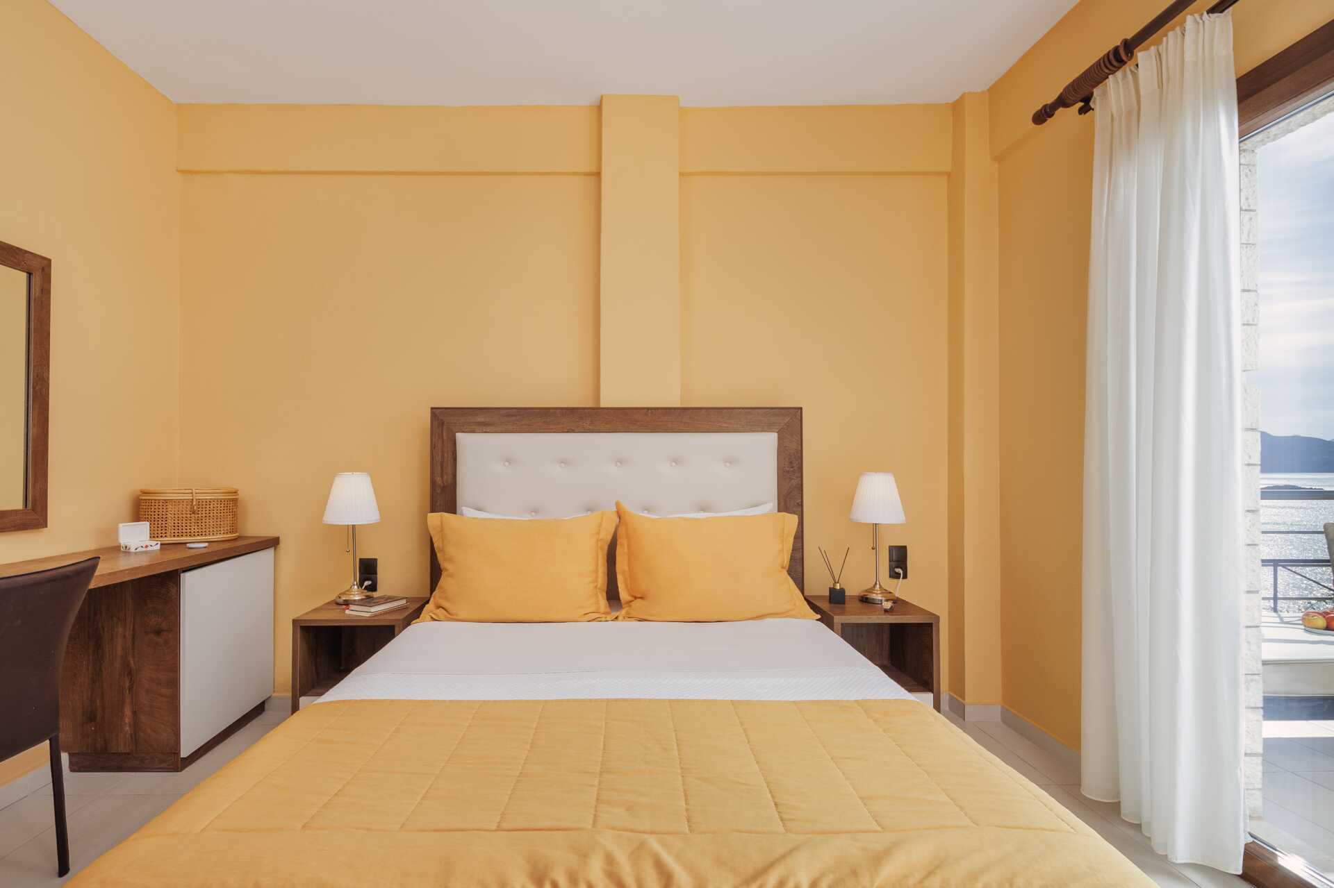 Deluxerom med balkong og havutsikt. En dobbeltseng. Mulig med ekstraseng i sovesofa. Wifi, luftkondisjonering og safe inkludert. Kjøleskap. Vannkoker. TV. Hårføner. Badekar eller dusj samt wc. Rengjøring 7 ggr/uke. Noen dobbeltrom deler inngang med hverandre, men hver har en ytterdør til rommet.