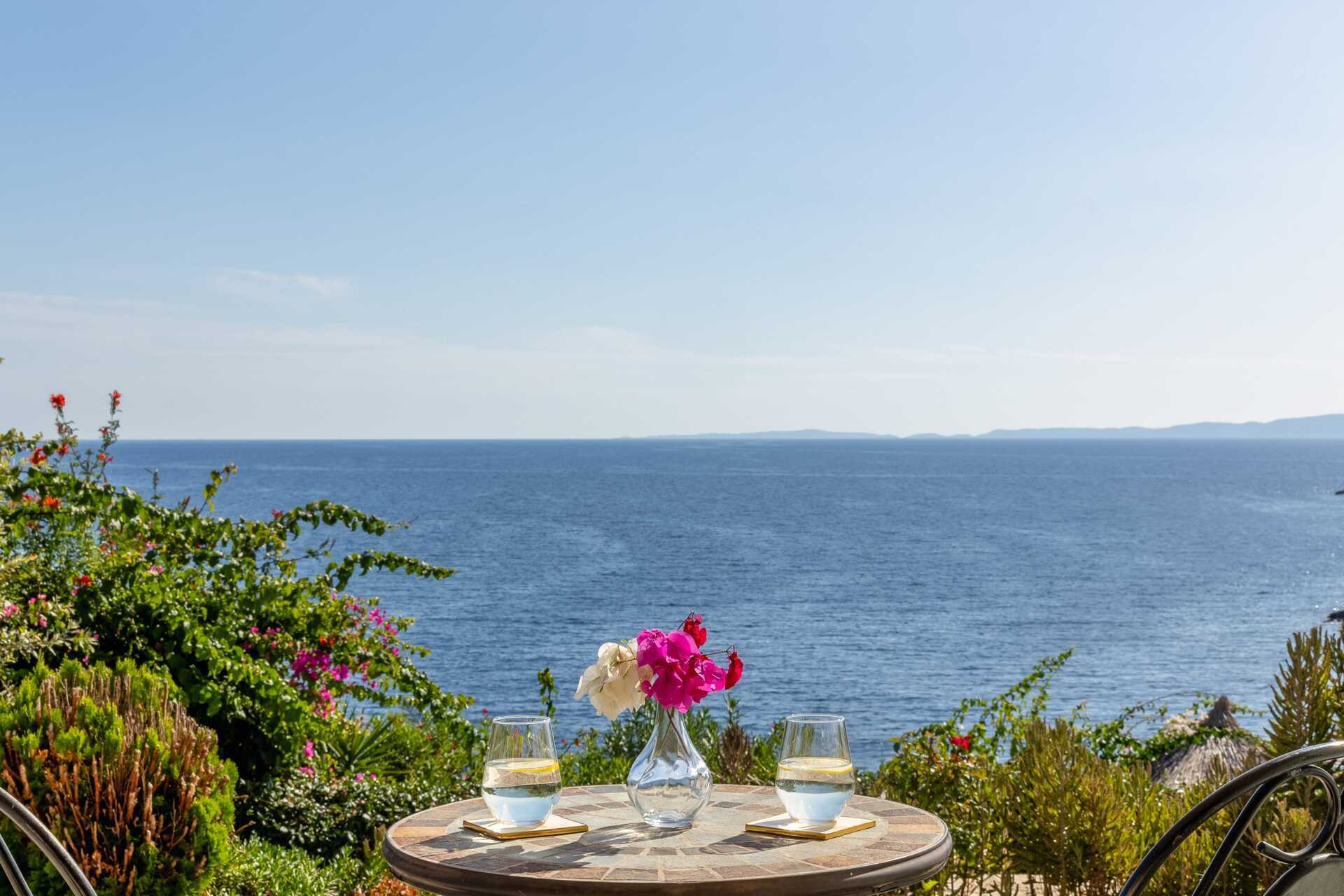 Juniorsuite med markterrasse, noen med havutsikt og noen med begrenset havutsikt. Markterrassen har ikke dør direkte fra rommet, men du når den via utgangsdøren på siden av bygget. En dobbeltseng. Mulig med en ekstraseng i sovesofa. Wifi, luftkondisjonering og safe inkludert. Kjøleskap. Vannkoker. TV. Badekåper. Hårføner. Badekar eller dusj samt wc. Rengjøring 7 ggr/uke.