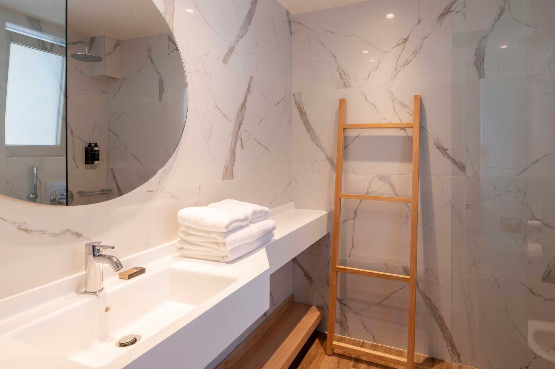 Dobbeltrom med uteplass med privat basseng og utsikt over bassenget og havet. Sovekomforten er høy med en komfortabel dobbeltseng og sengetøy fra CocoMat. Wifi, safe og luftkondisjonering inkludert. Kaffemaskin, kapsler ved ankomst deretter mot et gebyr. Kjøleskap. TV. Bluetooth-høyttalere kan lånes i resepsjonen mot et depositum. Hårføner. Dusj og wc. Rengjøring 7 ggr/uke.