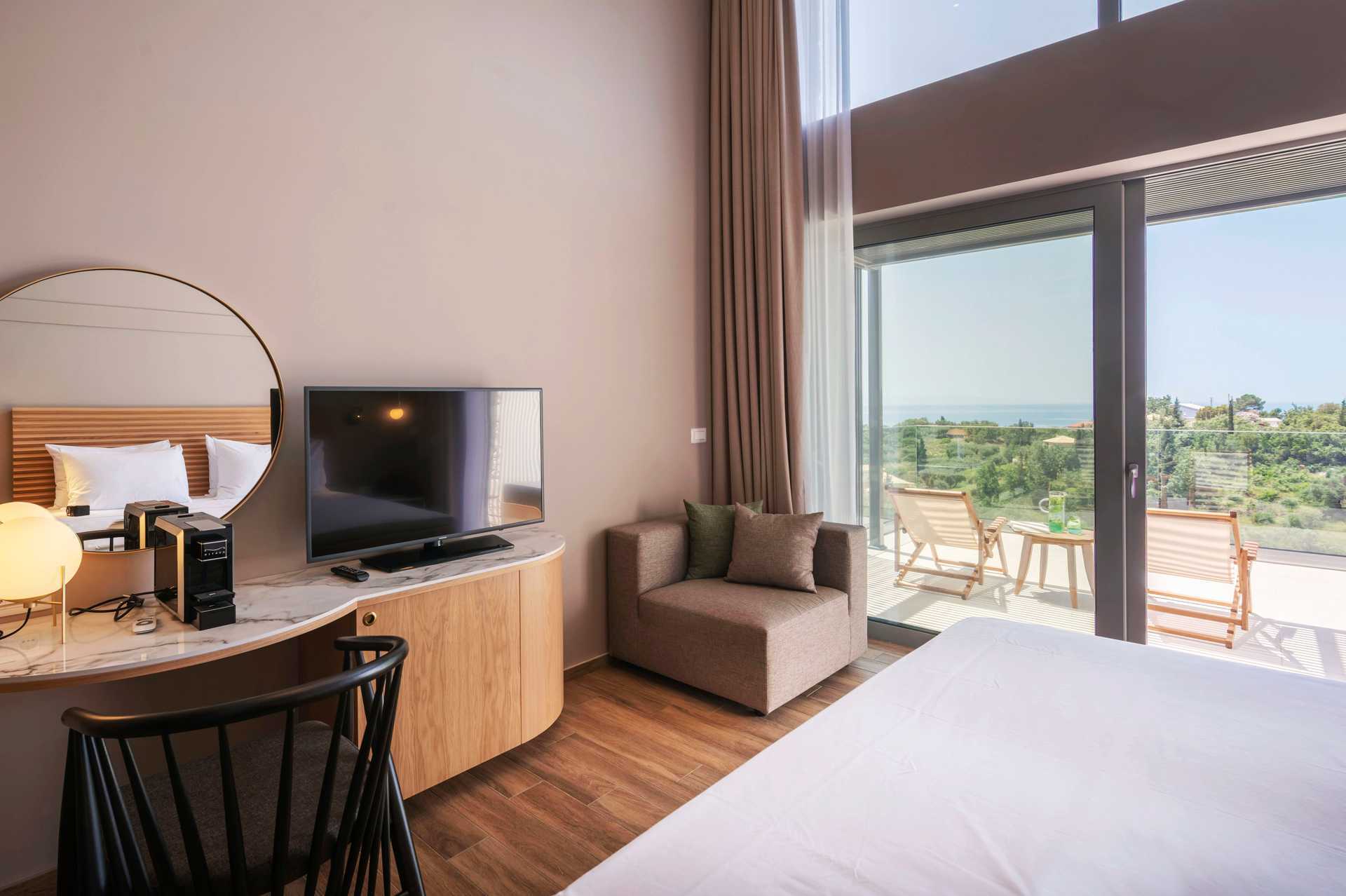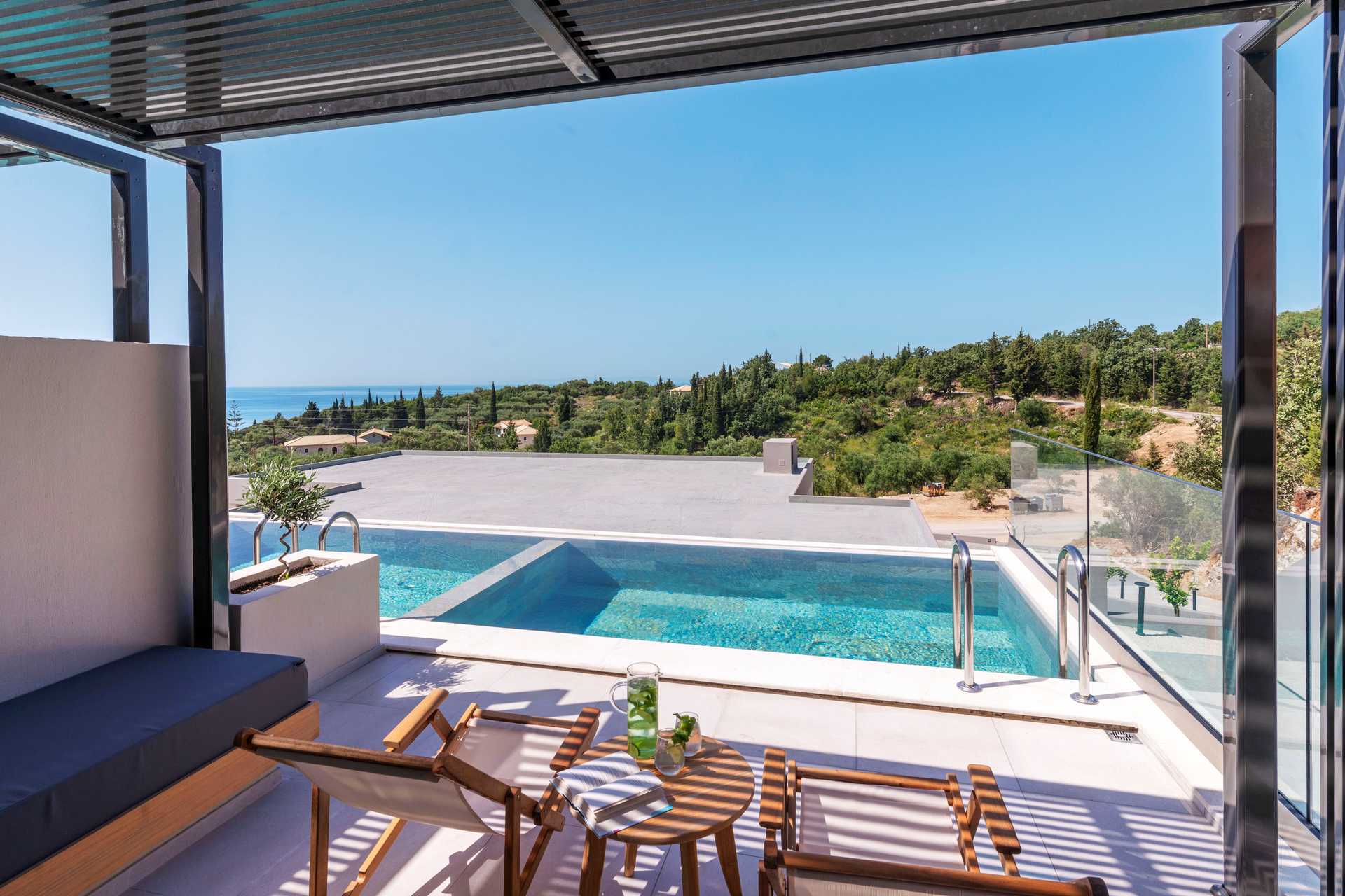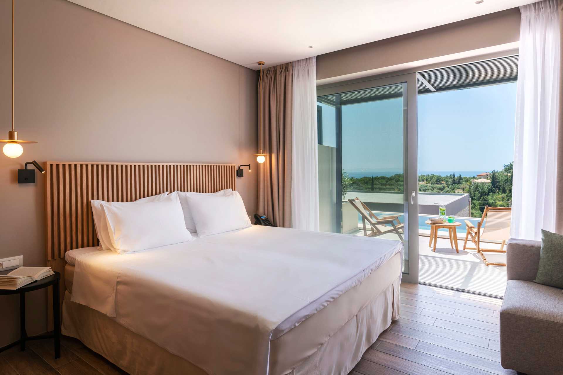 Dobbeltrom med eget basseng og utsikt mot basseng og hav. Sovekomforten er høy med en komfortabel dobbeltseng og sengetøy fra CocoMat. Wifi, safe og luftkondisjonering inkludert. Kaffemaskin, kapsler ved ankomst deretter mot et gebyr. Kjøleskap. TV. Bluetooth-høyttalere kan lånes i resepsjonen mot et depositum. Hårføner. Dusj og wc. Rengjøring 7 ggr/uke.