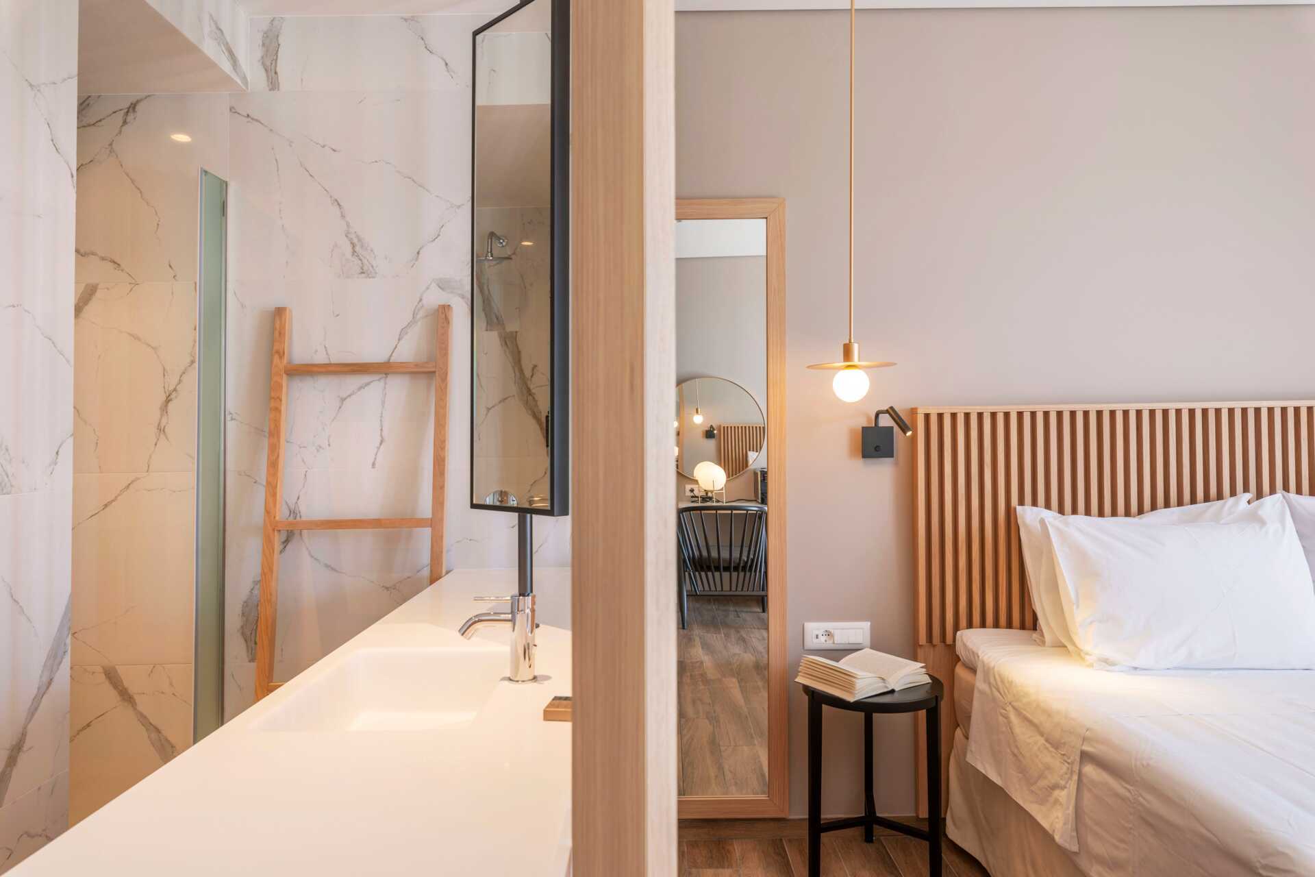 Dobbeltrom i de øverste etasjene med balkong som vender mot havet. Sovekomforten er høy med en komfortabel dobbeltseng og sengetøy fra CocoMat. Wifi, depositum og air condition inkludert Kaffemaskin, kapsler ved ankomst deretter mot et gebyr. Kjøleskap. TV. Bluetooth-høyttalere kan lånes i resepsjonen mot et depositum. Hårføner. Dusj og wc. Rengjøring 7 ggr/uke.