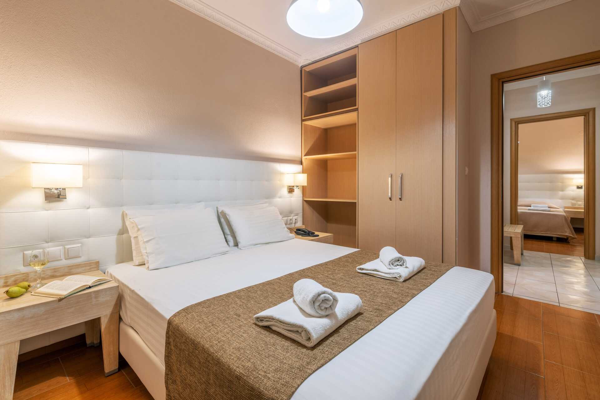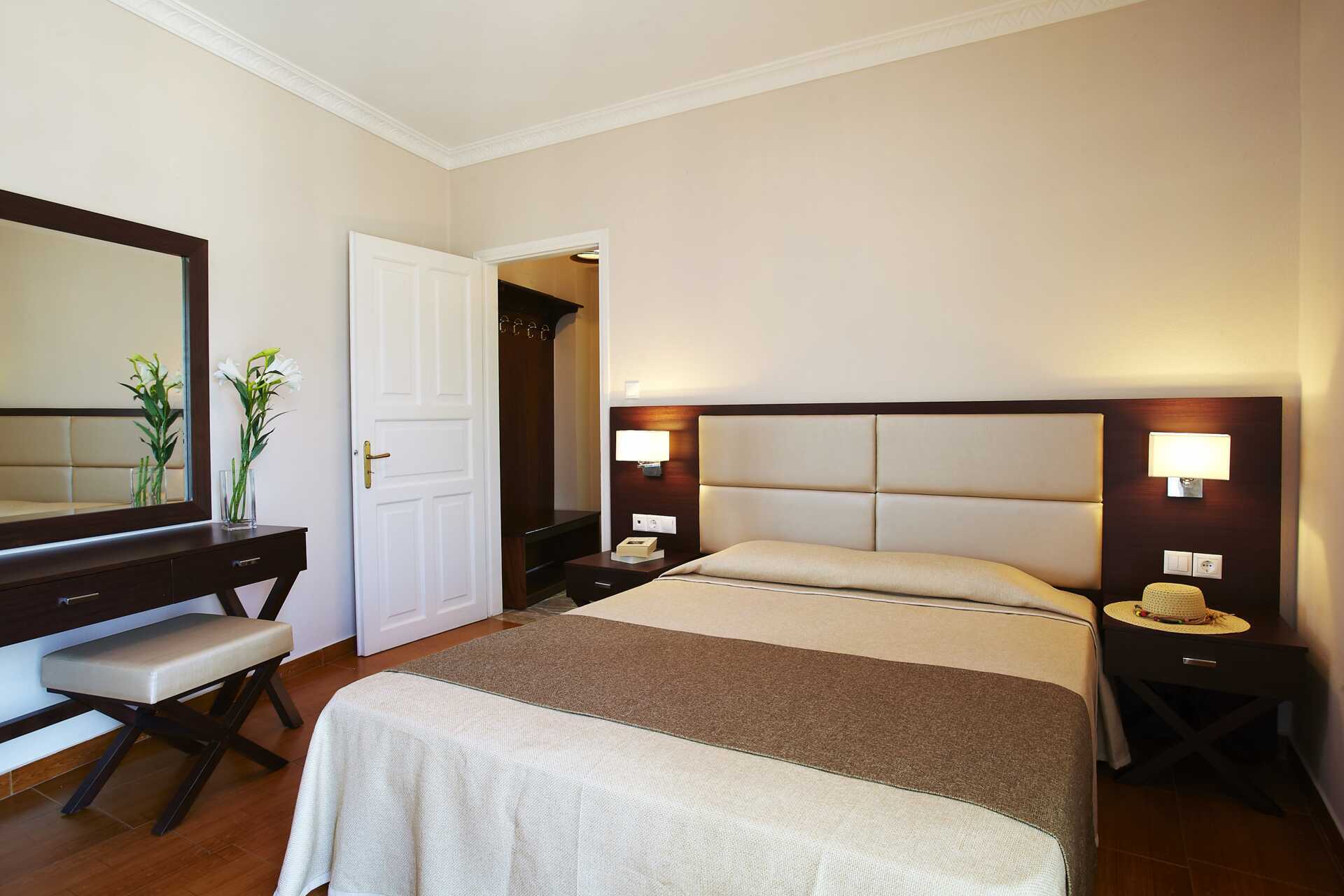 Treromsleilighet med 2 ord. senger, noen med balkong og noen uten terrasse. Noen med havutsikt og noen med bassengutsikt. To soverom og en stue med minikjøkken. En dobbeltseng. Mulig med ekstraseng i sovesofa. Minikjøkken med kokeplater, kaffetrakter, vannkoker, kjøleskap og enkelt kjøkkenutstyr. Wifi og luftkondisjonering er inkludert. Safe mot avgift. TV. Hårføner. Dusj og wc. Rengjøring 6 ggr/uke. Barn under 2 år regnes inn i maksantallet i rommet. Planløsning og interiørdesign kan variere mellom leilighetene.