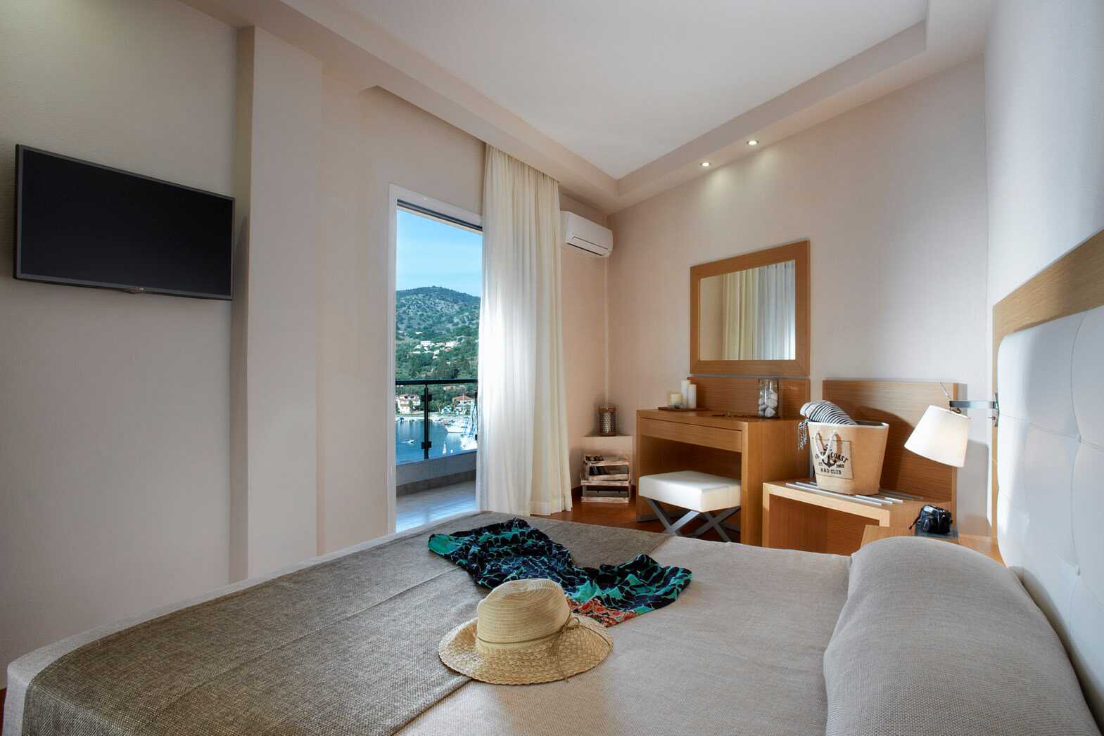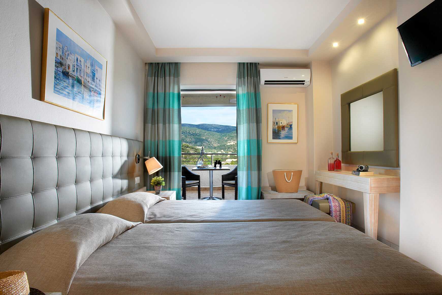 Dobbeltrom med balkong og havutsikt. En dobbeltseng. Wifi og luftkondisjonering er inkludert. Safe mot avgift. Kjøleskap. Vannkoker samt kaffe og te. TV. Hårføner. Dusj og wc. Rengjøring 6 ggr/uke. Barn under 2 år regnes inn i maksantallet i rommet.
