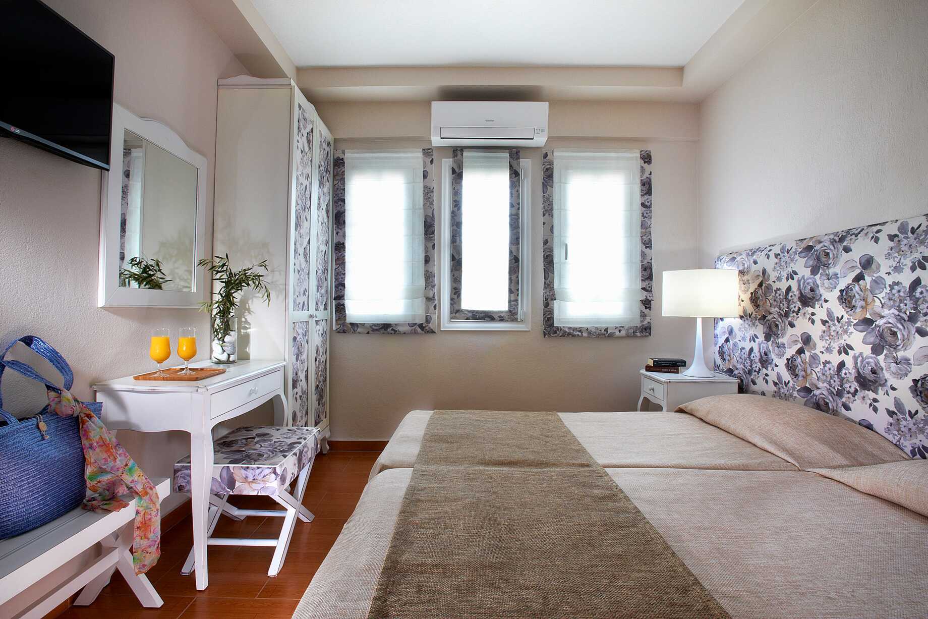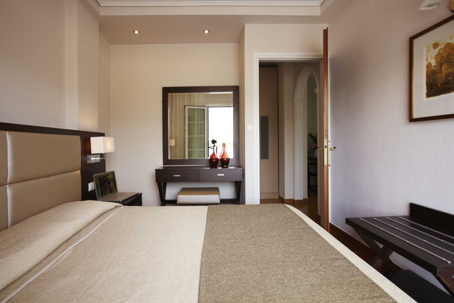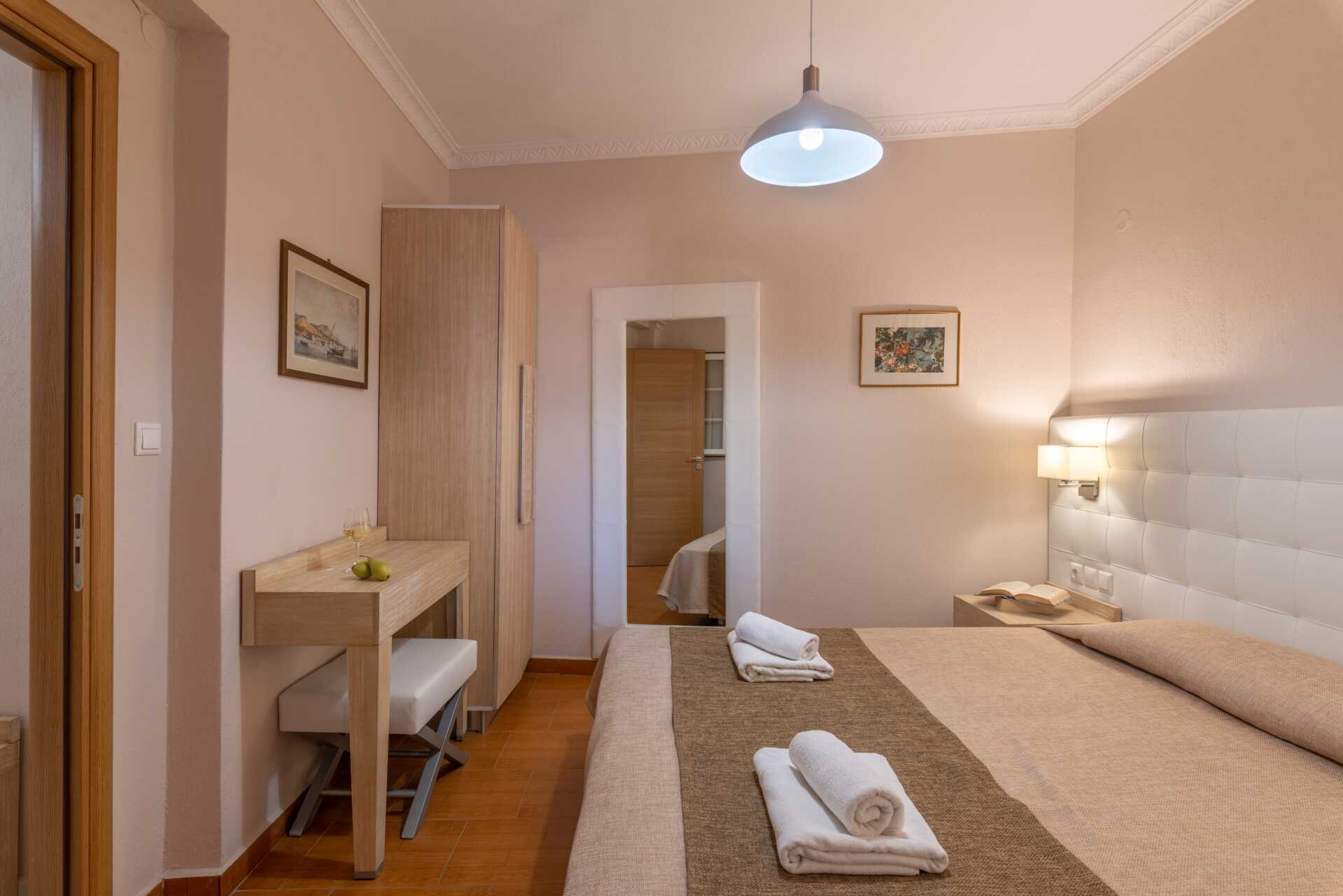 Treromsleilighet med 2 ord. senger, noen med balkong og noen uten uteplass. Noen av balkongene har havutsikt, og noen har utsikt over bassenget. To soverom og en stue med minikjøkken. En dobbeltseng. Mulig med en ekstraoppredning i sovesofa. Minikjøkken med kokeplater, kaffetrakter, vannkoker, kjøleskap og enkelt kjøkkenutstyr. Wifi og luftkondisjonering inkludert. Safe mot avgift. TV. Hårføner. Dusj og wc. Rengjøring 6 ggr/uke. Barn under 2 år regnes inn i maksantallet i rommet. Planløsning og interiørdesign kan variere mellom leilighetene.