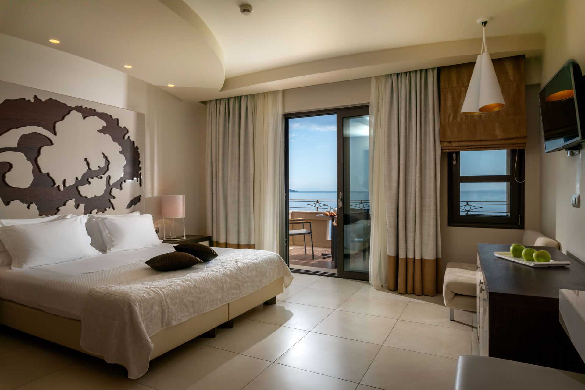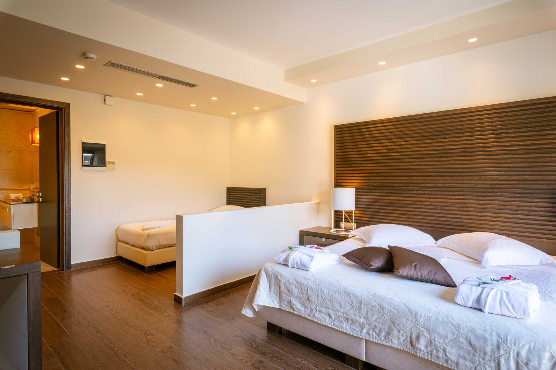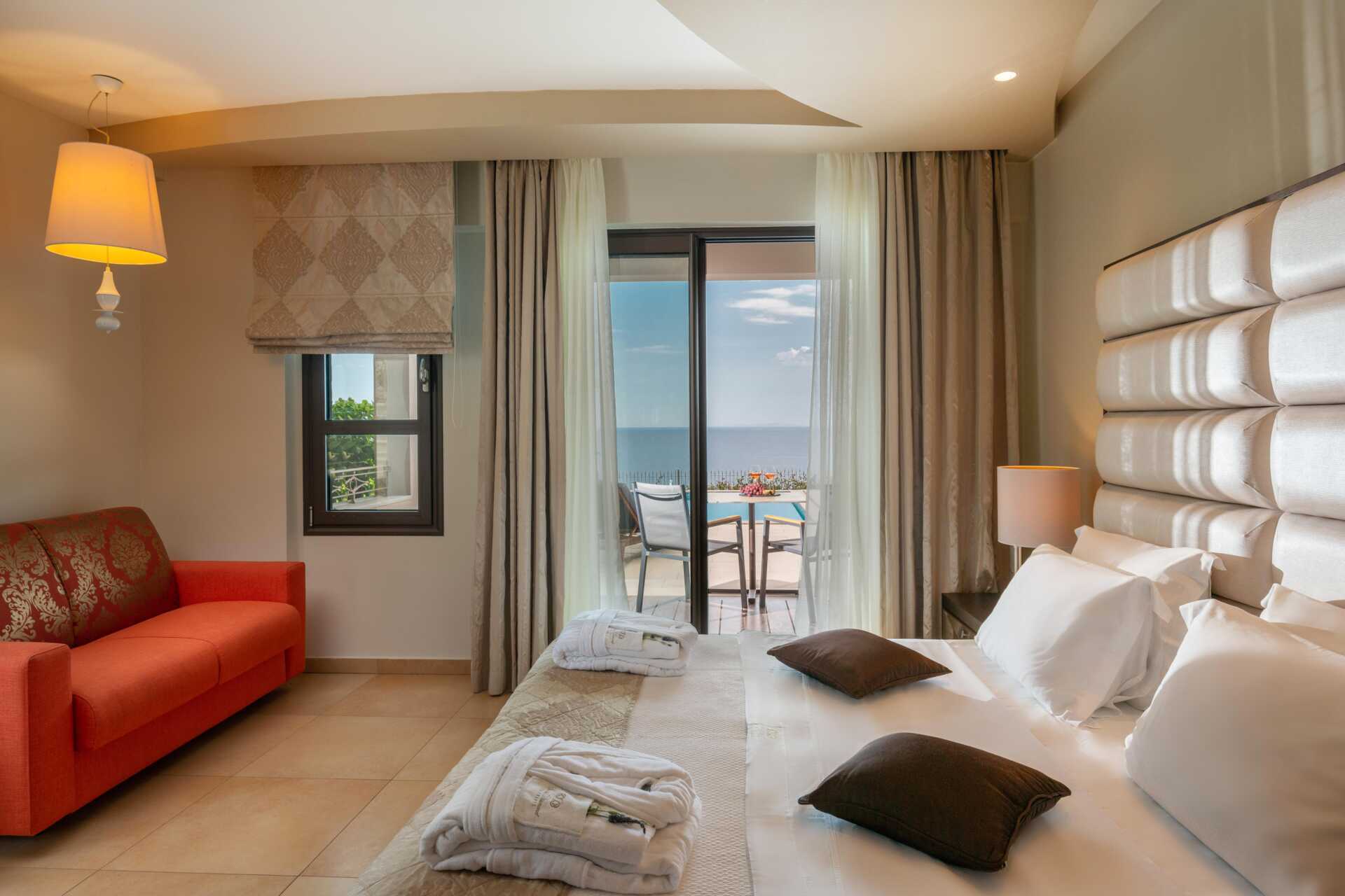 Suite med balkong og havutsikt eller begrenset havutsikt. En dobbeltseng eller to enkeltsenger. Mulig med ekstra seng i enkeltseng. Wifi, luftkondisjonering og safe inkludert. Minibar. TV. Badekåper og tøfler Hårføner. Dusj og wc. Balkong med havutsikt eller begrenset havutsikt. Rengjøring 7 ggr/uke.