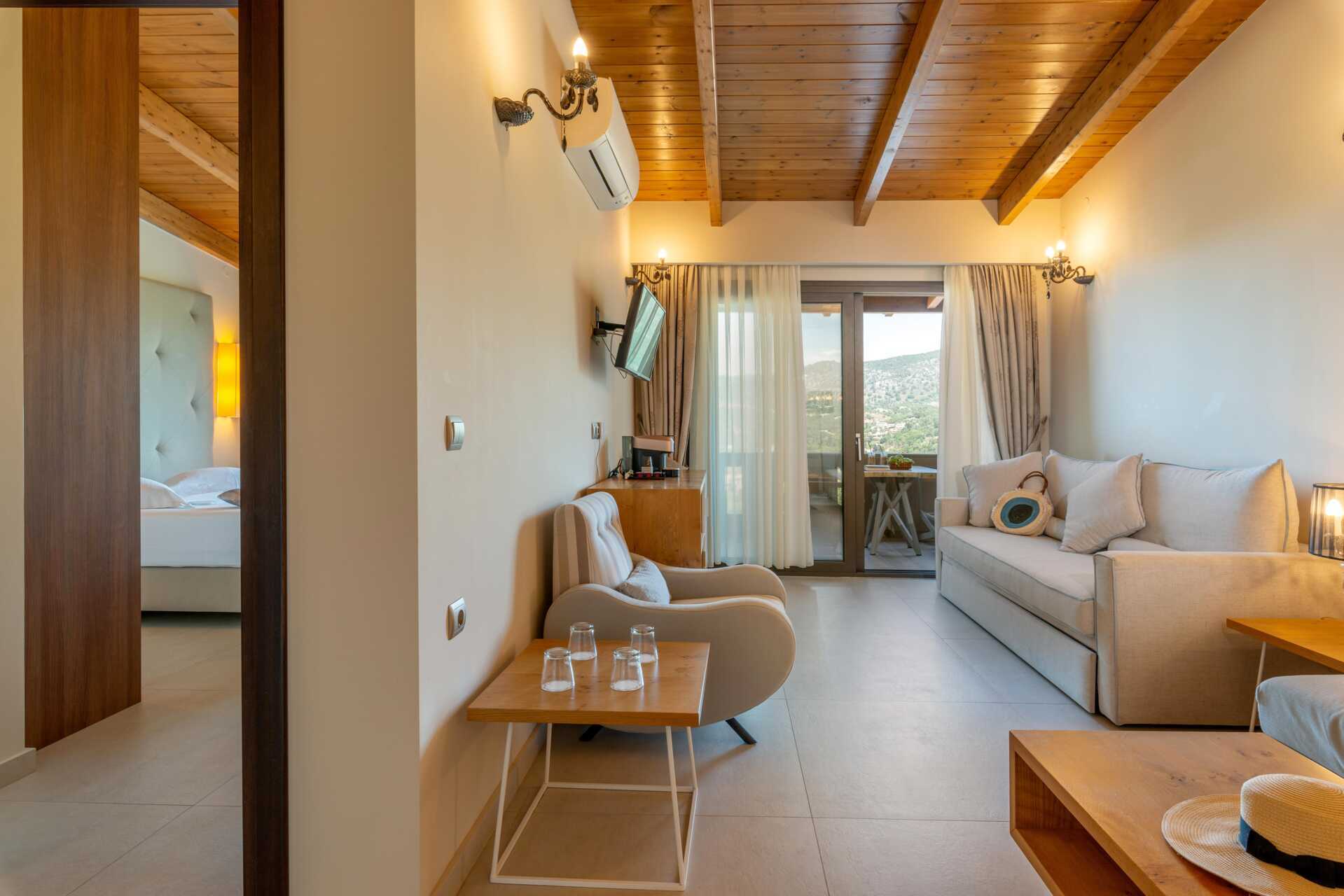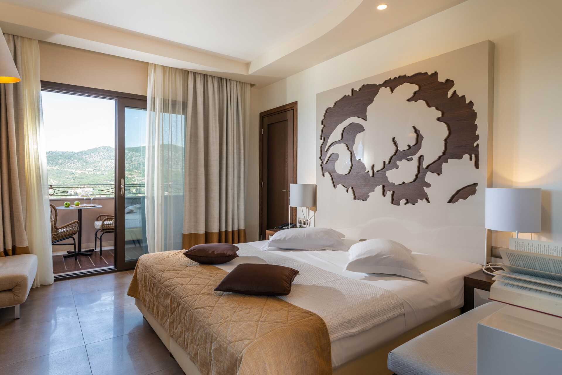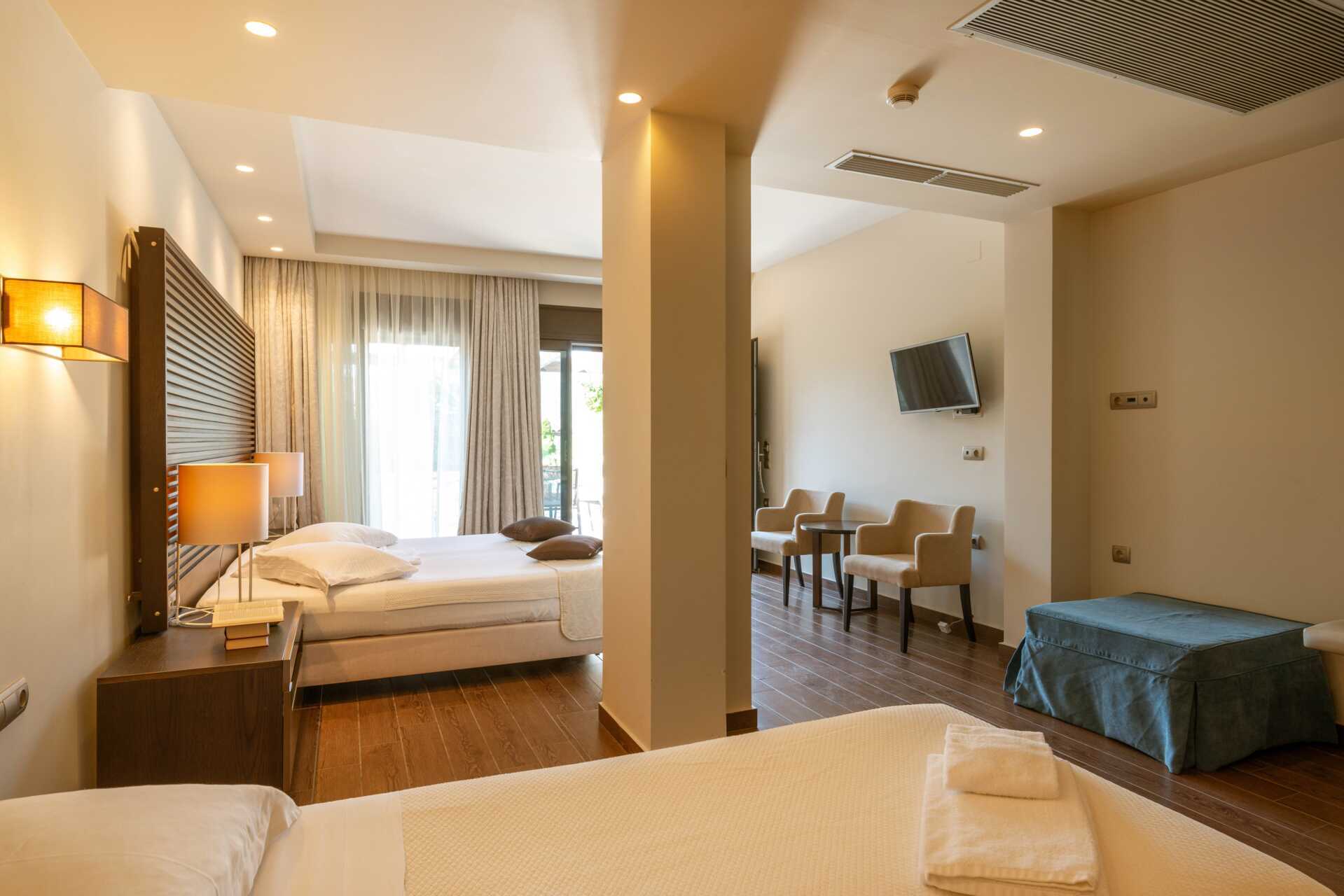 Suite med balkong og havutsikt eller begrenset havutsikt. En dobbeltseng eller to enkeltsenger. Mulig med ekstra seng i enkeltseng. Wifi, luftkondisjonering og safe inkludert. Minibar. TV. Badekåper og tøfler Hårføner. Dusj og wc. Balkong med havutsikt eller begrenset havutsikt. Rengjøring 7 ggr/uke.