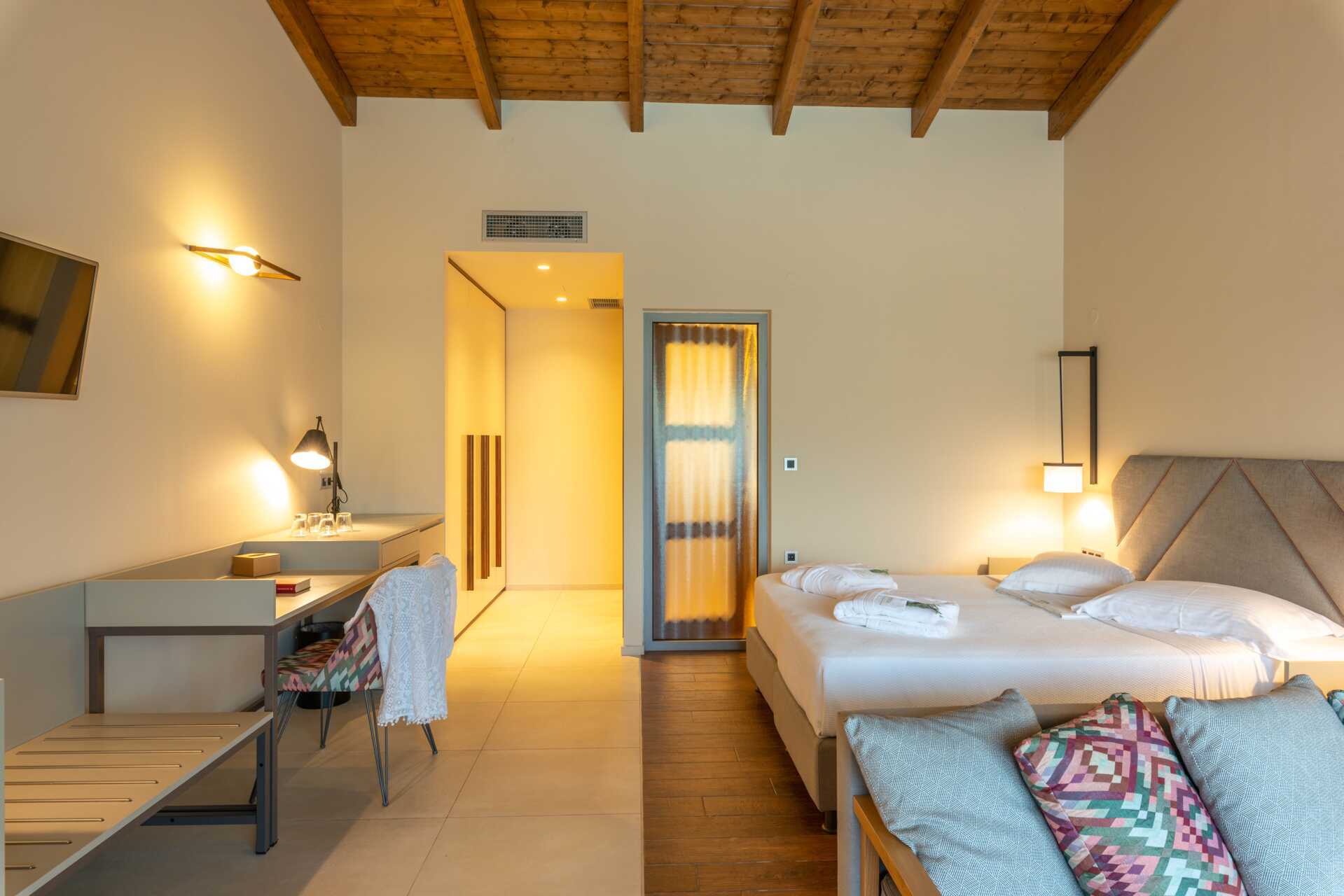 Juniorsuite med balkong. En dobbeltseng eller to enkeltsenger. Mulig med en ekstrasenger i en sovesofa eller i en oppredbar lenestol. Wifi, luftkondisjonering og safe inkludert. Minibar. TV. Badekåper og tøfler Hårføner. Dusj og wc. Rengjøring 7 ggr/uke.