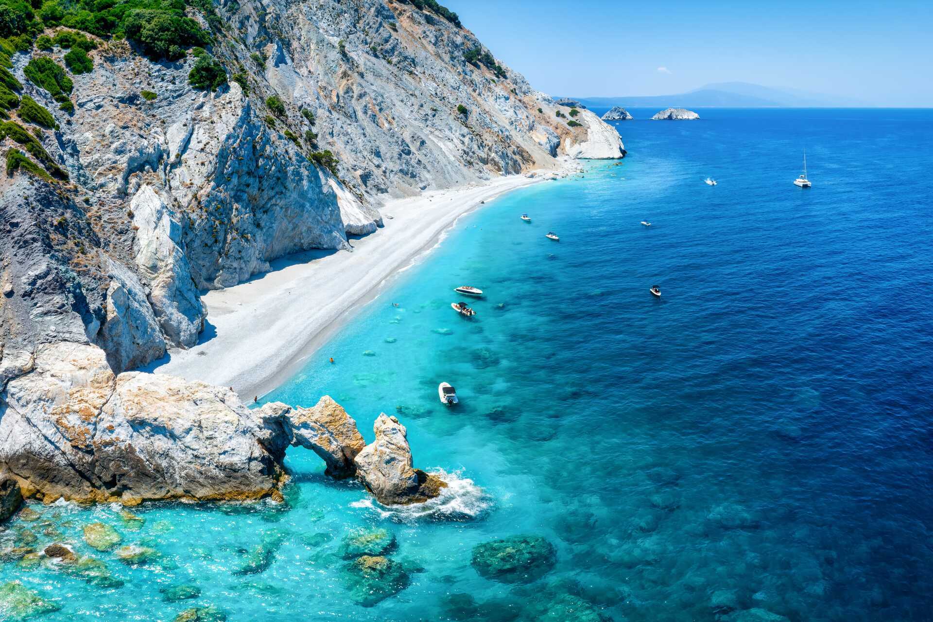 På Skiathos er det mange strender og bukter å velge mellom. Mange av de fine sandstrendene ligger langs sørkysten, f.eks. f.eks. Koukounaries. I nord ligger den fine brosteinsstranden Lalaria som kun kan nås med båt og også roligere sandstrender som kan nås med bil eller moped. I utkanten av Skiathos by ligger den godt besøkte stranden Megali Ammos med vannsport og tavernaer. I Achladies er det også en sandstrand. Her kan du lese mer om de vakre strendene på Skiathos.