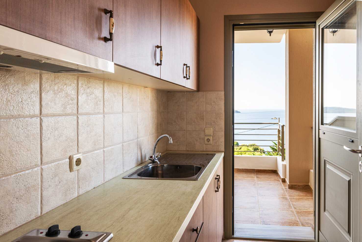 Renovert ettromsleilighet med balkong og havutsikt. Kombinert soverom og minikjøkken. En dobbeltseng. Mulighet for ekstraseng i oppredbar lenestol. Minikjøkken med kokeplater, kjøleskap, vannkoker, kaffetrakter, brødrister og enkelt kjøkkenutstyr. Wifi, luftkondisjonering og safe inkludert. TV med lokale kanaler. Hårføner. Bad med dusj og wc. Rengjøring 6 ggr/uke.