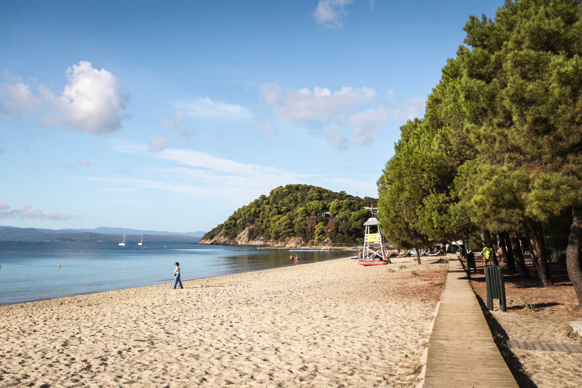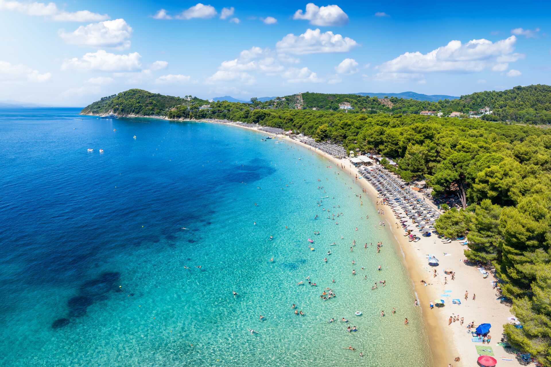 På den sørlige kysten av Skiathos finner du Koukounaries. Her venter en av Europas mest berømte strender – Koukounaries Beach. Strandens myke, hvite sand og velduftende furutrær langs kysten er veldig populære. Selvfølgelig kan du også teste en rekke vannsporter her, og langs stranden er det enkle serveringssteder. Hvis du vil ha et bredere utvalg av tavernaer og barer, er det bare å ta bussen inn til Skiathos by.