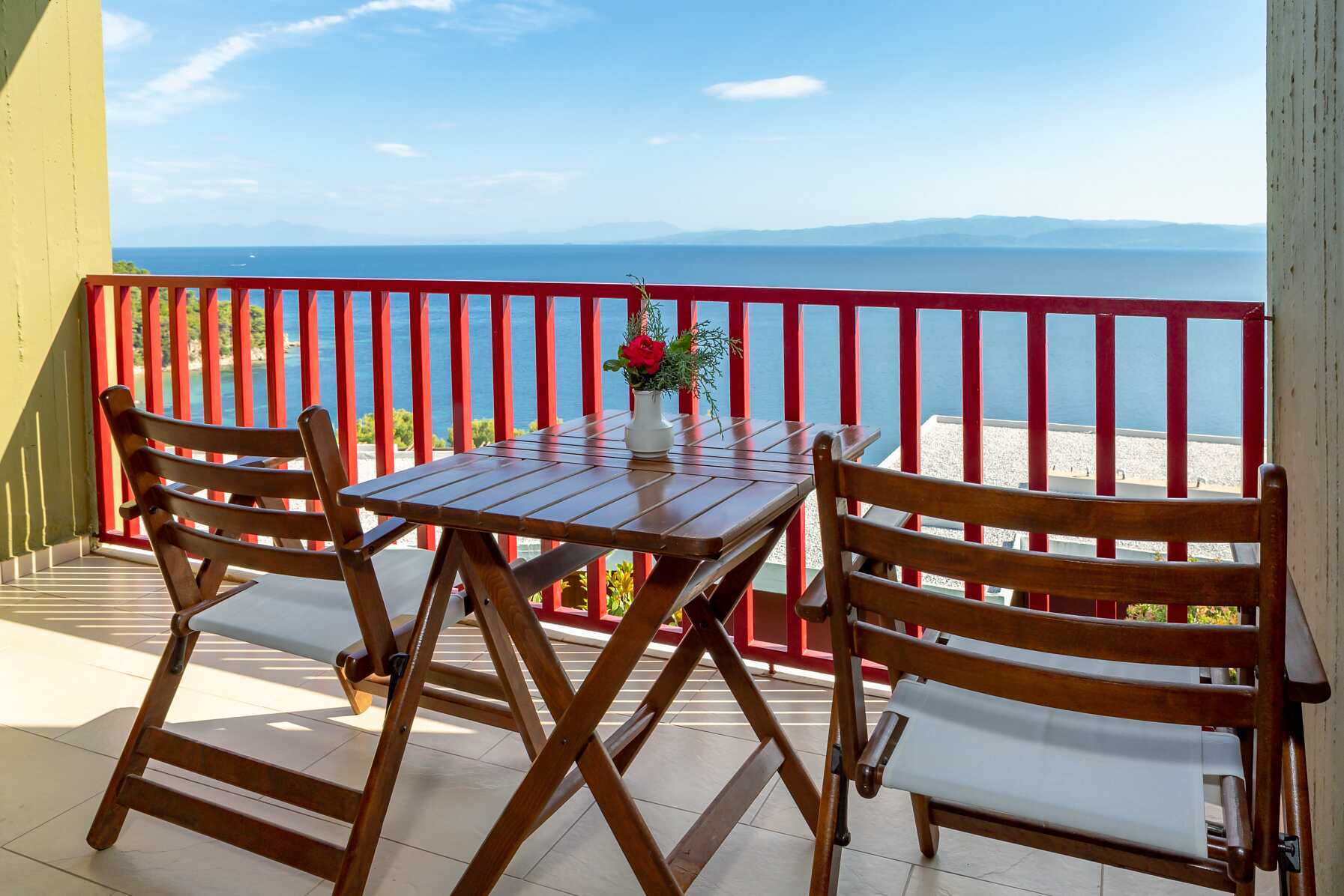 Executiverom med balkong og havutsikt. Det er solsenger på balkongen. En dobbeltseng eller to enkeltsenger. Mulig med en ekstraseng i sovesofa. Wifi, luftkondisjonering og safe inkludert. Kjøleskap. Vannkoker. TV. Badekåper og tøfler. Hårføner. Bad med dusj og wc. Rengjøring 7 ggr/uke.