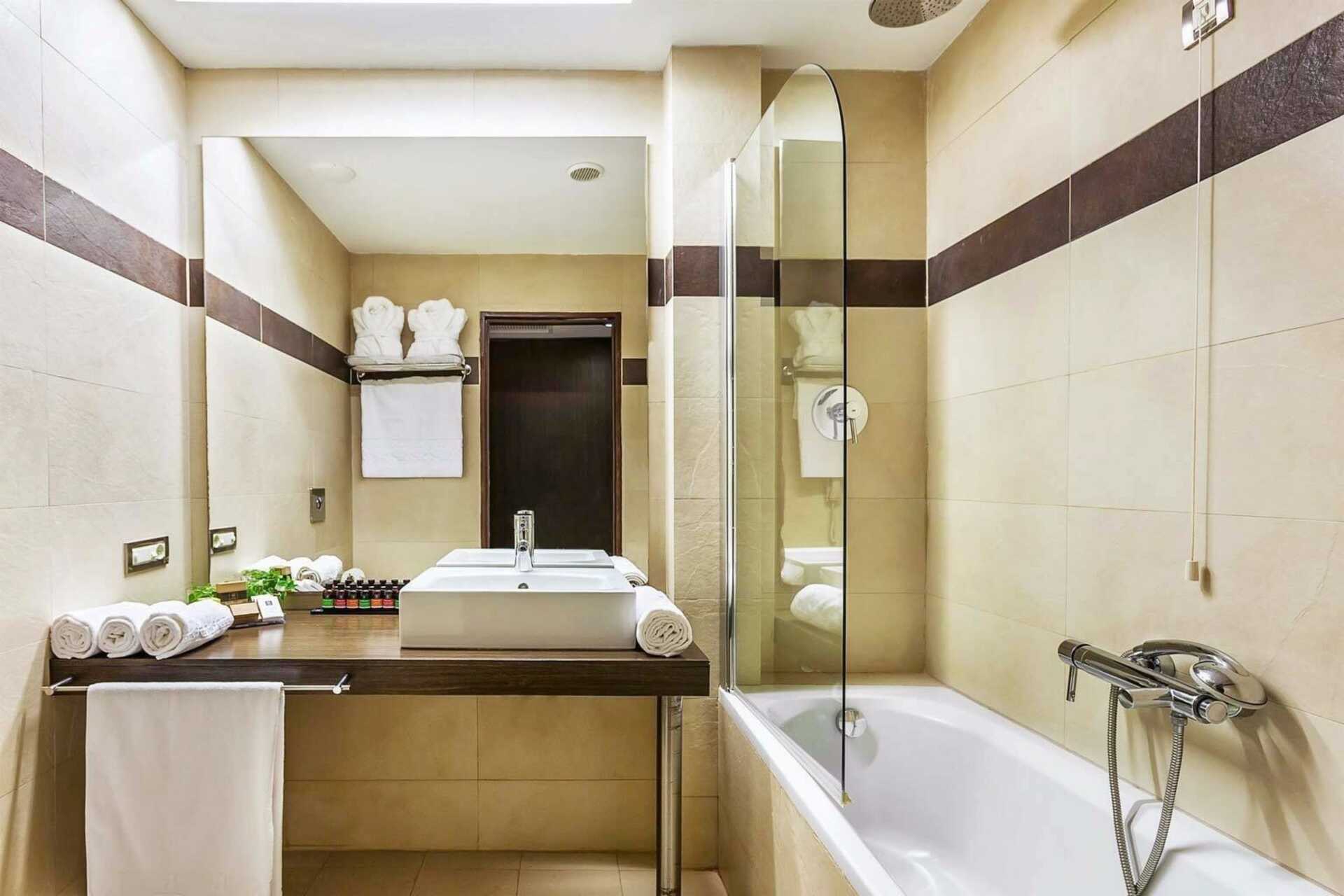 Dobbeltrom med balkong eller terrasse. En dobbeltseng eller to enkeltsenger. Mulig med ekstraseng i oppredbar lenestol. Wifi, luftkondisjonering og safe inkludert. Kjøleskap. Vannkoker. TV. Hårføner. Bad med dusj og wc. Rengjøring 7 ggr/uke.