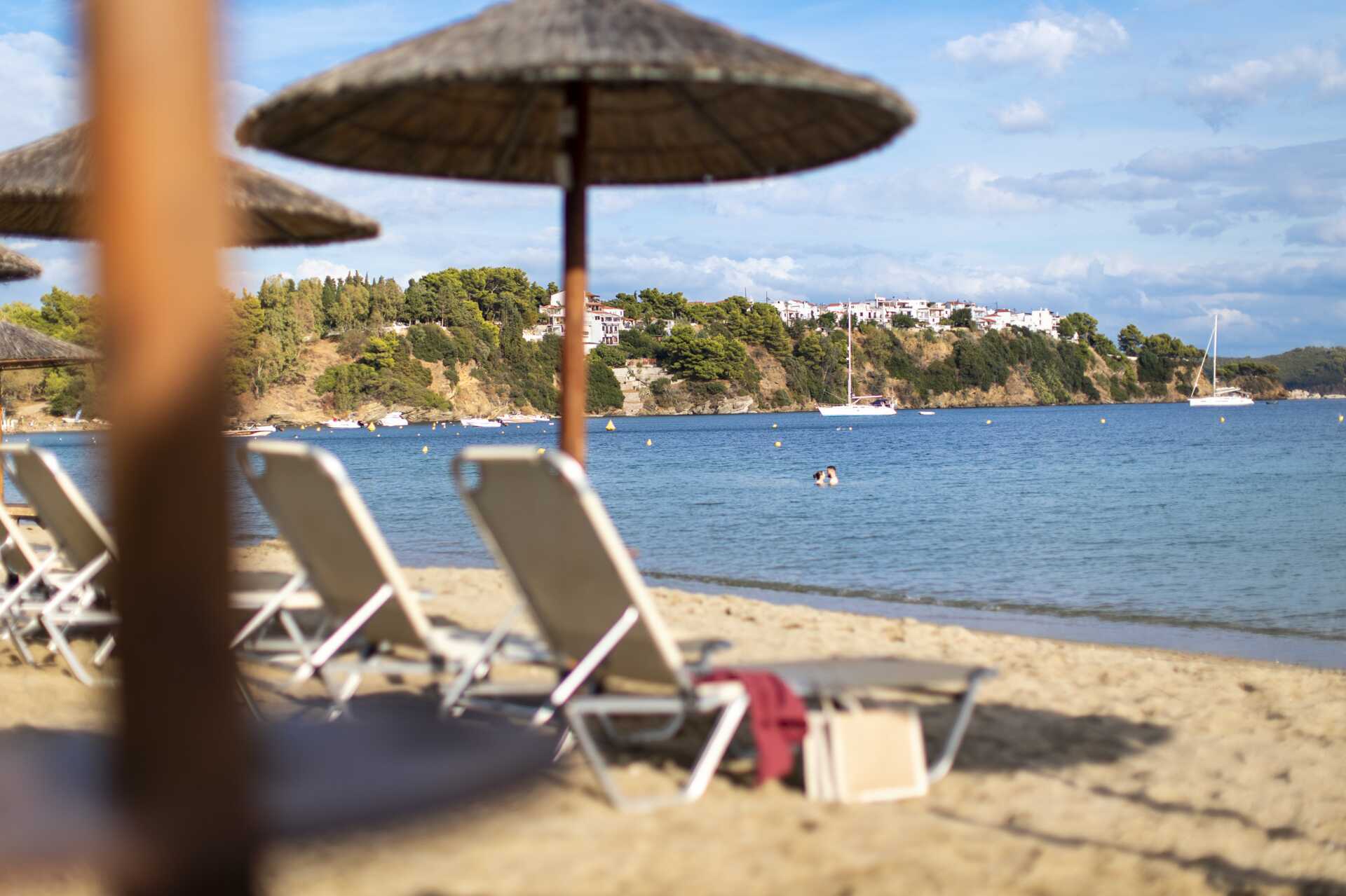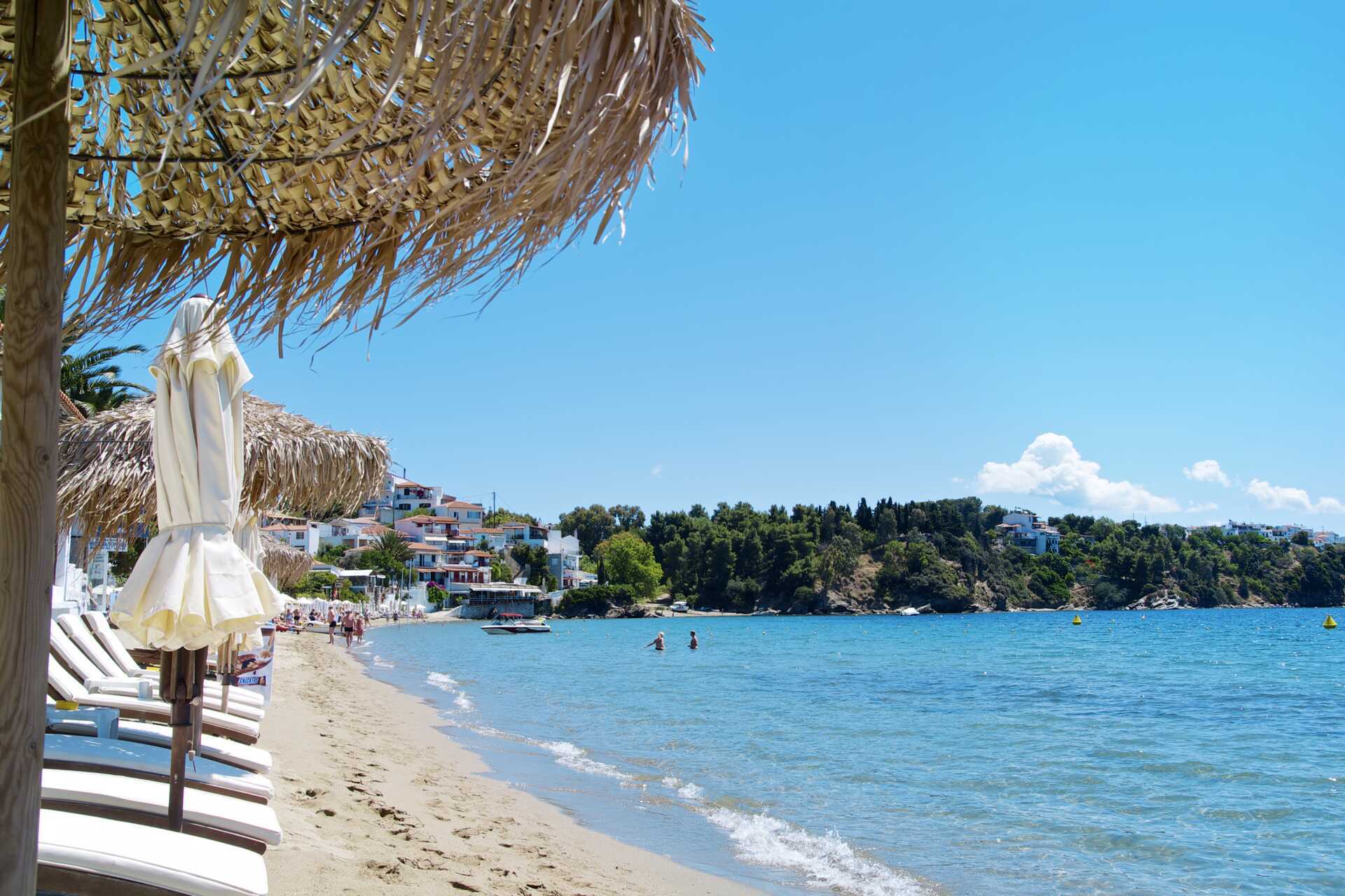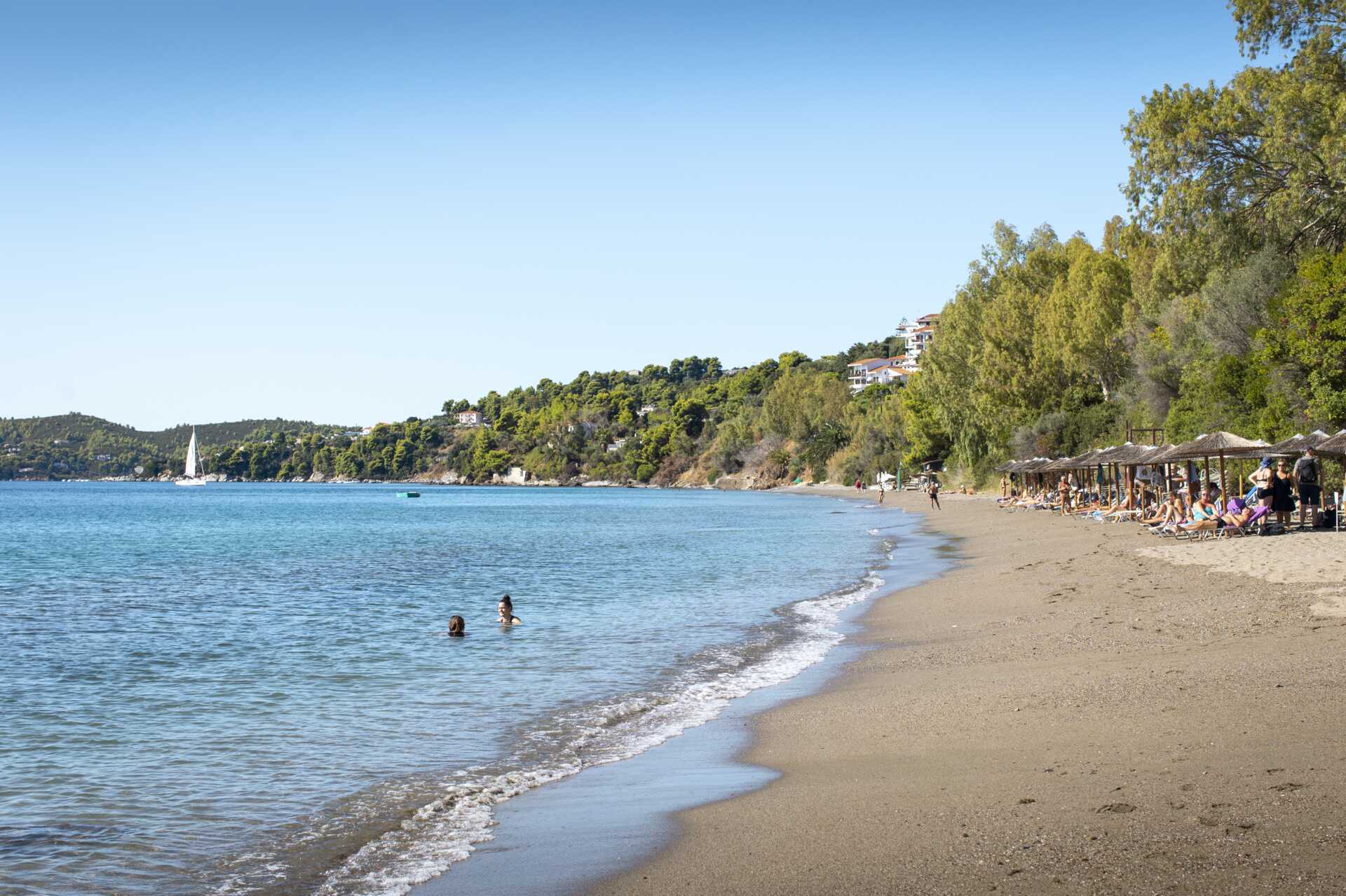 I utkanten av Skiathos by ligger den godt besøkte stranden Megali Ammos med vannsport og tavernaer.