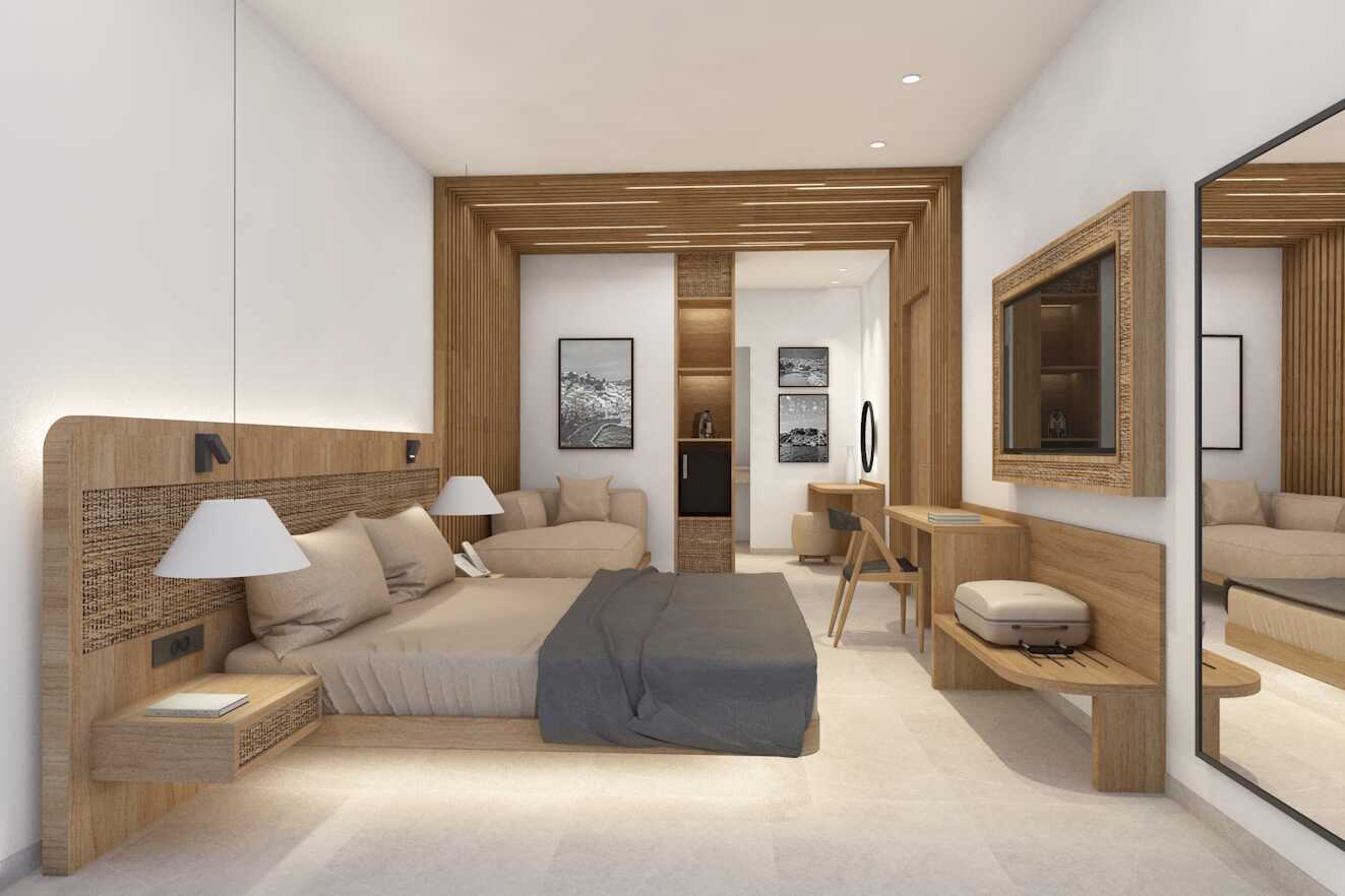 Juniorsuite med utgang til delt basseng fra markterrassen. En dobbeltseng. Wifi, luftkondisjonering og safe inkludert. Minibar. Vannkoker samt kaffe og te. TV. Tøfler. Hårføner. Dusj og wc. Rengjøring 7 ggr/uke.