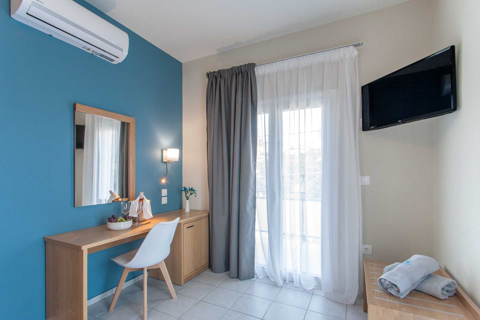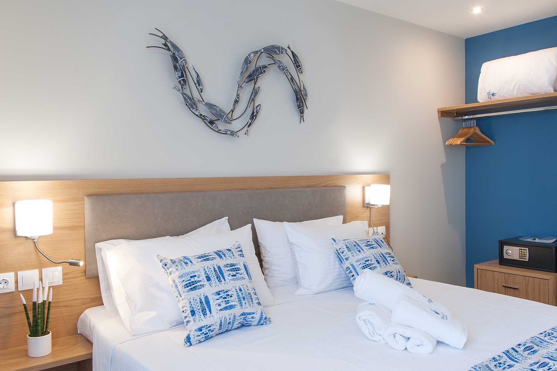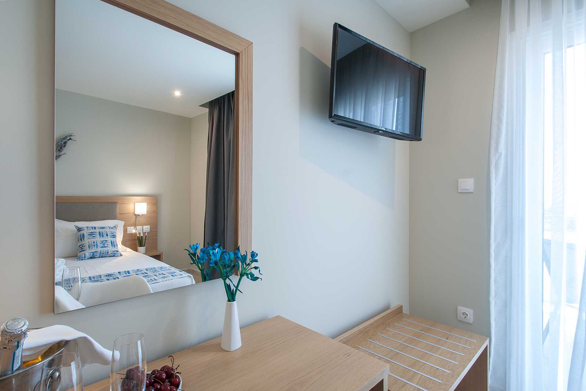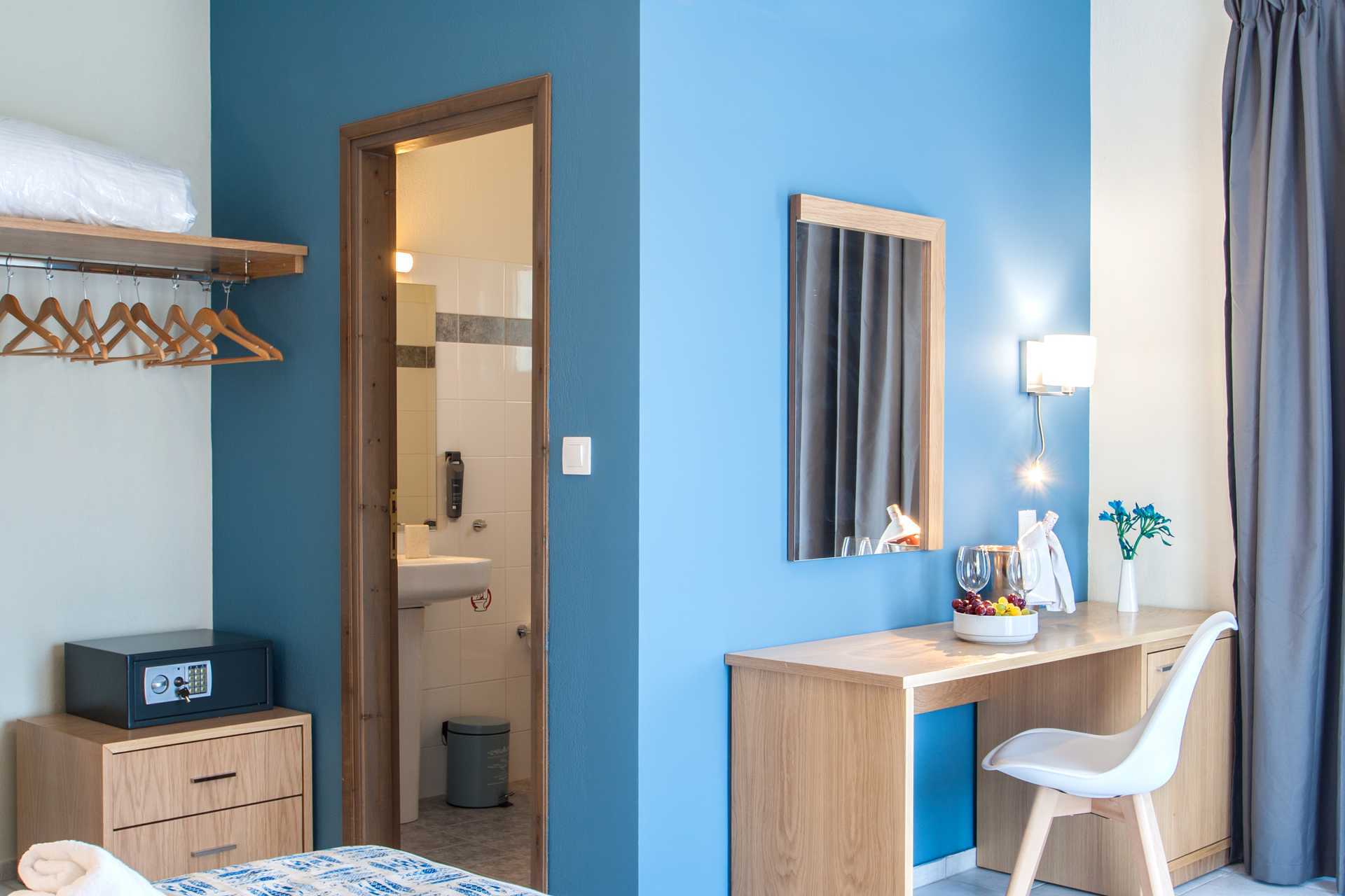 Dobbeltrom med balkong eller markbalkong. En dobbeltseng eller to enkeltsenger. Wifi, luftkondisjonering og safe inkludert. Kjøleskap. TV. Hårføner. Baderom med dusj og wc. Rengjøring 6 ggr/uke.