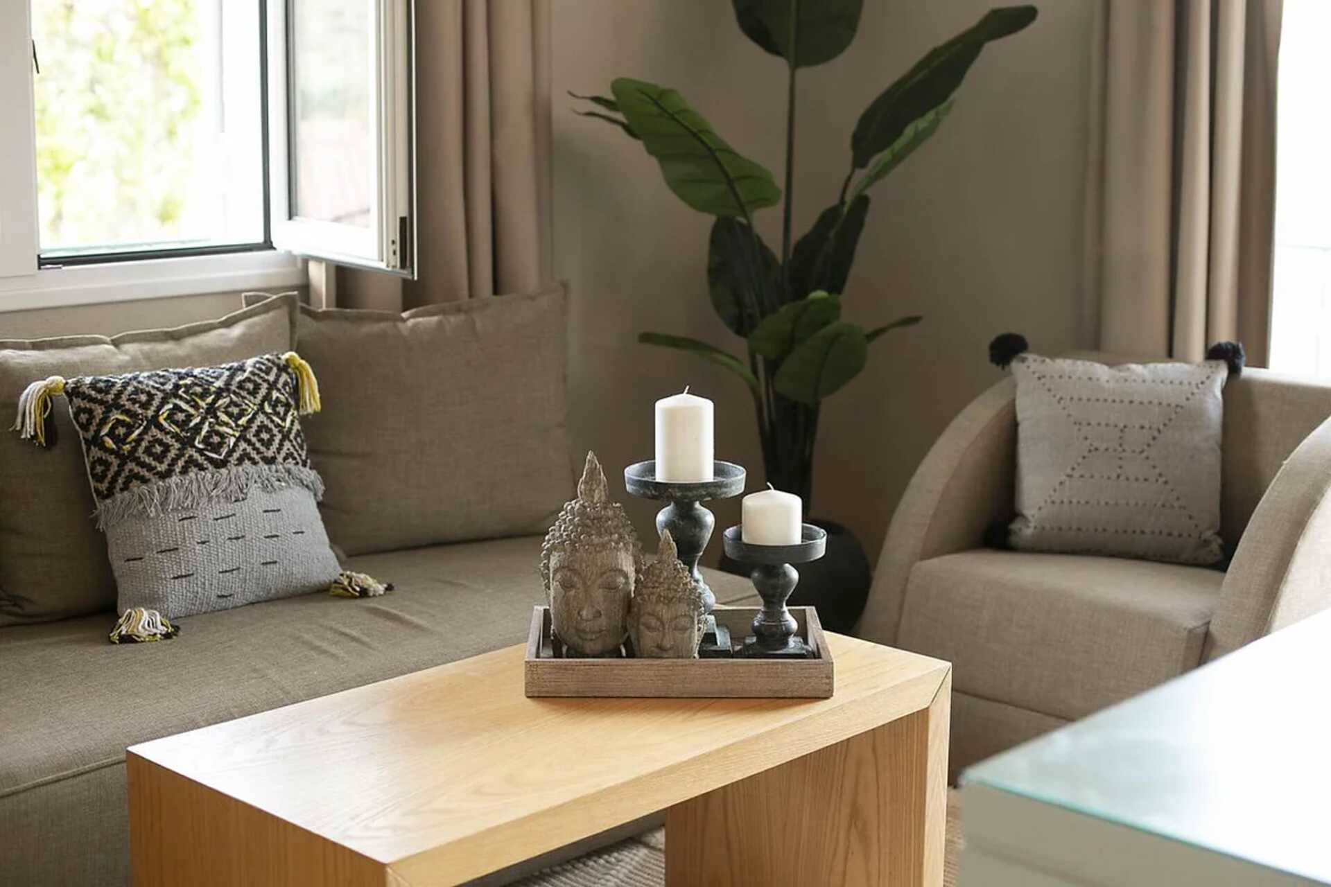 Juniorsuite med markterrasse og bassengutsikt. Juniorsuiten består av et soverom og en stue. En dobbeltseng eller to enkeltsenger. Wifi, safe og luftkondisjonering inkludert. Minibar. TV. Baderom med dusj og wc. Rengjøring 6 ggr/uke.