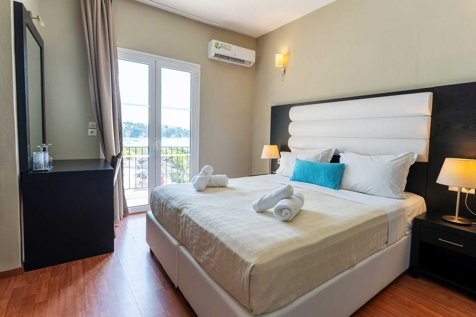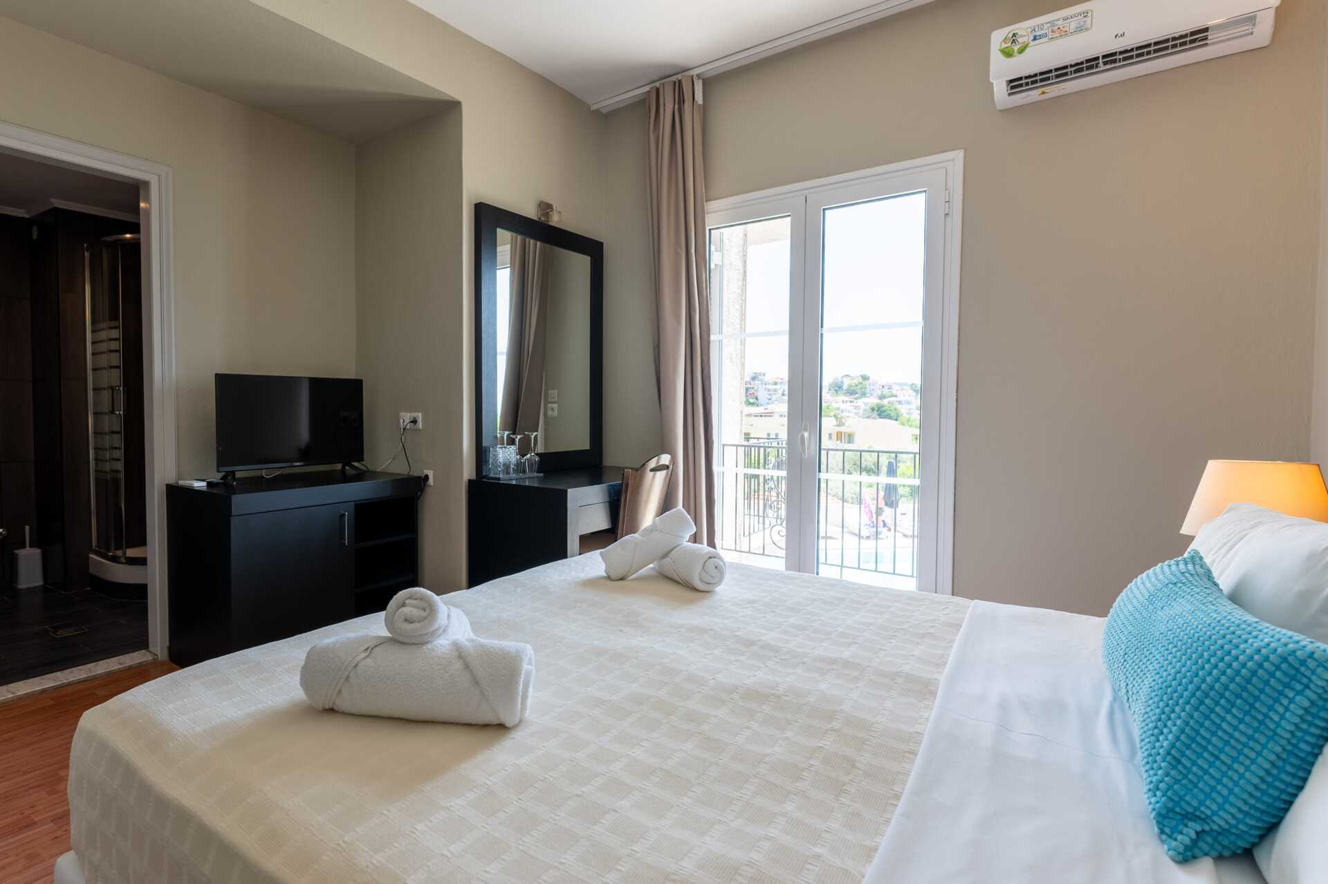 Dobbeltrom som har fått en lett renovering frem til sommeren 2025. Markterrasse og bassengutsikt eller balkong med havutsikt. En dobbeltseng eller to enkeltsenger. Wifi, safe og luftkondisjonering inkludert. Minibar. TV med lokale kanaler. Bad med dusj og wc. Rengjøring 6 ggr/uke.