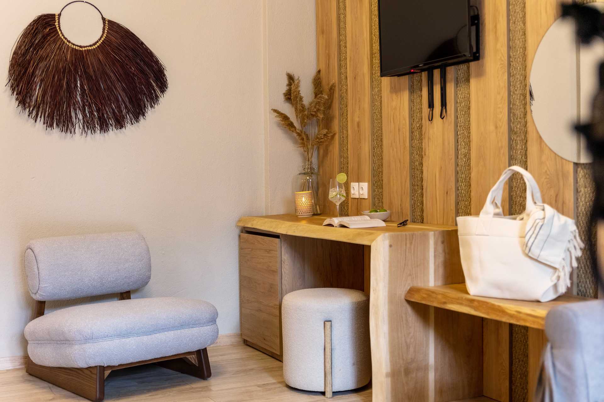 Familierom med balkong eller terrasse, noen med bassengutsikt. Rommene ligger i Thalassa-bygningen. En dobbeltseng eller to enkeltsenger. Mulig med en ekstraseng i sovesofa. Wifi, luftkondisjonering og safe inkludert. Kjøleskap. TV. Hårføner. Tøfler. Dusj og wc. Rengjøring 7 ggr/uke. Barn under 2 år regnes inn i maksantallet i rommet.