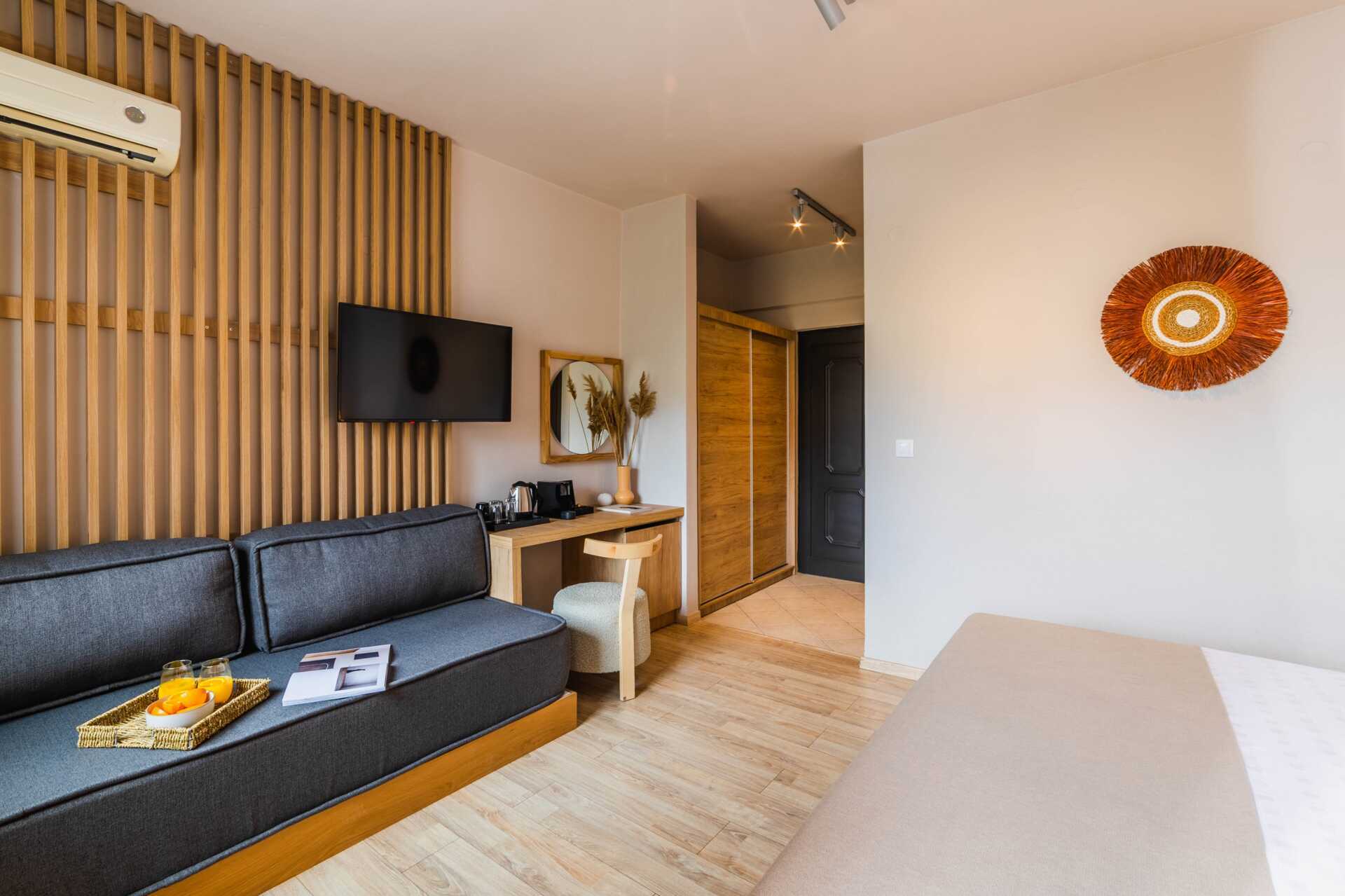 Superiorrom med balkong eller terrasse. Rommene ligger i Thalassa- eller Cape-bygningen. En dobbeltseng eller to enkeltsenger. Wifi, luftkondisjonering og safe inkludert. Kjøleskap. Vannkoker. TV. Hårføner. Tøfler. Dusj og wc. Rengjøring 7 ggr/uke. Barn under 2 år regnes inn i maksantallet i rommet.
