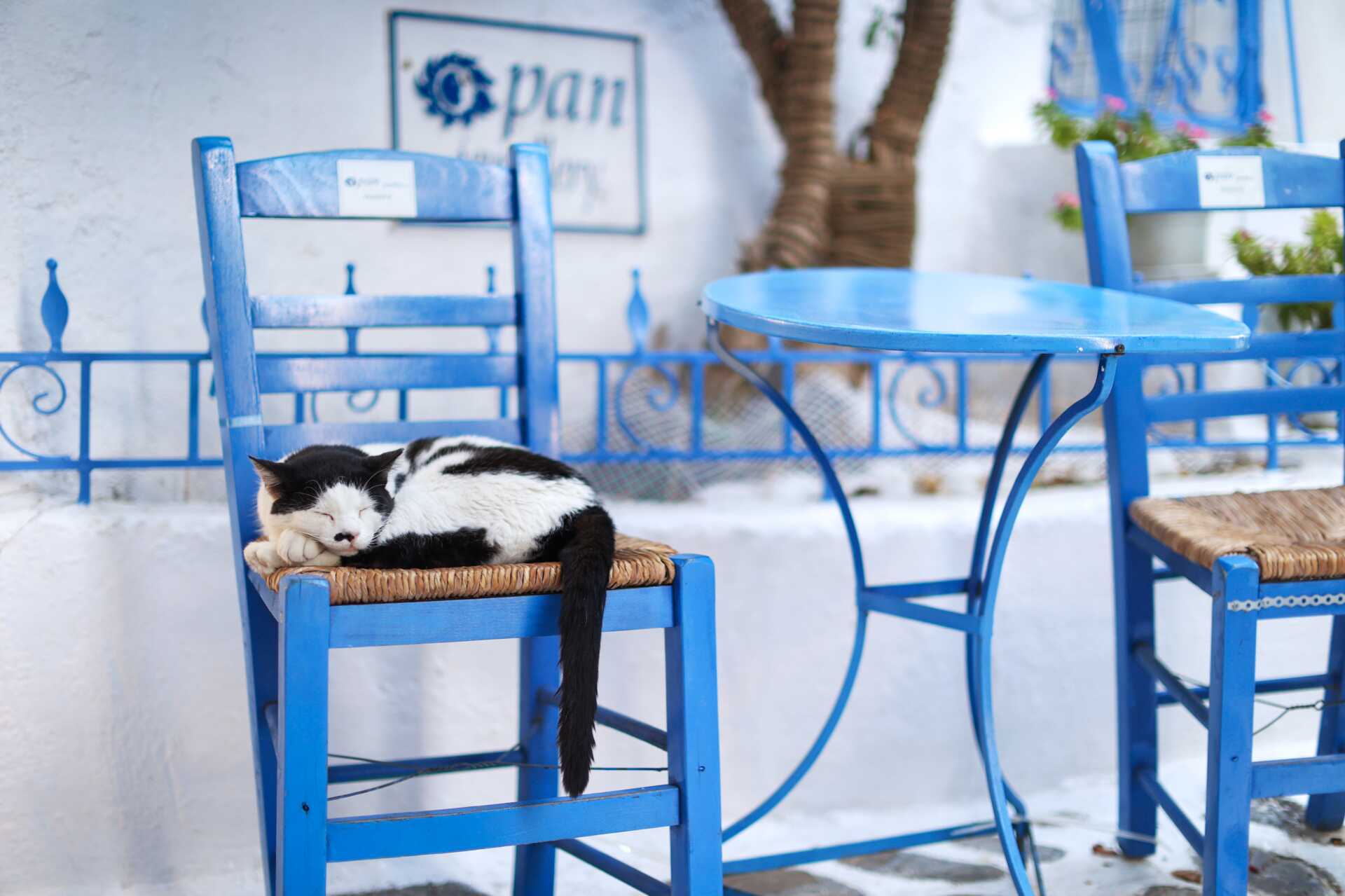 Ved den nye havnen, hvor de private båtene legger til, ligger kaféer og restauranter langs havnepromenaden. På Papadiamantis og dens sidegater står butikkene på rekke og rad og tilbyr et rikt utvalg av alt fra eksklusive designerklær til vanlige suvenirer.