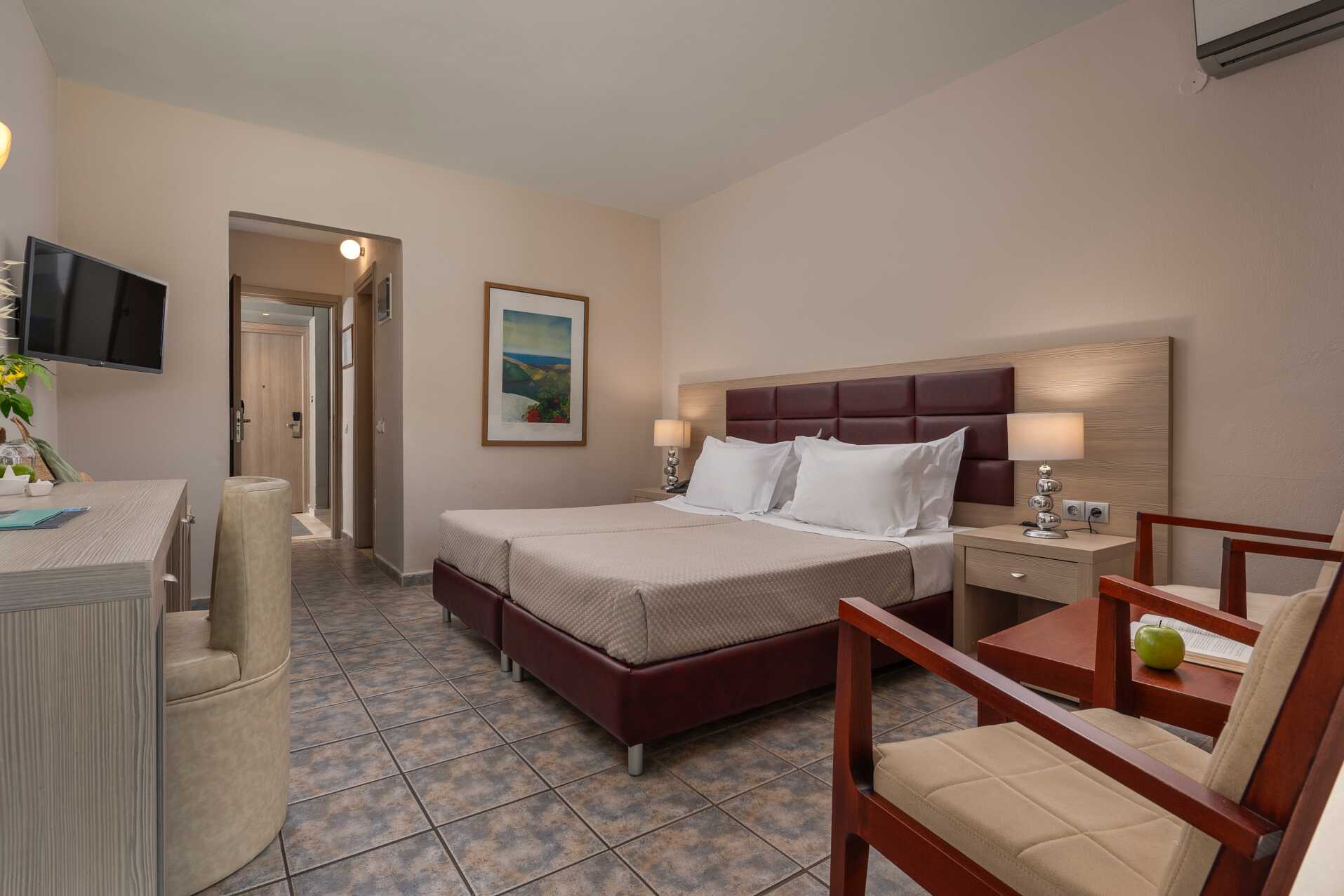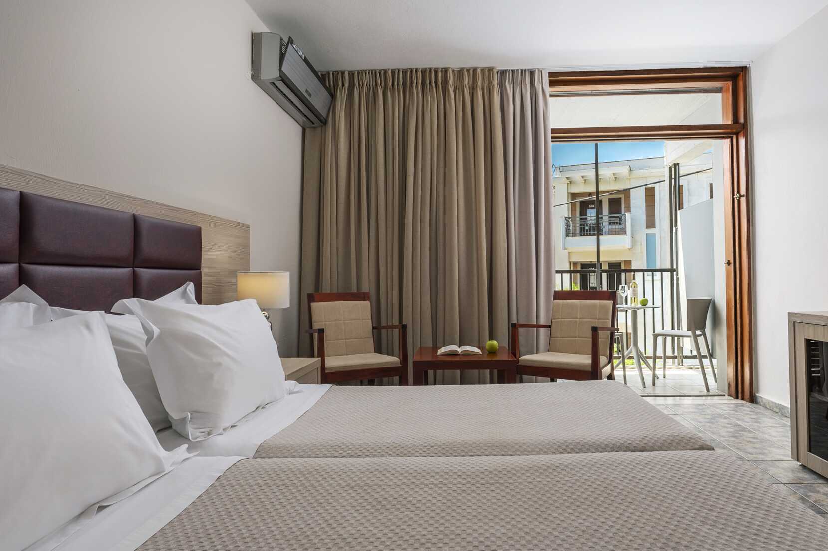 Superiorrom med balkong eller terrasse og havutsikt. En dobbeltseng eller to enkeltsenger. Mulig med ekstraseng i feltseng. Wifi, luftkondisjonering og safe inkludert. Kjøleskap. Vannkoker. TV. Hårføner. Baderom med dusj og wc. Rengjøring 7 ggr/uke.