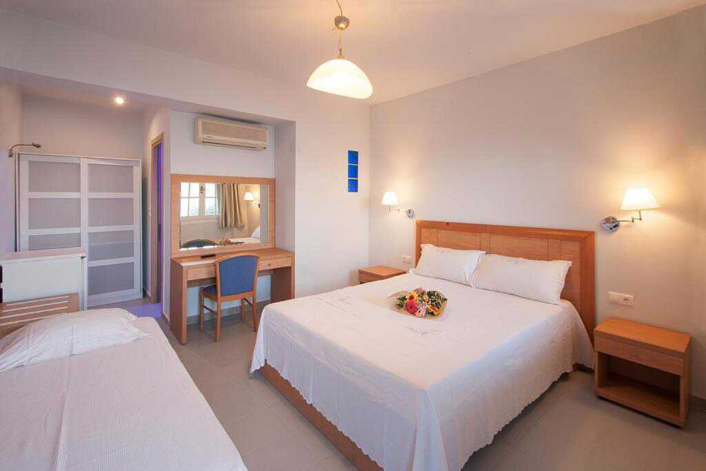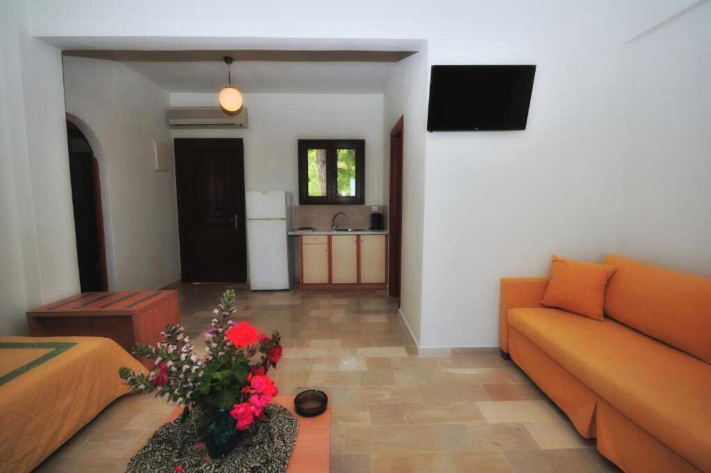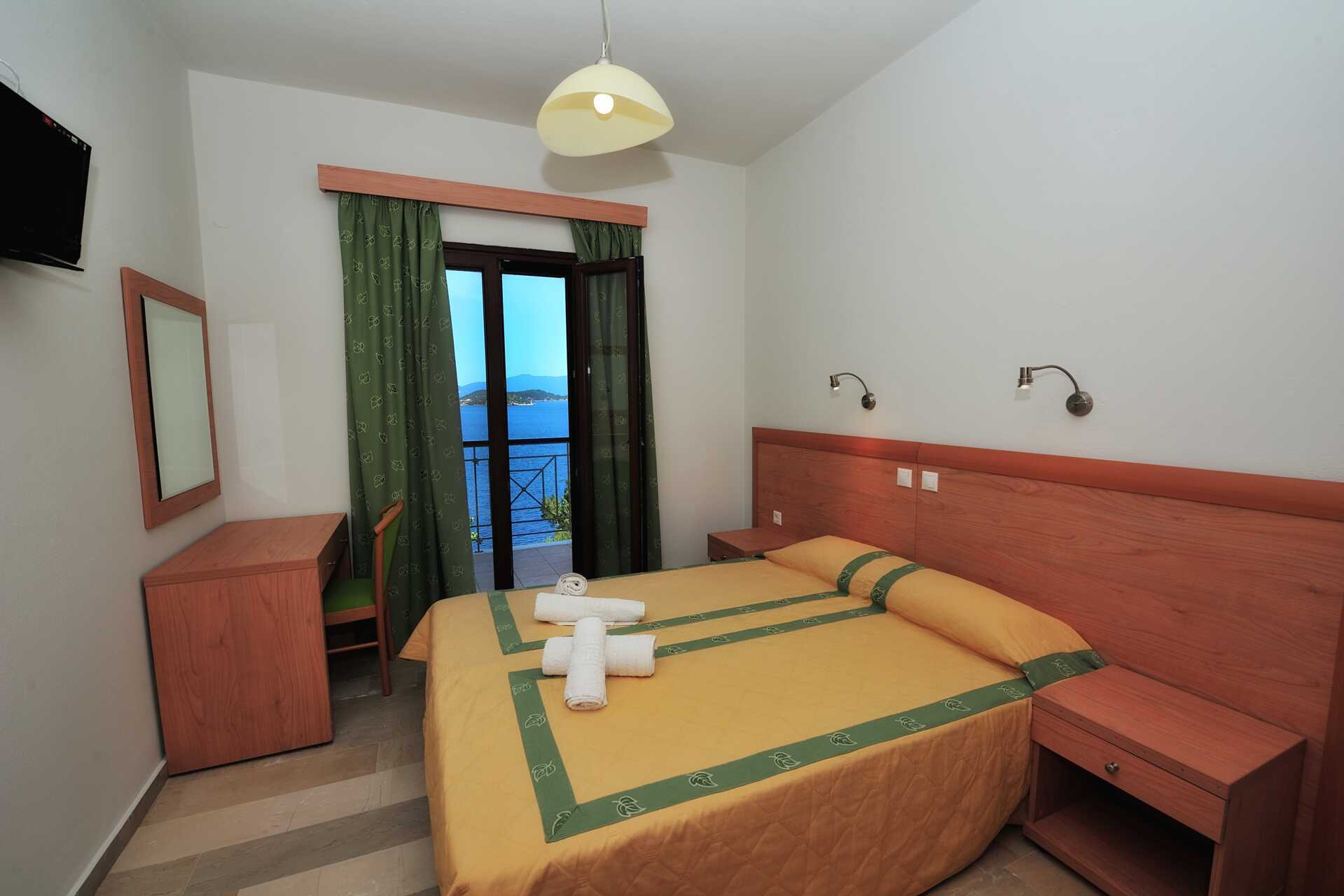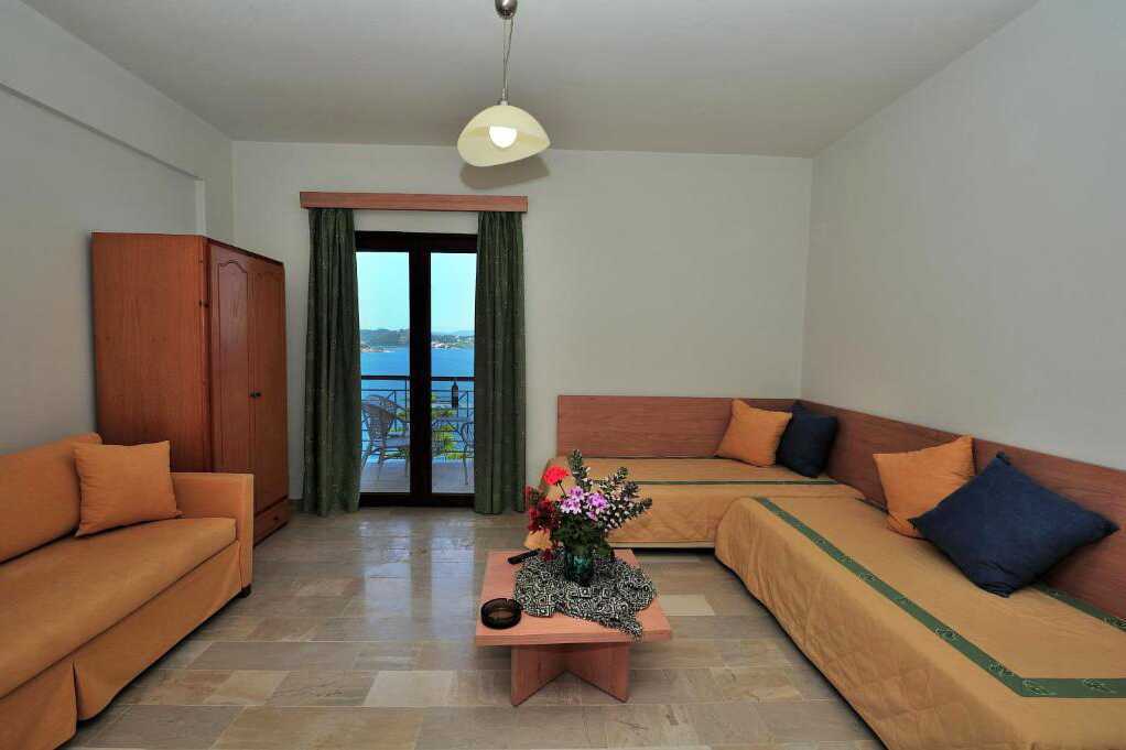 Toromsleilighet med balkong eller terrasse og havutsikt. Ett soverom med en dobbeltseng eller to enkeltsenger og kombinert stue/minikjøkken. Mulig med ekstrasenger i enkeltsenger. Minikjøkken med kjøleskap, kokeplater, vannkoker og enkelt kjøkkenutstyr. TV med lokale kanaler. Hårføner. Dusj og wc. Rengjøring 6 ggr/uke.