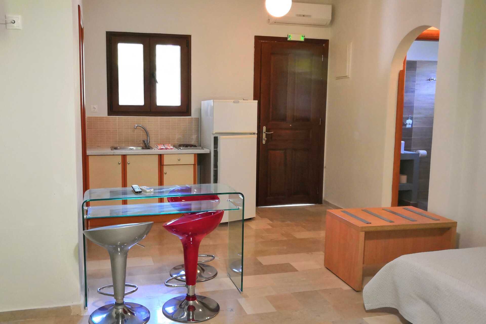 Ettromsleilighet med balkong eller terrasse og havutsikt. Minikjøkken. En dobbeltseng eller to enkeltsenger. Mulig med ekstraseng i enkeltseng. Minikjøkken med kjøleskap, kokeplater, vannkoker og enkelt kjøkkenutstyr. TV med lokale kanaler. Hårføner. Dusj og wc. Rengjøring 6 ggr/uke.