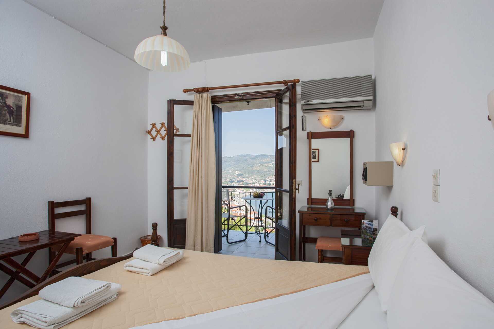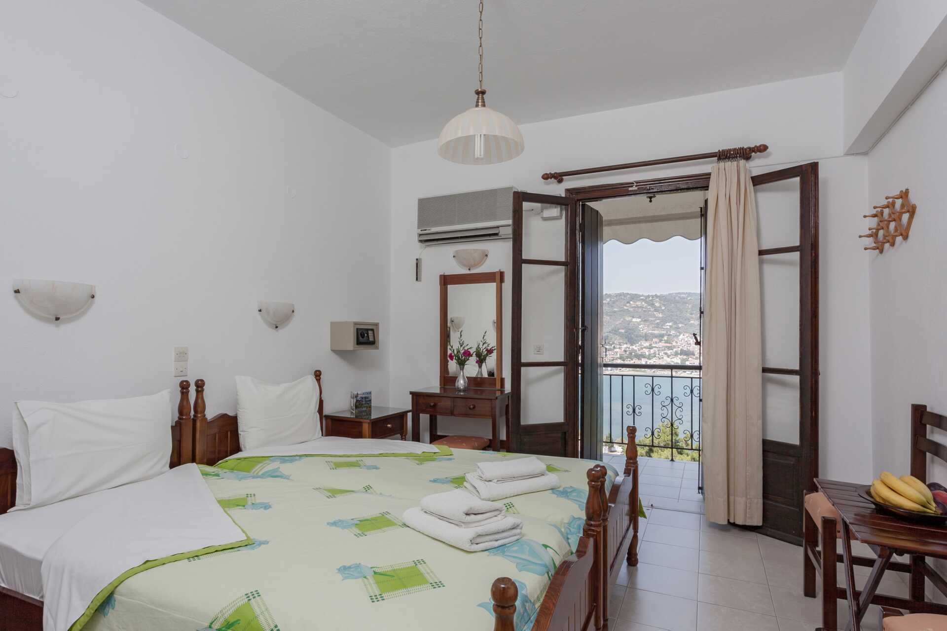 Dobbeltrom med balkong eller terrasse. En dobbeltseng eller to enkeltsenger. Kjøleskap. Wifi og luftkondisjonering er inkludert. TV med lokale kanaler. Hårføner. Dusj og wc. Rengjøring 6 ggr/uke.