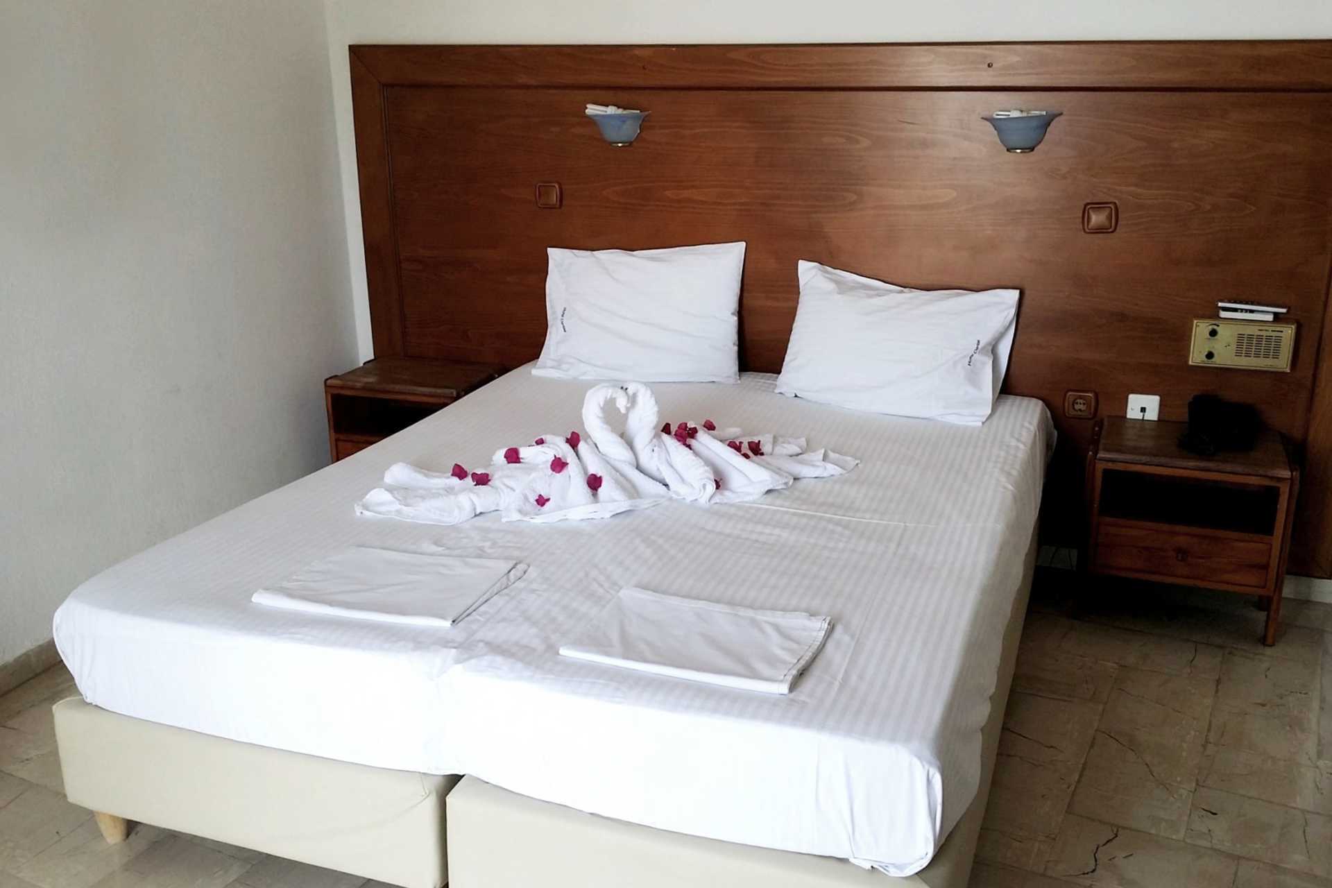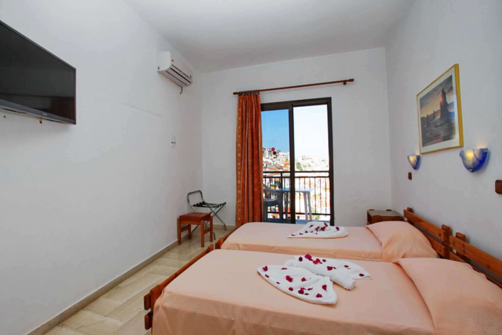 Dobbeltrom med balkong eller terrasse. To enkeltsenger. Kjøleskap. Wifi, luftkondisjonering og safe inkludert. TV. Hårføner. Baderom med dusj og wc. Rengjøring 6 ggr/uke.