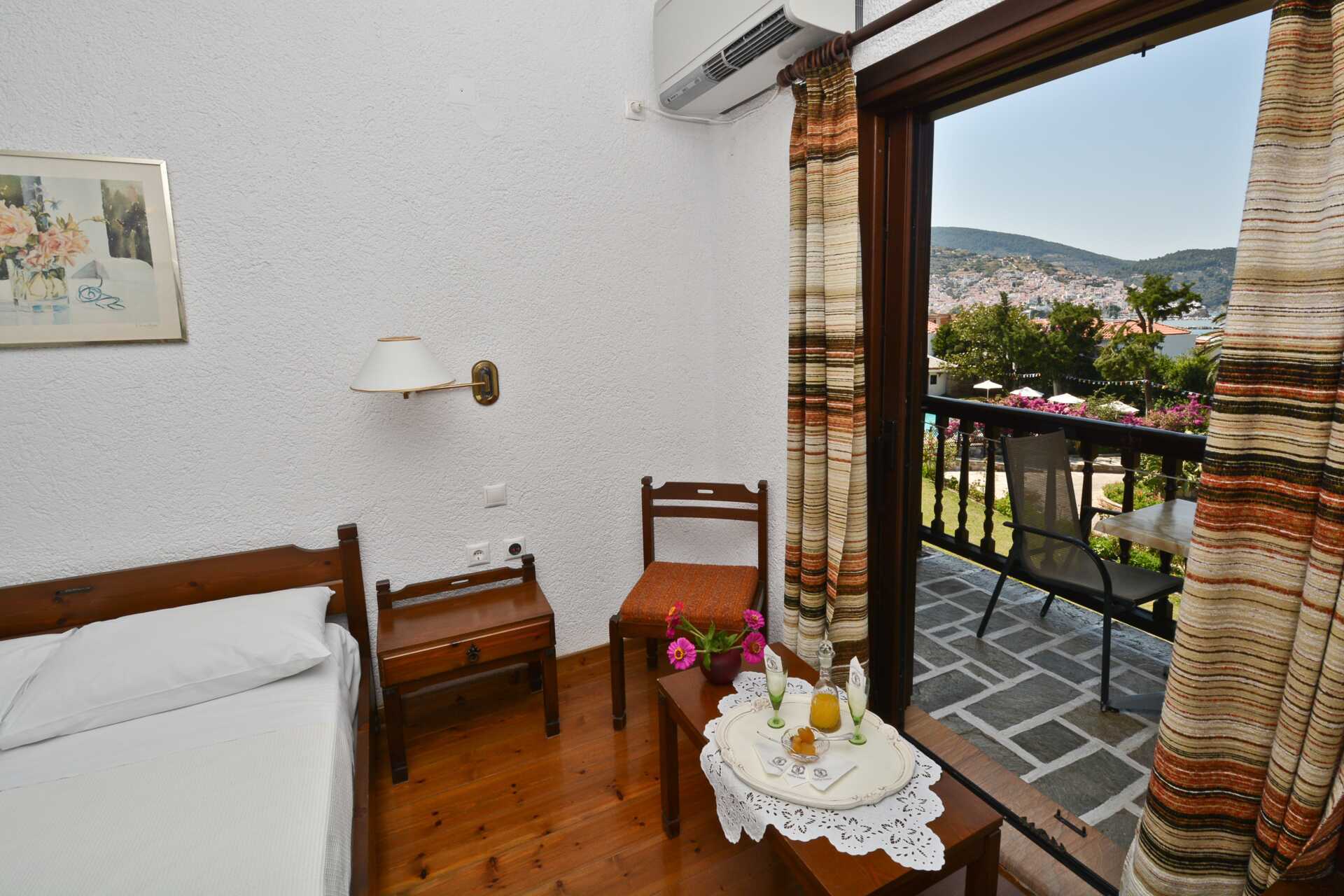 Dobbeltrom med balkong eller terrasse og utsikt til hagen. En dobbeltseng eller to enkeltsenger. Wifi, luftkondisjonering og safe inkludert. Hårføner. Badekar eller dusj samt wc. Rengjøring 7 ggr/uke.