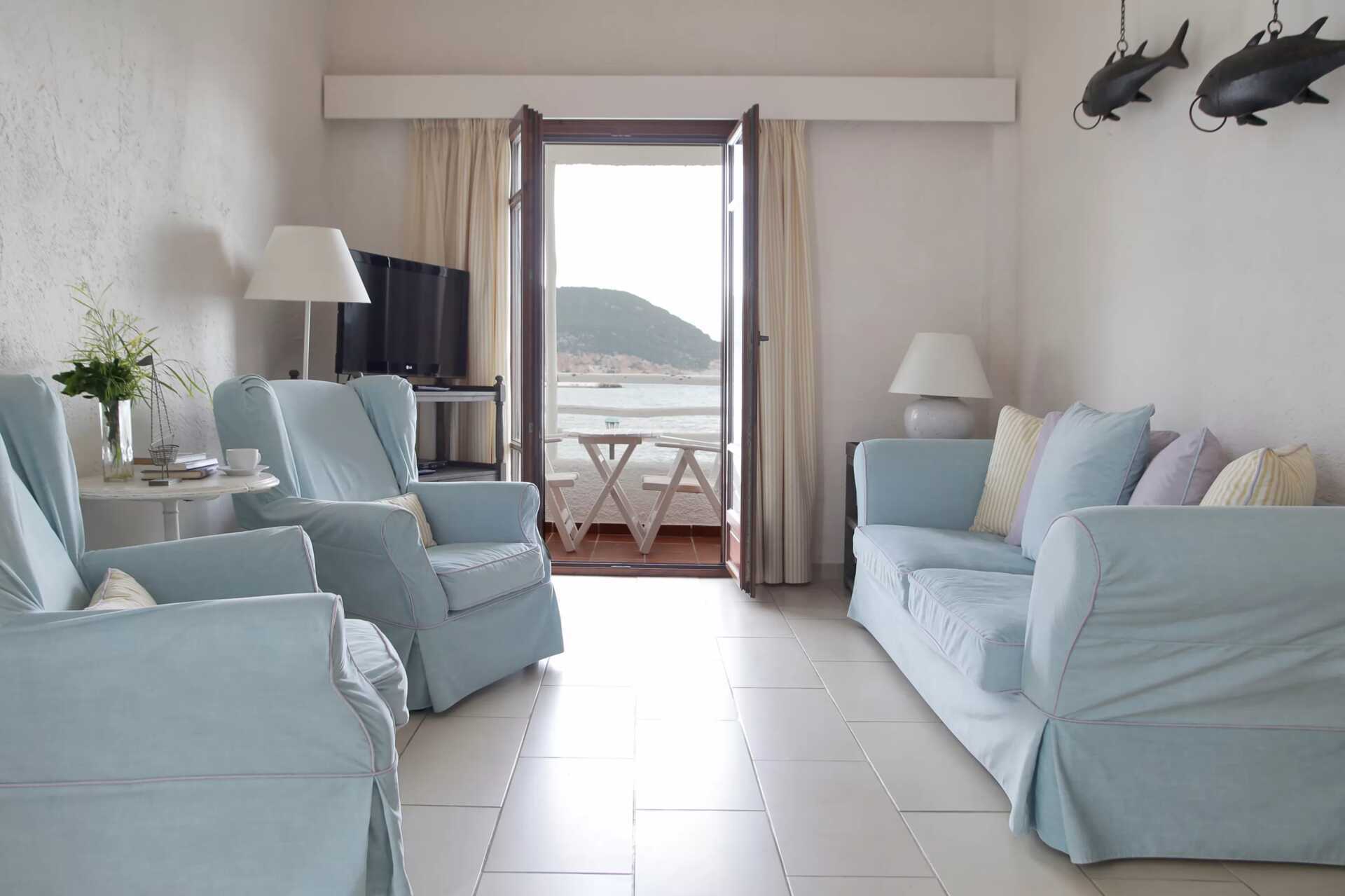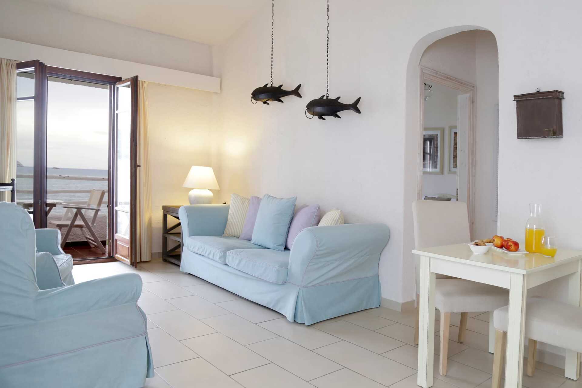 Juniorsuite med balkong eller terrasse, noen med begrenset havutsikt og noen med utsikt over bassenget eller hagen. Juniorsuiten består av et soverom og en stue. To enkeltsenger. Mulig med en ekstraseng i sovesofa. Wifi, luftkondisjonering og safe inkludert. Kjøleskap. Vannkoker samt kaffe og te. TV. Hårføner. Badekar eller dusj samt wc. Rengjøring 7 ggr/uke. Barn under 2 år regnes inn i maksantallet i rommet.