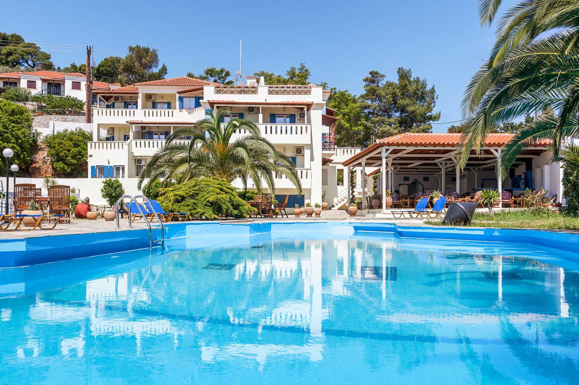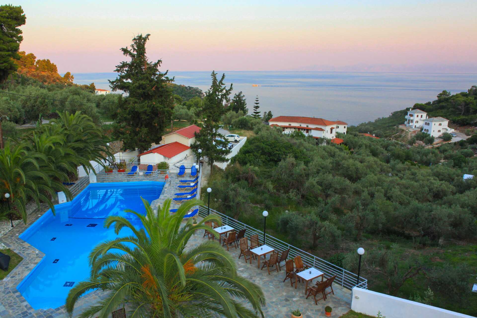 Slapp av på koselige Stafylos, omgitt av blomsterhager og beliggende i en åsside nær Skopelos by. Hotellet har et lite basseng med fantastisk utsikt over havet, og steinterrassen har solsenger og parasoller. Slapp helt av eller nyt en forfriskende drink eller en matbit i poolbaren. Stranden ligger en kort spasertur fra hotellet, med klart turkis vann, solsenger og parasoller mot avgift.