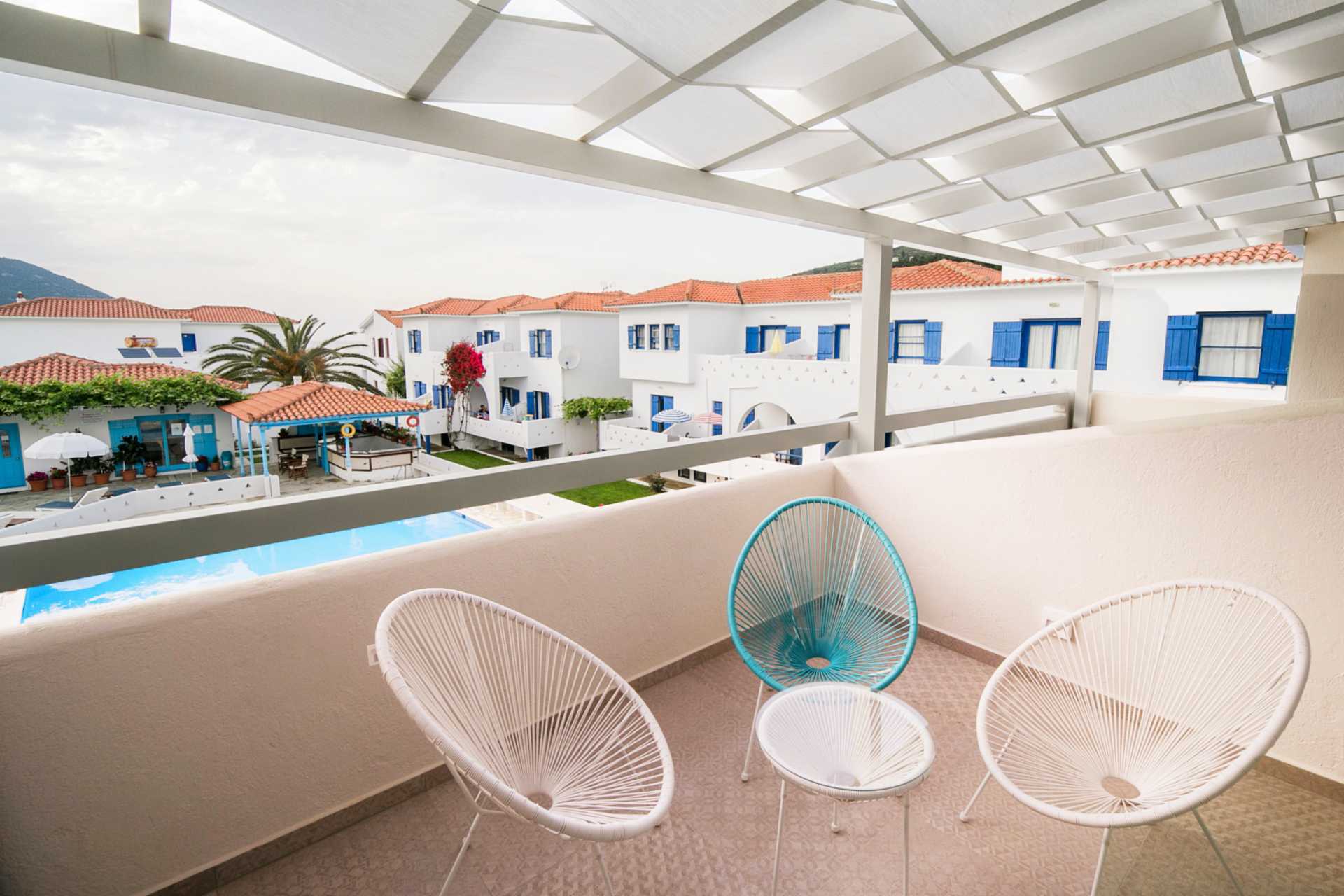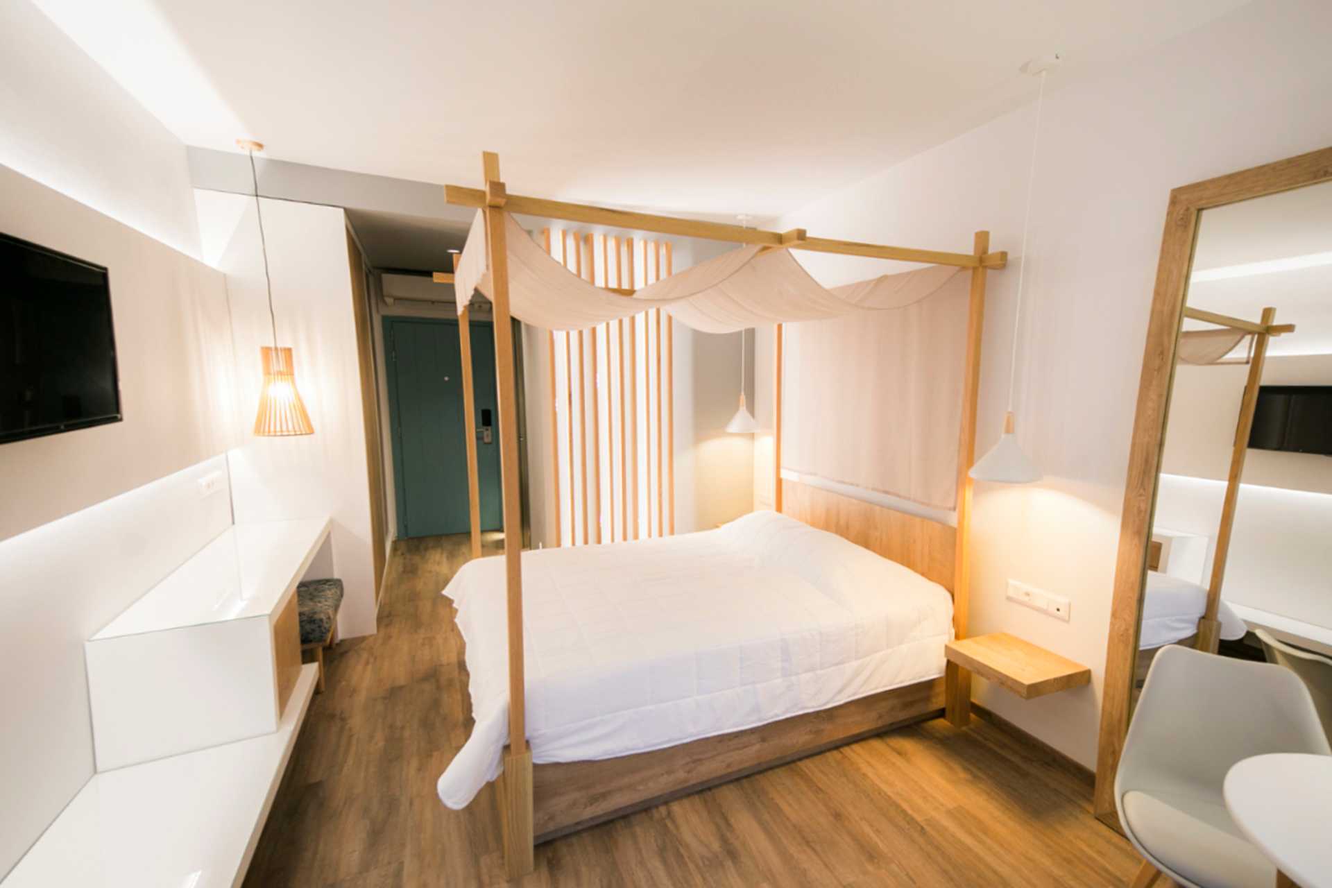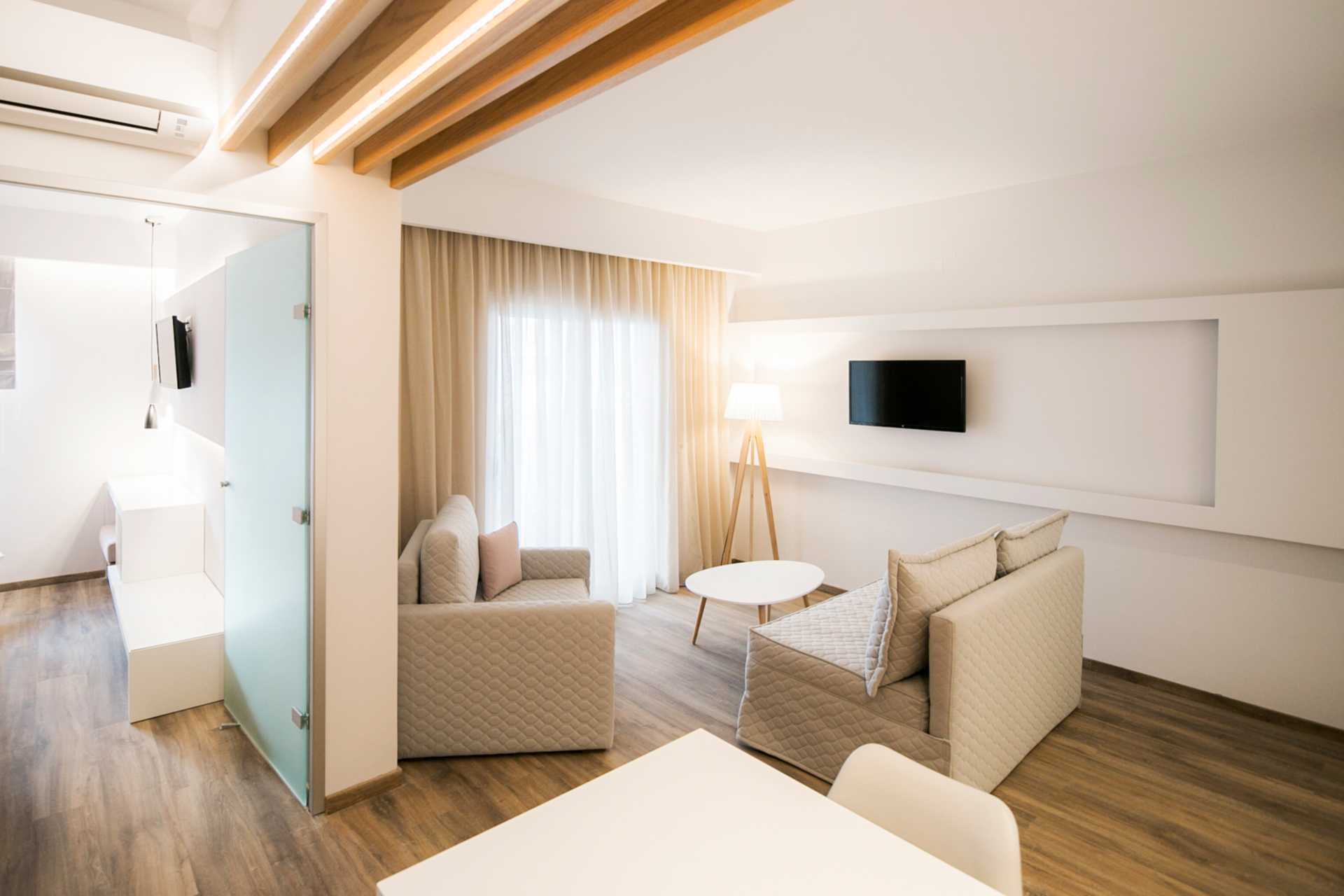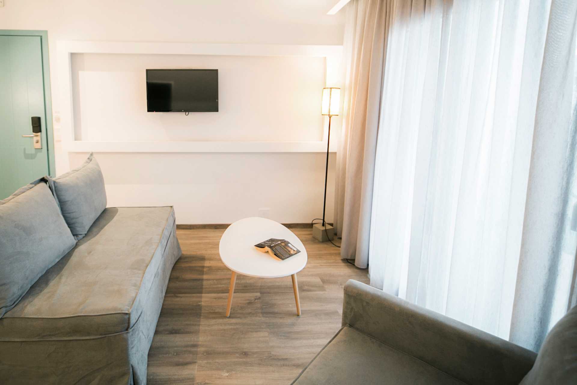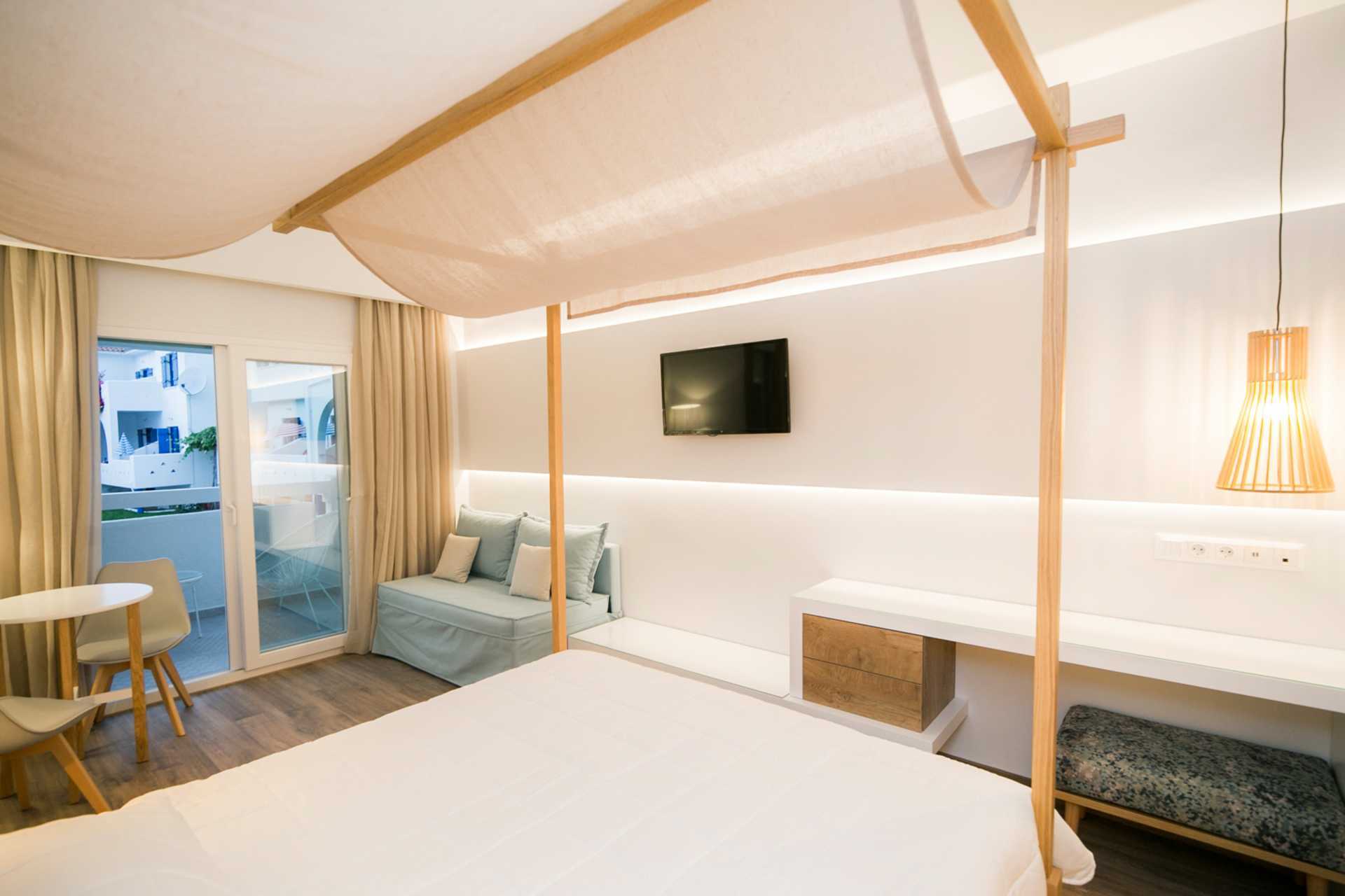 Familierom med balkong. Et soverom og en stue. En dobbeltseng eller to enkeltsenger. Mulig med ekstrasenger i sovesofa. Kjøleskap, kaffetrakter, vannkoker, brødrister og enkelt kjøkkenutstyr. Luftkondisjonering inkludert. Wifi og safe mot avgift. TV. Strykejern og strykebrett. Hårføner. Dusj og wc. Rengjøring 7 ggr/uke.