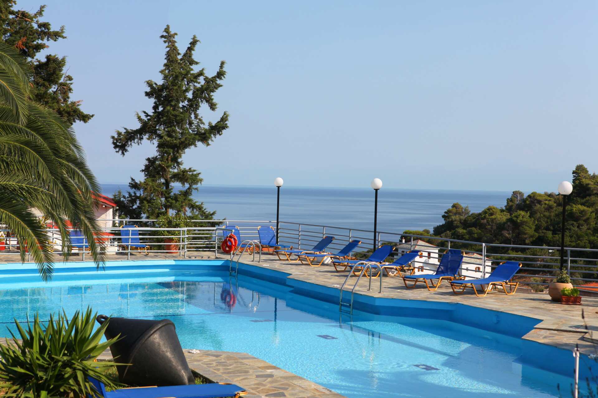 Litt over 2 mil fra Skopelos by finner du en av øyas mest populære strender og Skopelos lengste strand. Den passer for de som ønsker en dag med vannsport og andre aktiviteter. Herfra har du også fin utsikt over den lille øya Dassia.