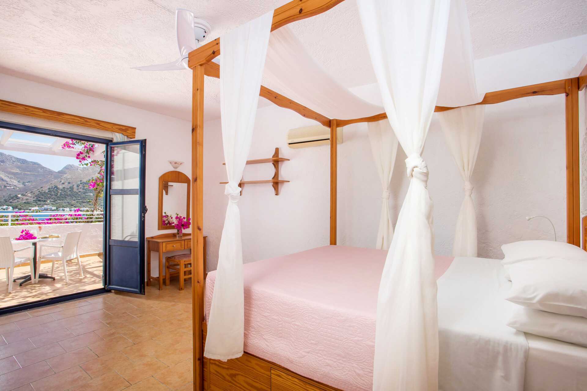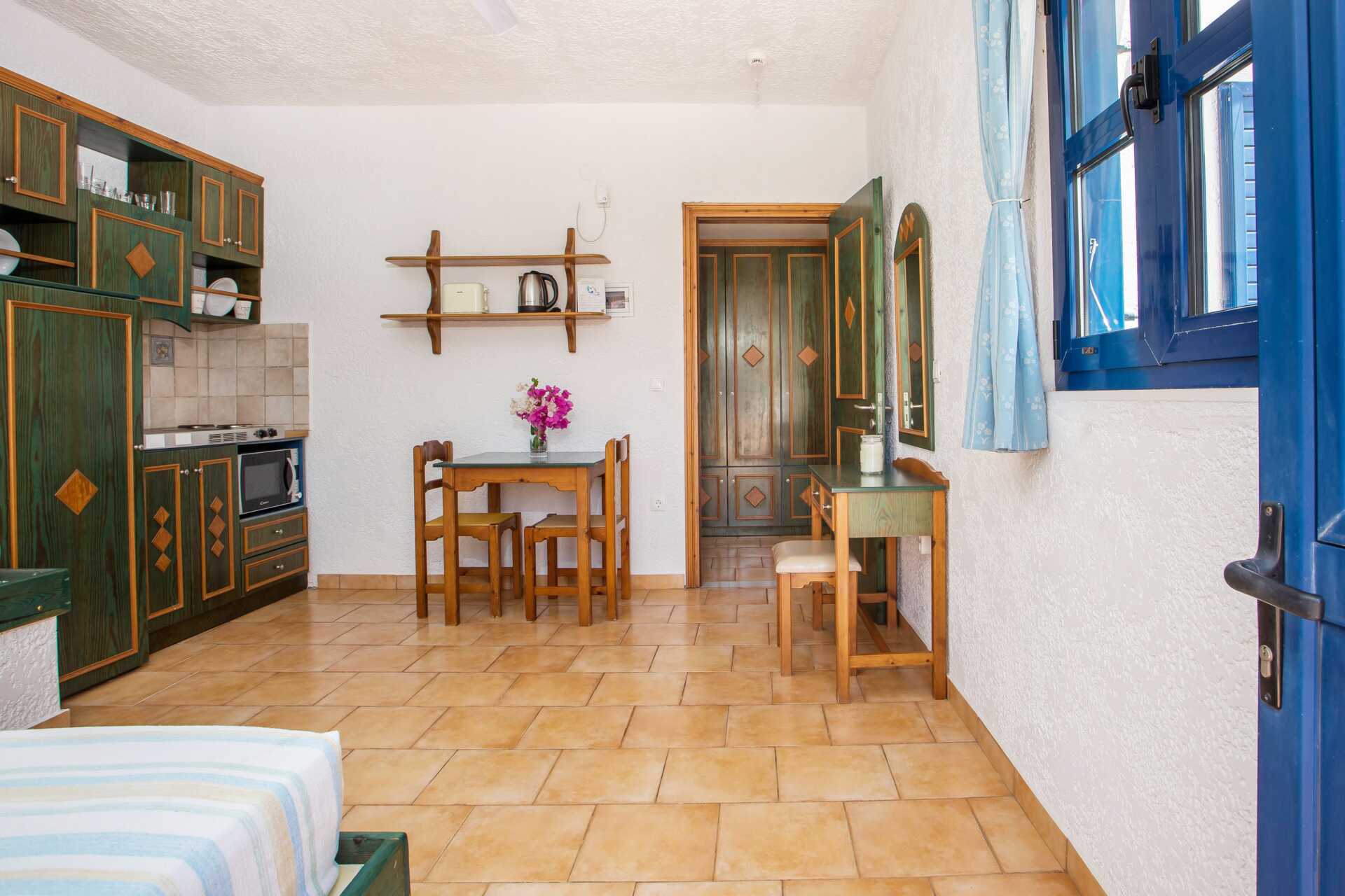 Ettromsleilighet med balkong og havutsikt. Minikjøkken. To enkeltsenger eller en dobbeltseng. Minikjøkken med kjøleskap, mikrobølgeovn, brødrister, vannkoker, presskanne og enkel kjøkkenutstyr. Depositum og wifi inkludert. Sentralstyrt klimaanlegg mot avgift. TV. Hårføner. Dusj og wc. Rengjøring 3 ggr/uke.