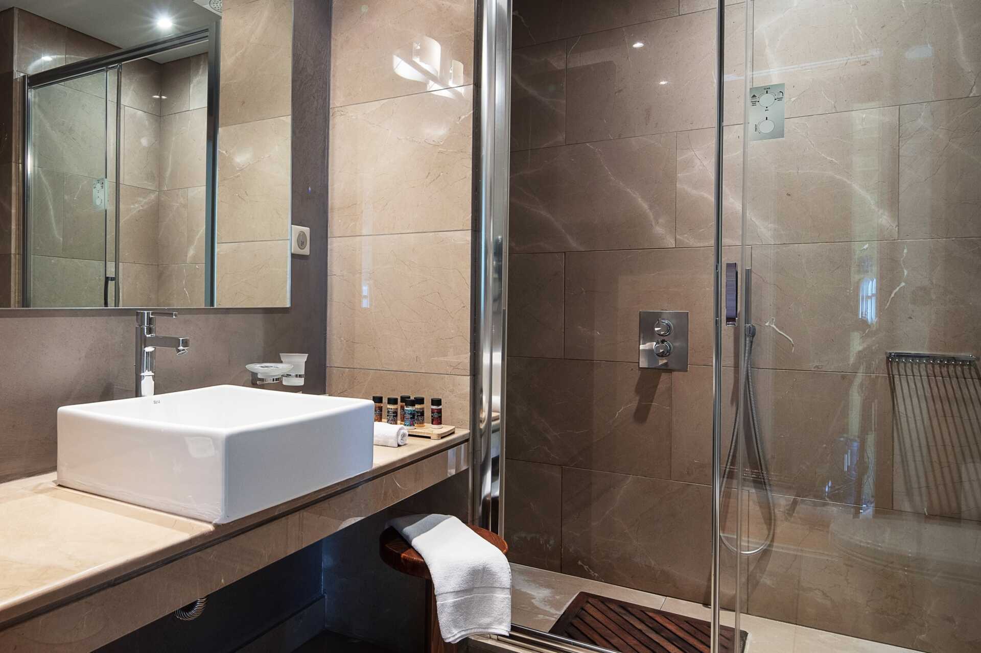 Superiorrom med balkong. Jernkamin. En dobbeltseng eller to enkeltsenger. Putemeny. Wifi, luftkondisjonering og safe er inkludert. Minibar. TV. Badekåper og tøfler. Hårføner. Dusj og wc. Rengjøring 7 ggr/uke.