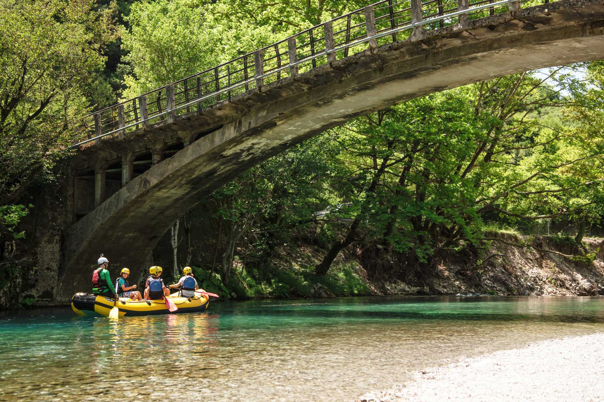 De krystallklare elvene er et perfekt sted for rafting for både nybegynnere og mer erfarne. Bli med oss ned strykene i rasende fart, eller benytt anledningen til å kombinere adrenalinkick med denne storslåtte naturopplevelsen gjennom juvvandring. Juvvandring er en aktivitet der man kombinerer fotturer med svømming og rappellering, går ut på å fire seg ned med tau langs klippene.Se alle utflukter i Zagoria.