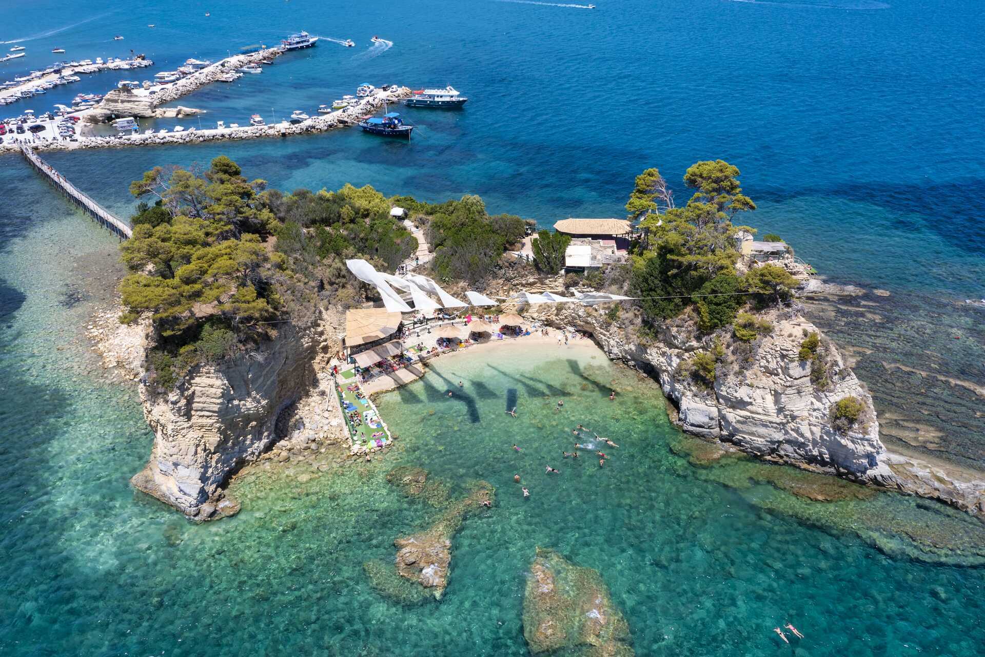 Bare et steinkast fra havnen i Agios Sostis ligger sjarmerende lille Cameo Island. For å komme hit, ta bare en kort spasertur over den lille trebroen. På øya er det en fin liten strand og en koselig taverna hvor du kan nyte en deilig lunsj. Men det er om kvelden Cameo Island virkelig våkner til liv, da forvandles øya til festenes øy, og én gang i uken er det White Party!