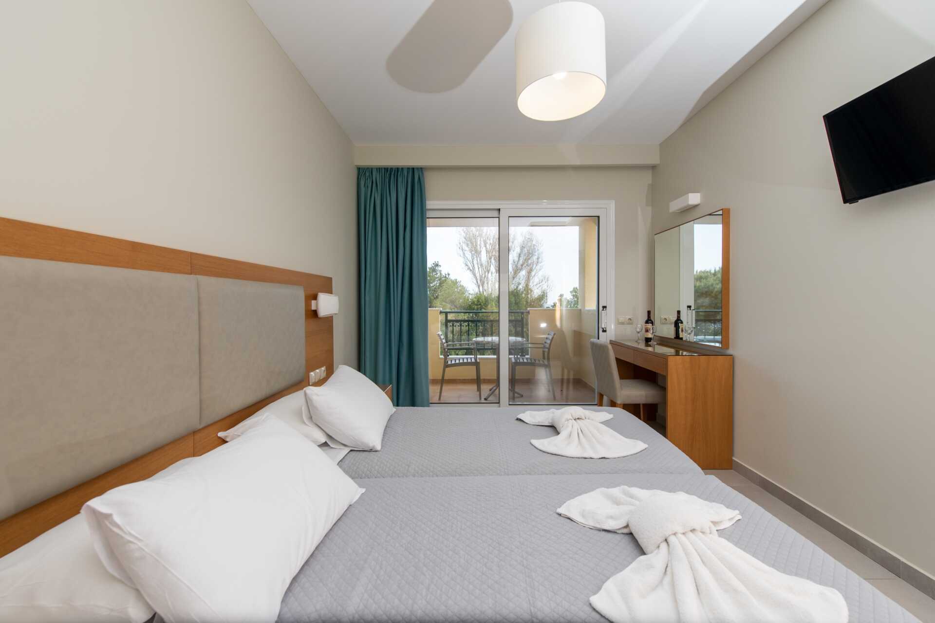 Ettromsleilighet superior med balkong. Minikjøkken. En dobbeltseng eller to enkeltsenger. Minikjøkken med kokeplater og kjøleskap, vannkoker, kaffetrakter, sandwichgrill og enkelt kjøkkenutstyr. Wifi inkludert. Luftkondisjonering og safe mot avgift. TV. Hårføner. Baderom med dusj og wc. Rengjøring 3 ggr/uke. Barn under 2 år regnes inn i maksantallet i leiligheten.
