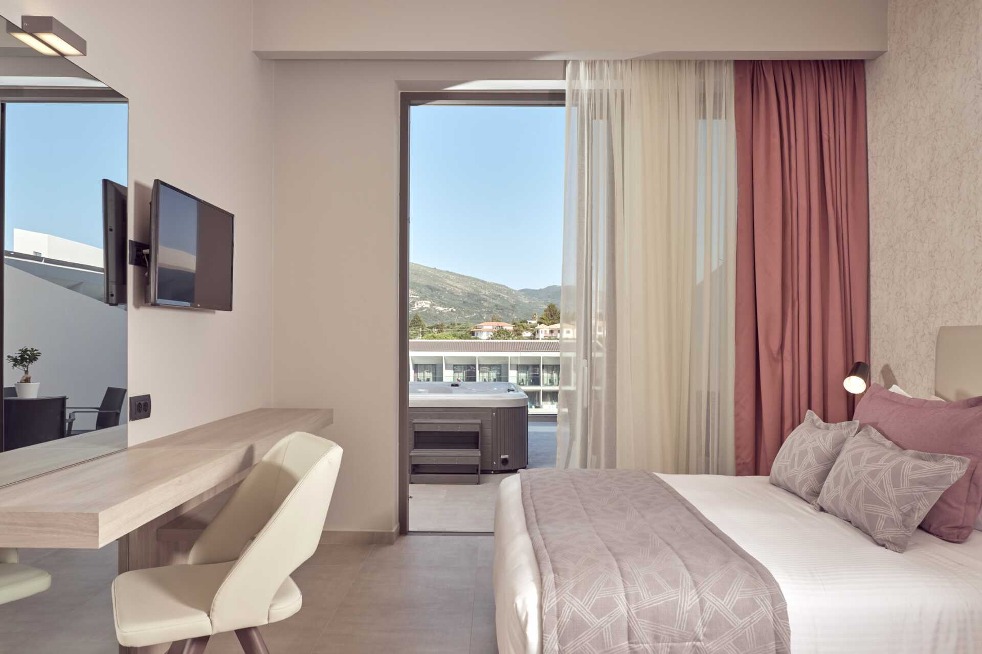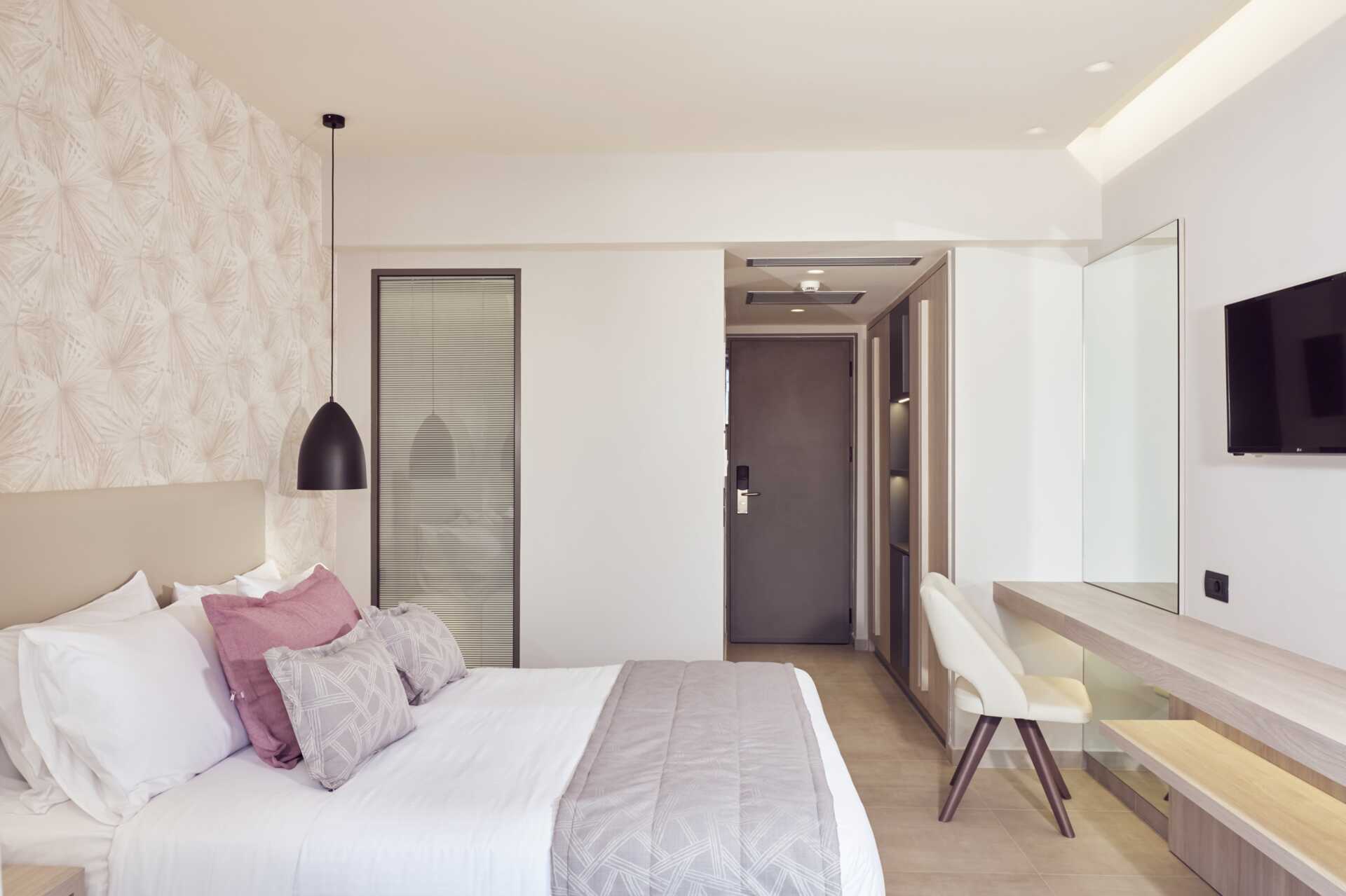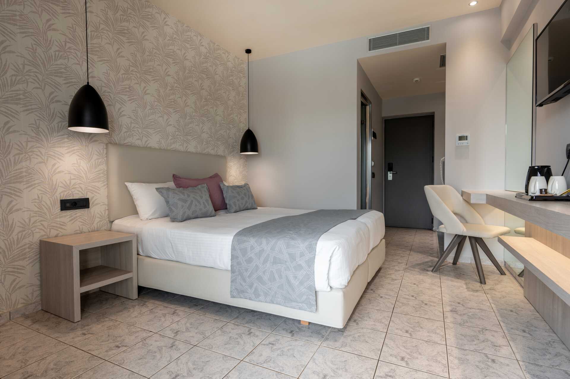 Dobbeltrom med balkong. En dobbeltseng eller to enkeltsenger. Mulig med ekstraseng i oppredbar lenestol. Wifi og luftkondisjonering inkludert. Safe mot avgift. Kjøleskap. Vannkoker samt kaffe og te. TV. Hårføner. Bad med dusj og wc. Rengjøring 7 ggr/uke. Barn under 2 år regnes inn i maksantallet i rommet.