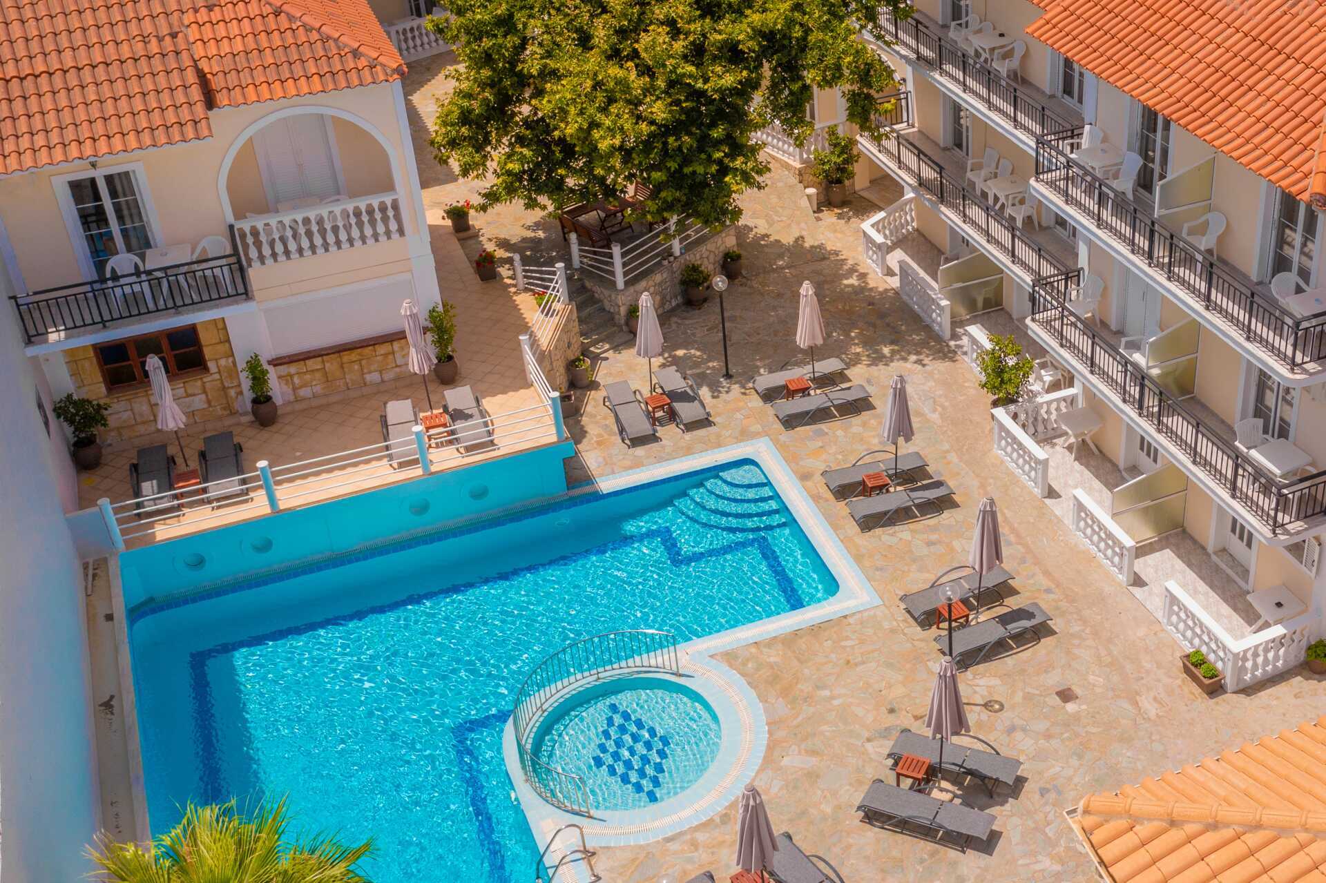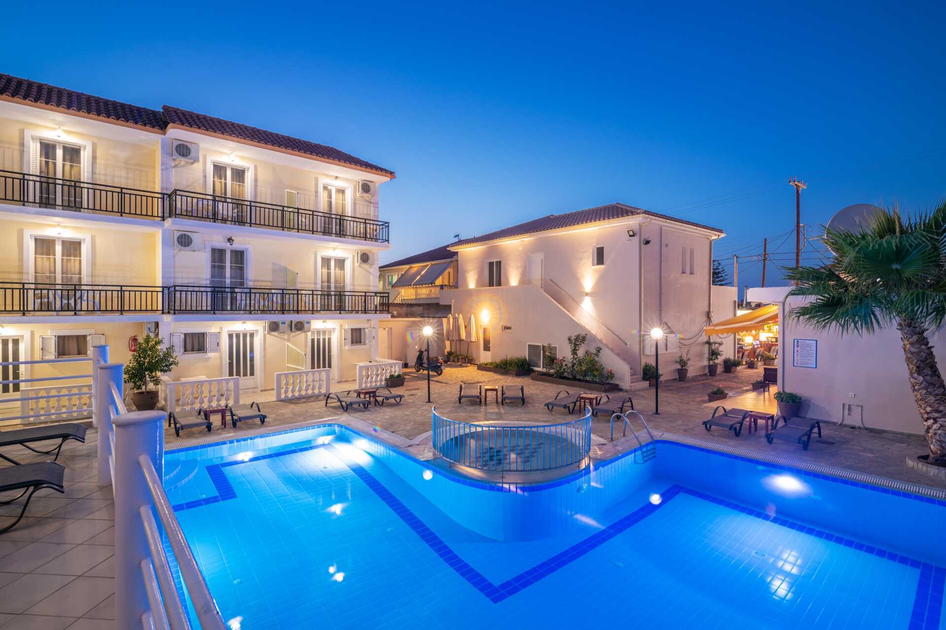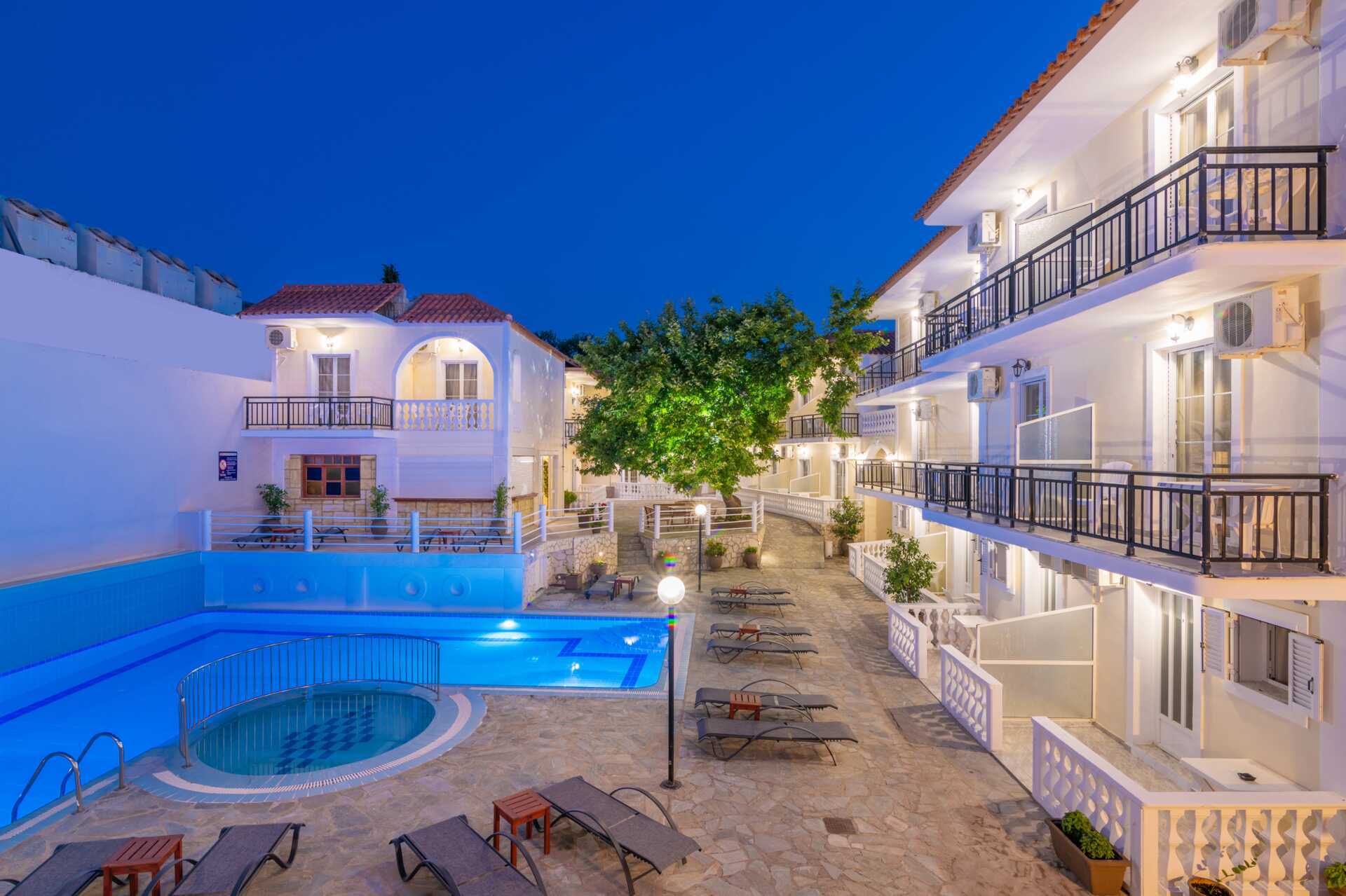 Dobbeltrom med balkong eller markbalkong, noen med utsikt over bassenget. To enkeltsenger. Mulig med ekstraseng i enkeltseng. Wifi og safe inkludert. Luftkondisjonering mot avgift. Kjøleskap. Dusj og wc. Rengjøring 7 ggr/uke.