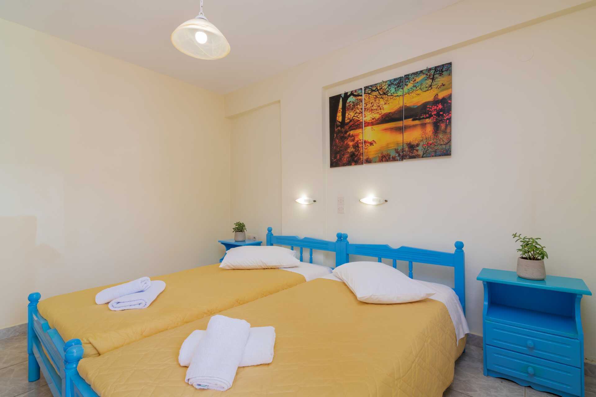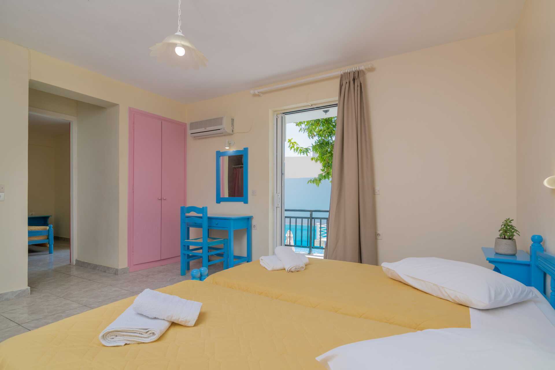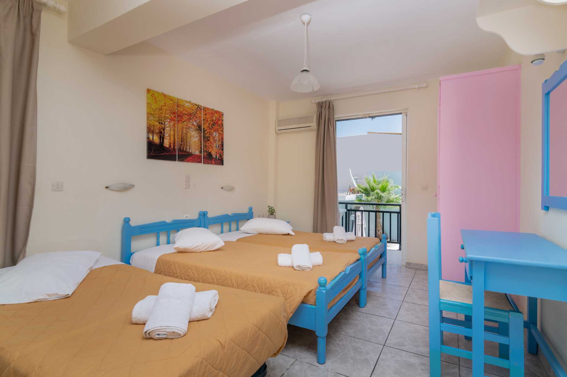 Familierom med balkong eller markbalkong. Familierommet består av to soverom med to enkeltsenger i hvert rom. Wifi og safe inkludert. Luftkondisjonering mot avgift. Kjøleskap. Dusj og wc. Rengjøring 7 ggr/uke.