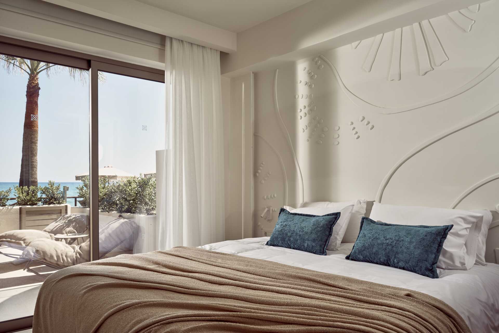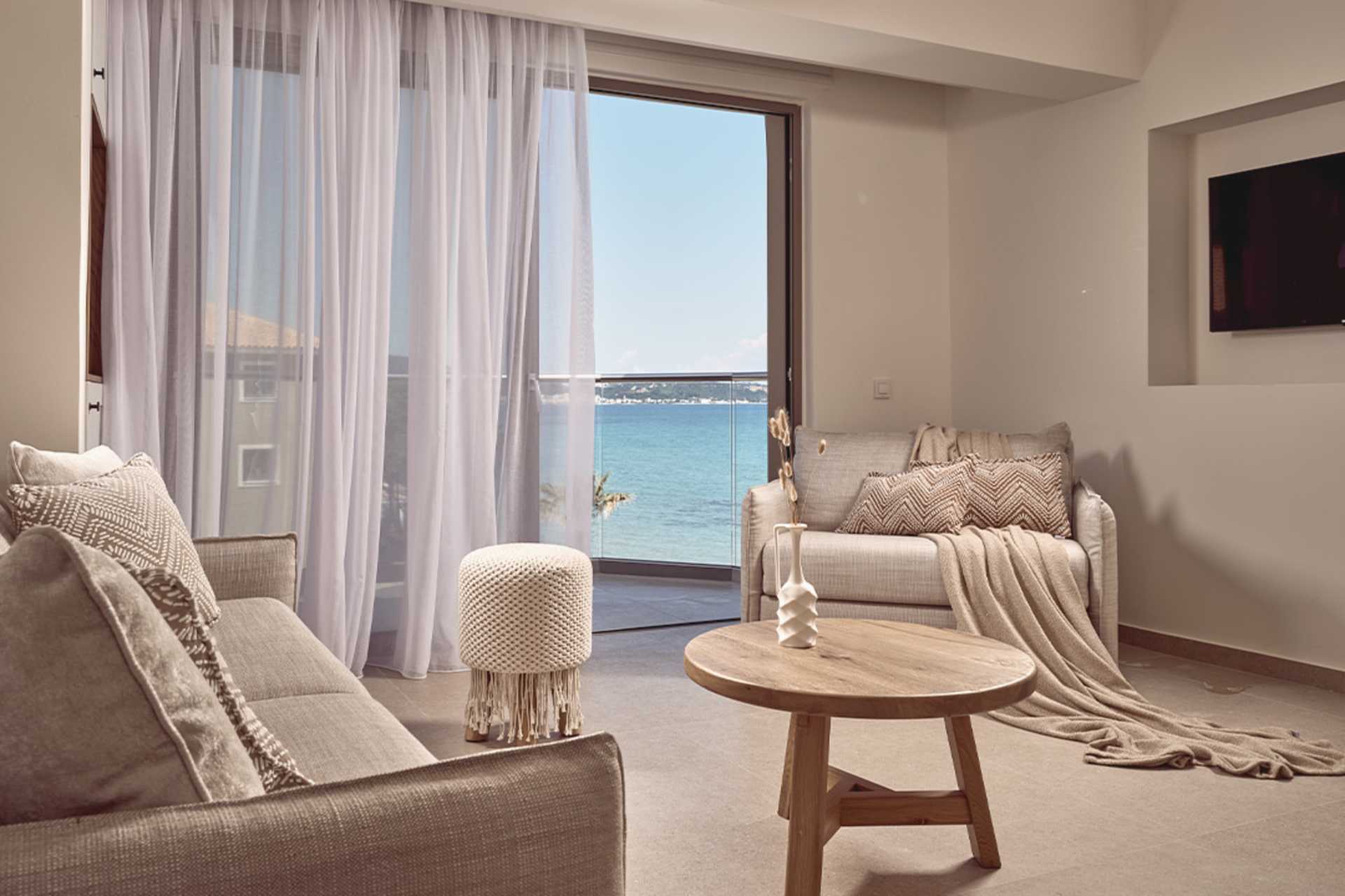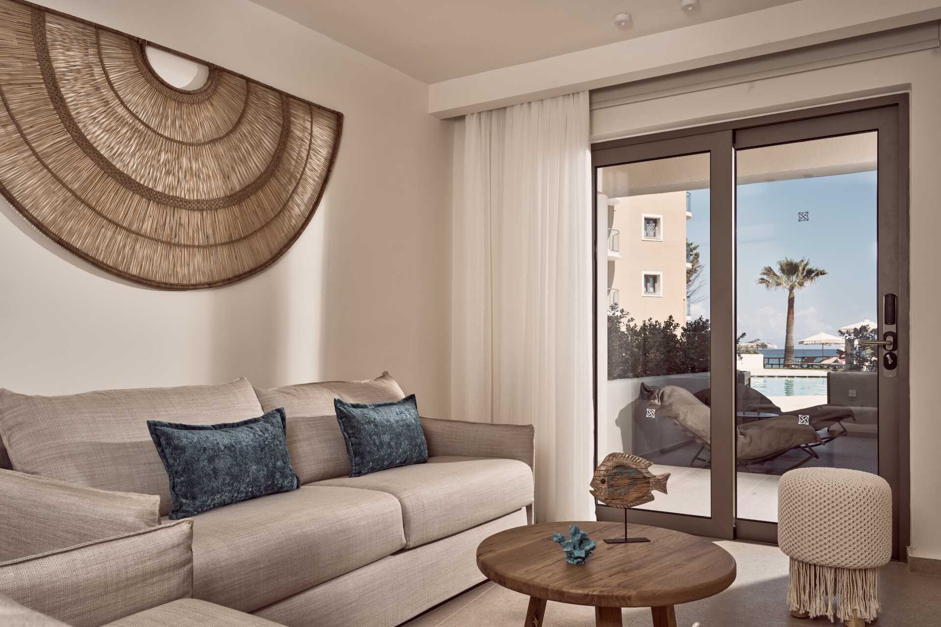 Juniorsuite med balkong og havutsikt. Noen rom har høy terskel til/fra balkongen. Et soverom og en stuedel. En dobbeltseng. Mulig med en ekstrasenger i en sovesofa eller i en oppredbar lenestol. Wifi, luftkondisjonering og safe inkludert. Kjøleskap. Vannkoker samt kaffe og te. Nespresso kaffemaskin. TV. Tøfler. Hårføner. Baderom med dusj og wc. Rengjøring 7 ggr/uke.