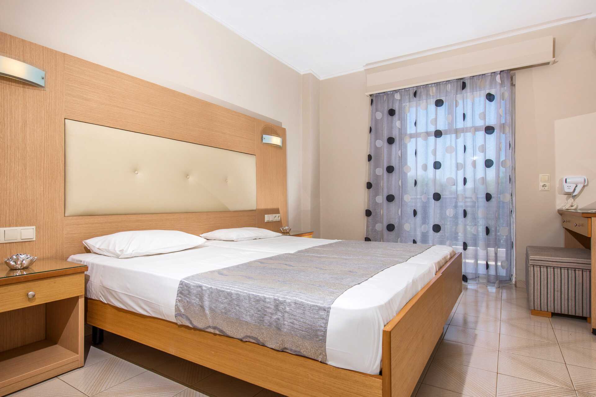 Dobbeltrom med balkong eller terrasse eller markbalkong. En dobbeltseng eller to enkeltsenger. Mulig med en ekstraseng i sovesofa. Når ekstrasengen brukes, blir rommet trangt. Wifi, luftkondisjonering og safe inkludert. Kjøleskap. Vannkoker. TV med lokale kanaler. Strykejern og strykebrett. Badekåper og tøfler, hårføner. Bad med dusj og wc. Rengjøring 7 ggr/uke. Barn under 2 år regnes inn i maksantallet i rommet.