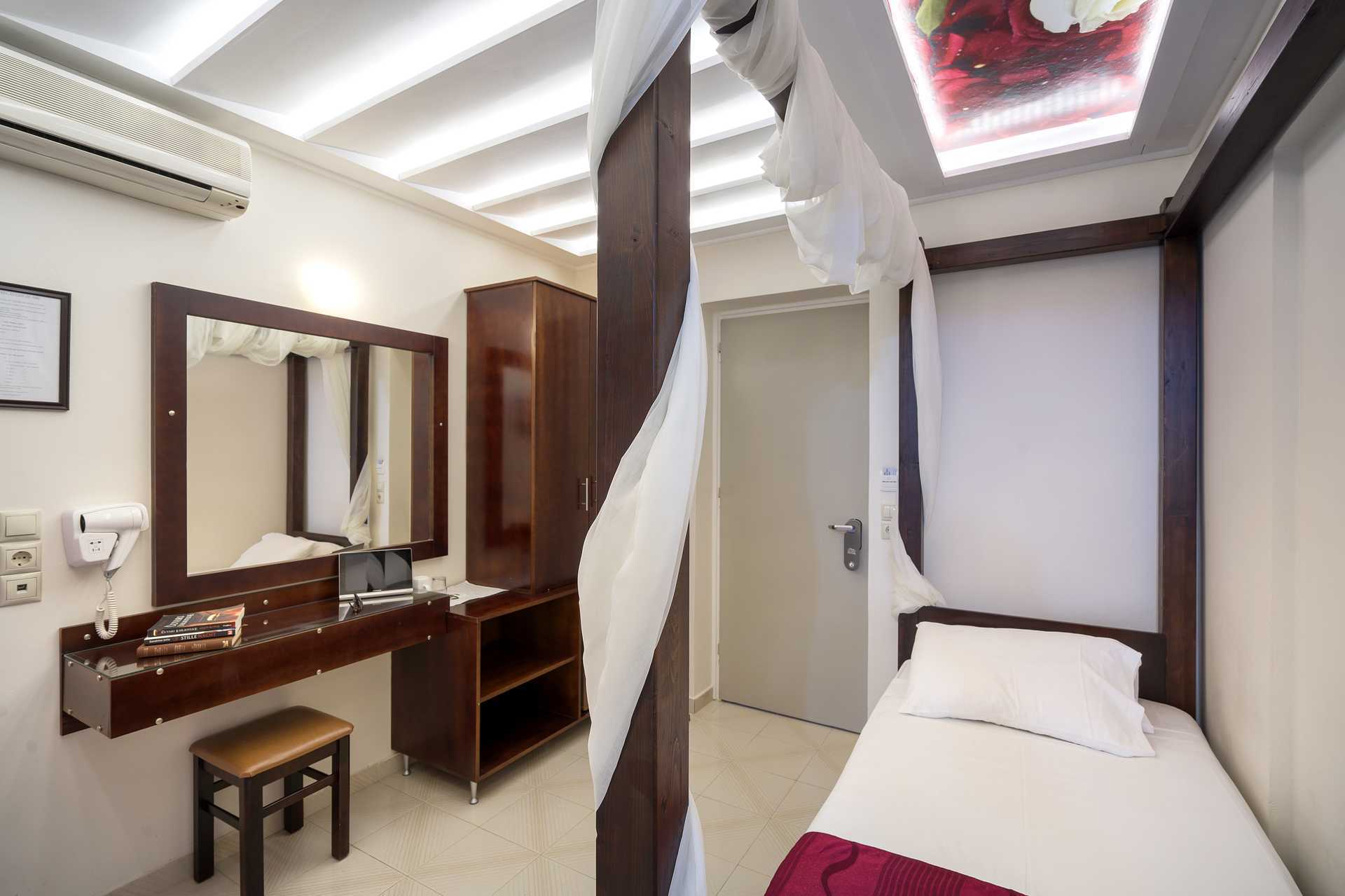 Enkeltrom med balkong eller terrasse. Wifi, luftkondisjonering og safe inkludert. Kjøleskap. Vannkoker. TV med lokale kanaler. Strykejern og strykebrett. Badekåper og tøfler. Hårføner. Bad med dusj og wc. Rengjøring 7 ggr/uke.